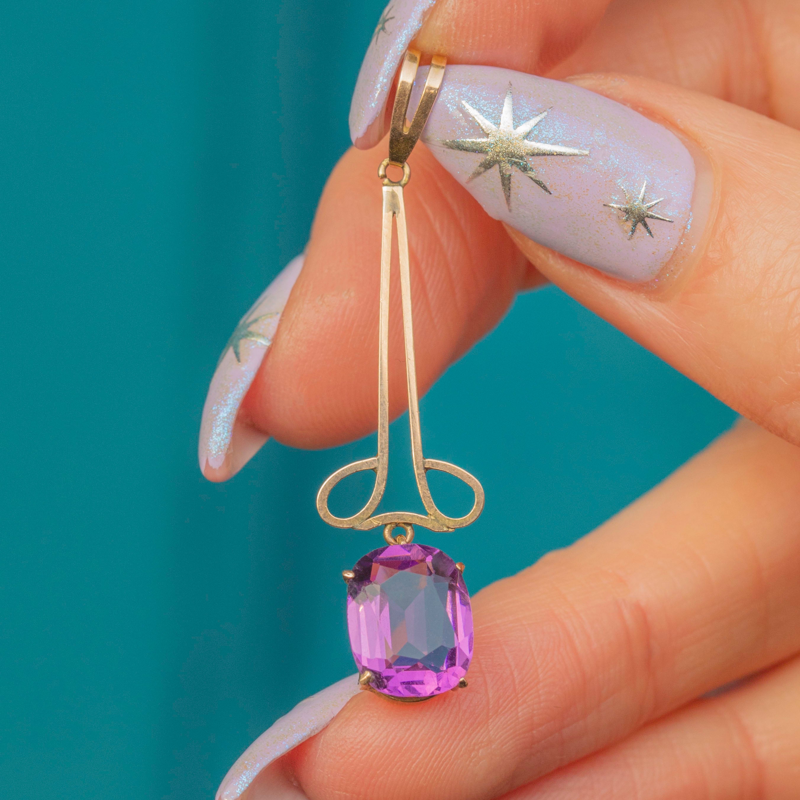 Antique 9ct Gold Pink Amethyst Drop Pendant, 1.64ct Item added