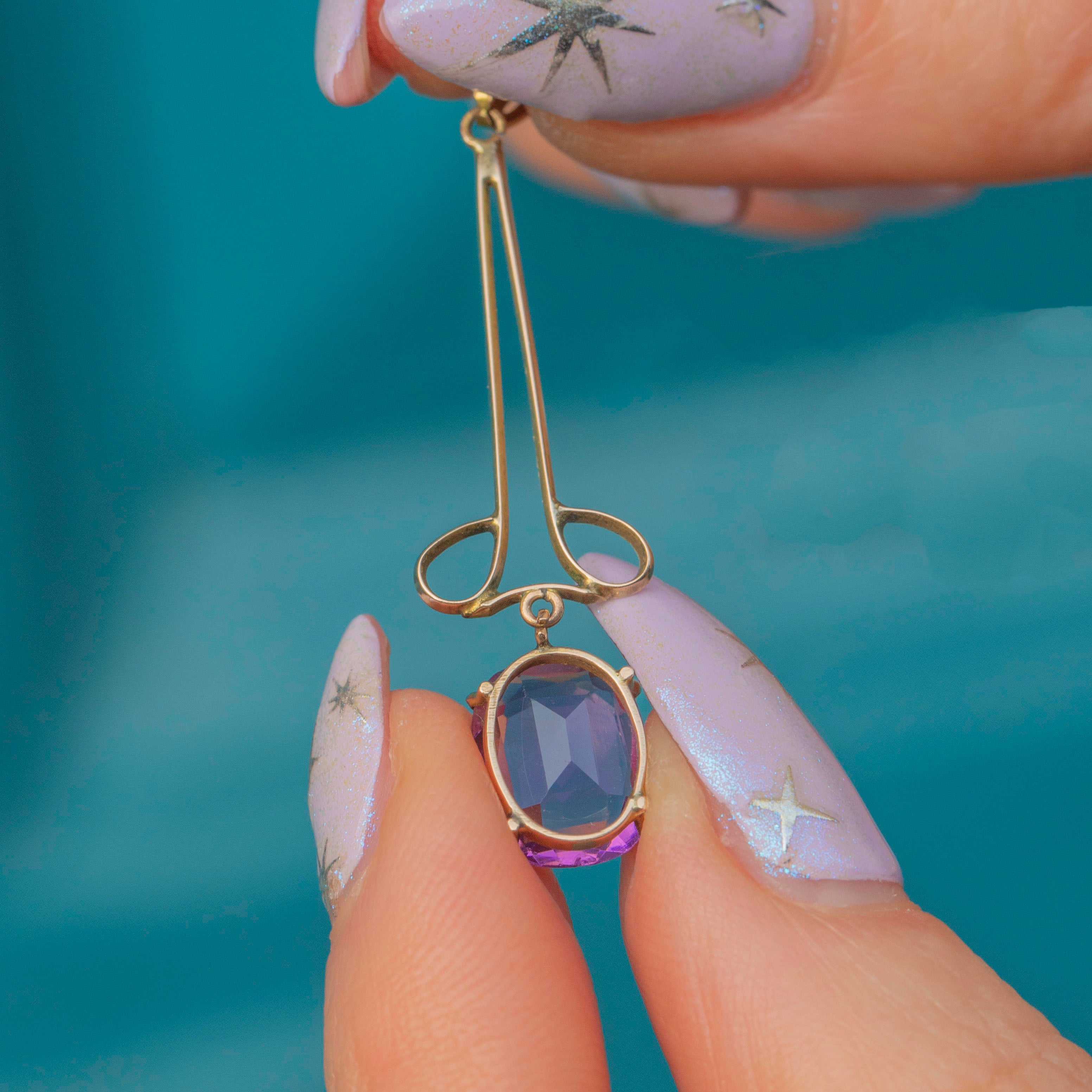 EXCELLENT. This antique 9ct Gold pink Amethyst drop pendant is in excellent condition. The Gold is bright and buttery and the pendant has kept its form well, with no dings or scuffs visible. The Amethyst has crisp facets, is free from chips or abrasions, and remains secure within its claw setting. The bale is robust, allowing you to suspend this Victorian pendant from a chain and wear it with the utmost confidence!