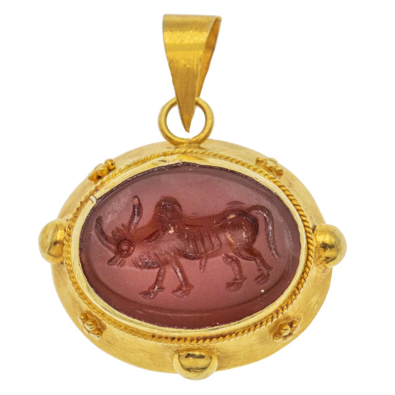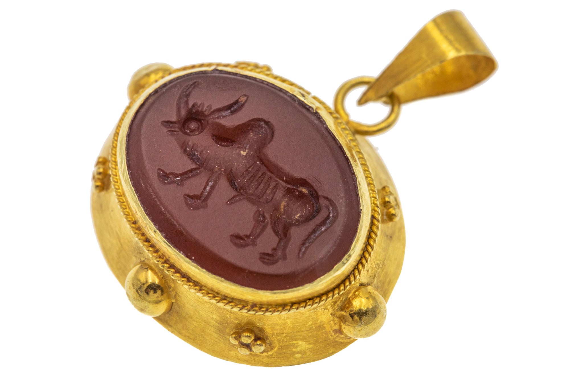 Antique 9ct Gold "Taurus" Bull Agate Intaglio Pendant