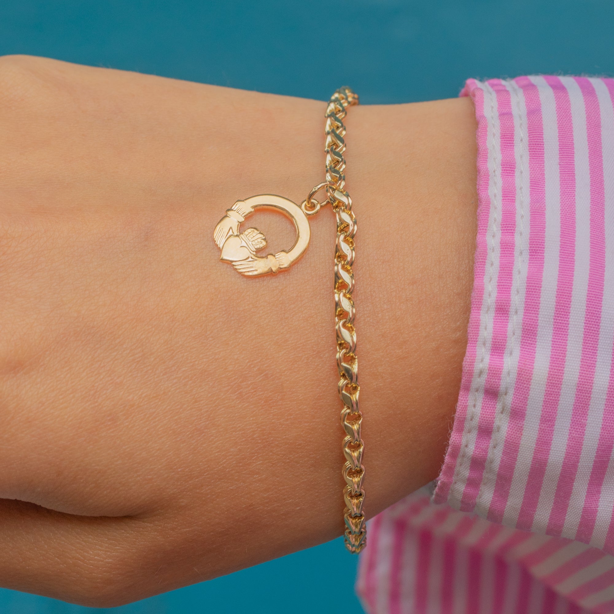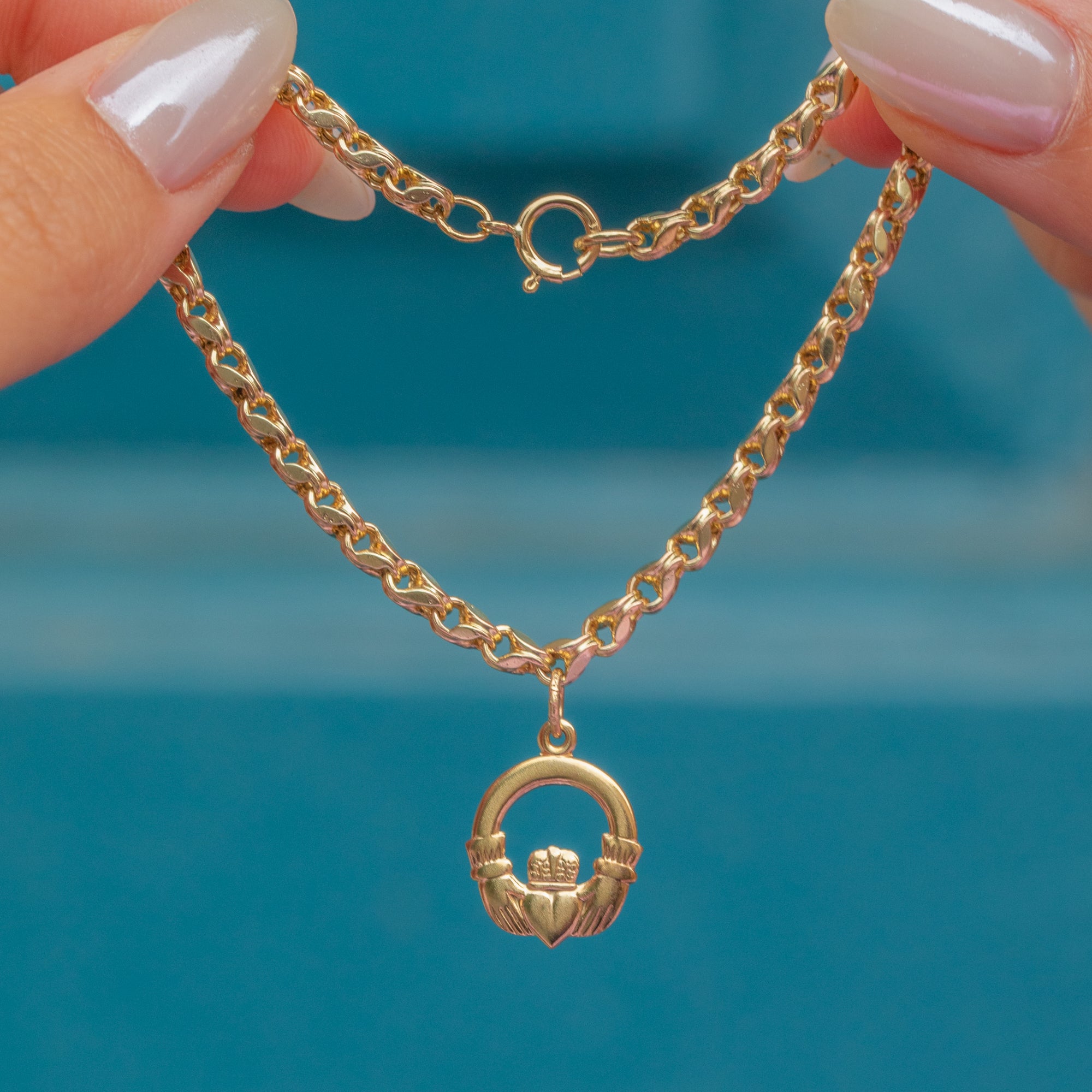 Antique 9ct Gold Tulip Bracelet with Claddagh Charm