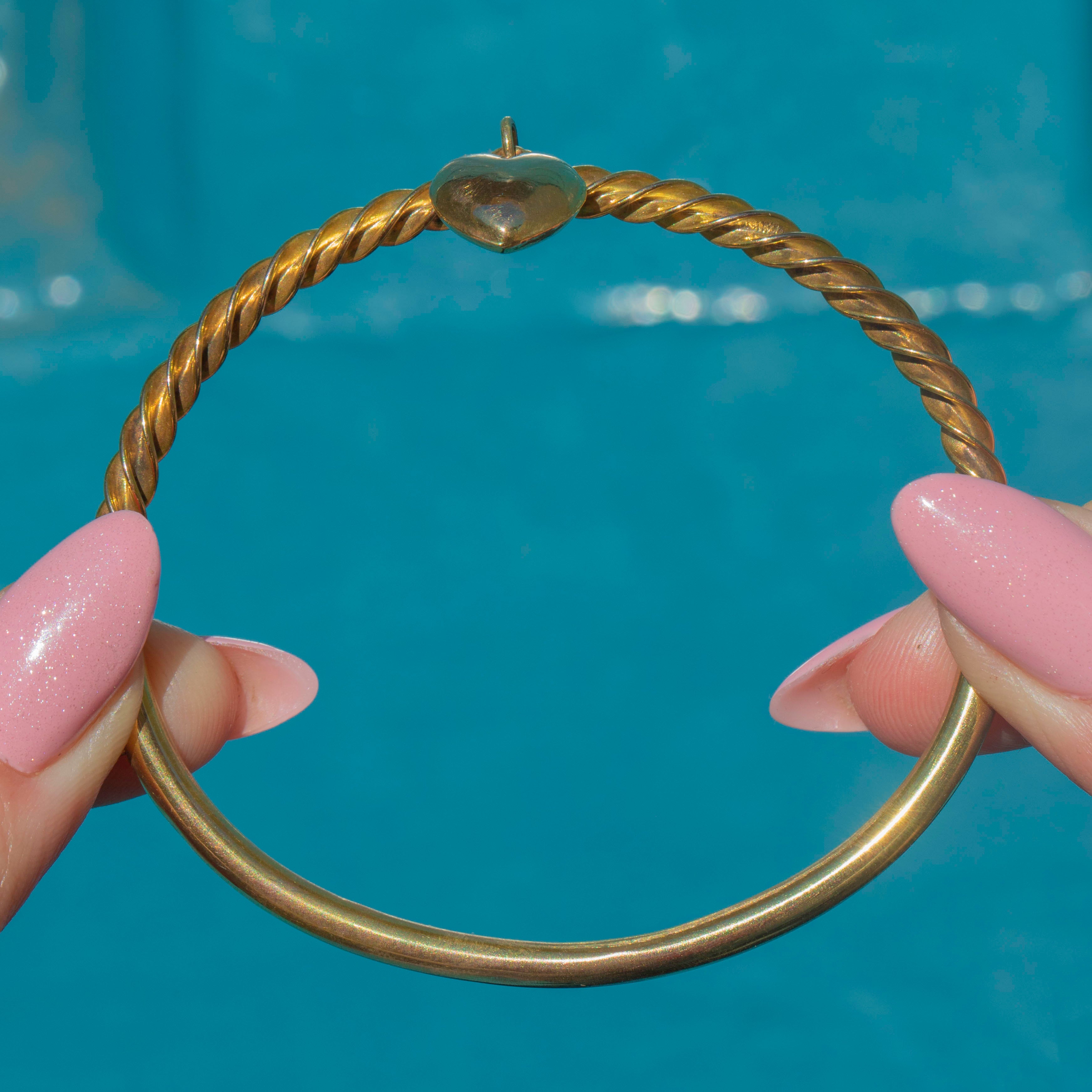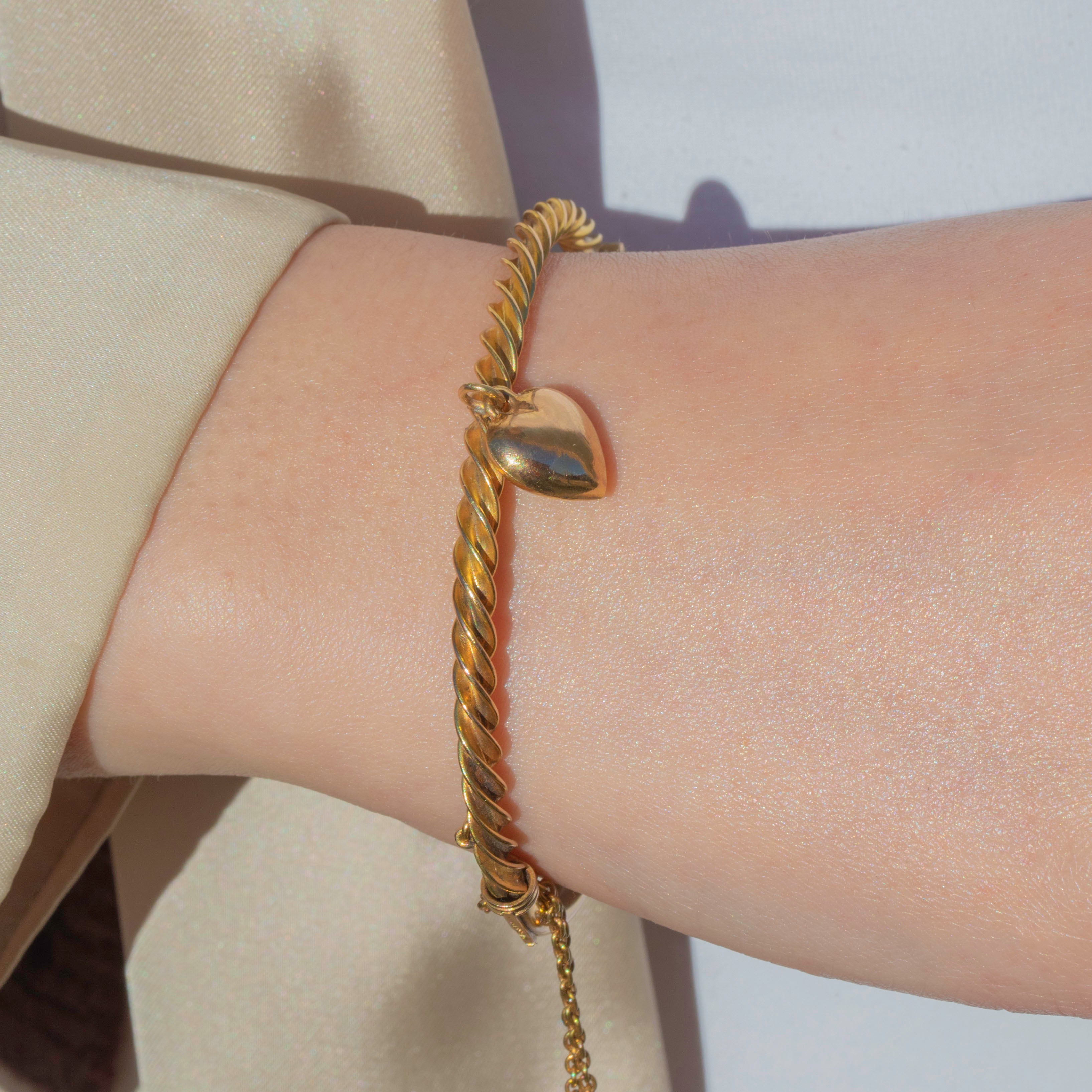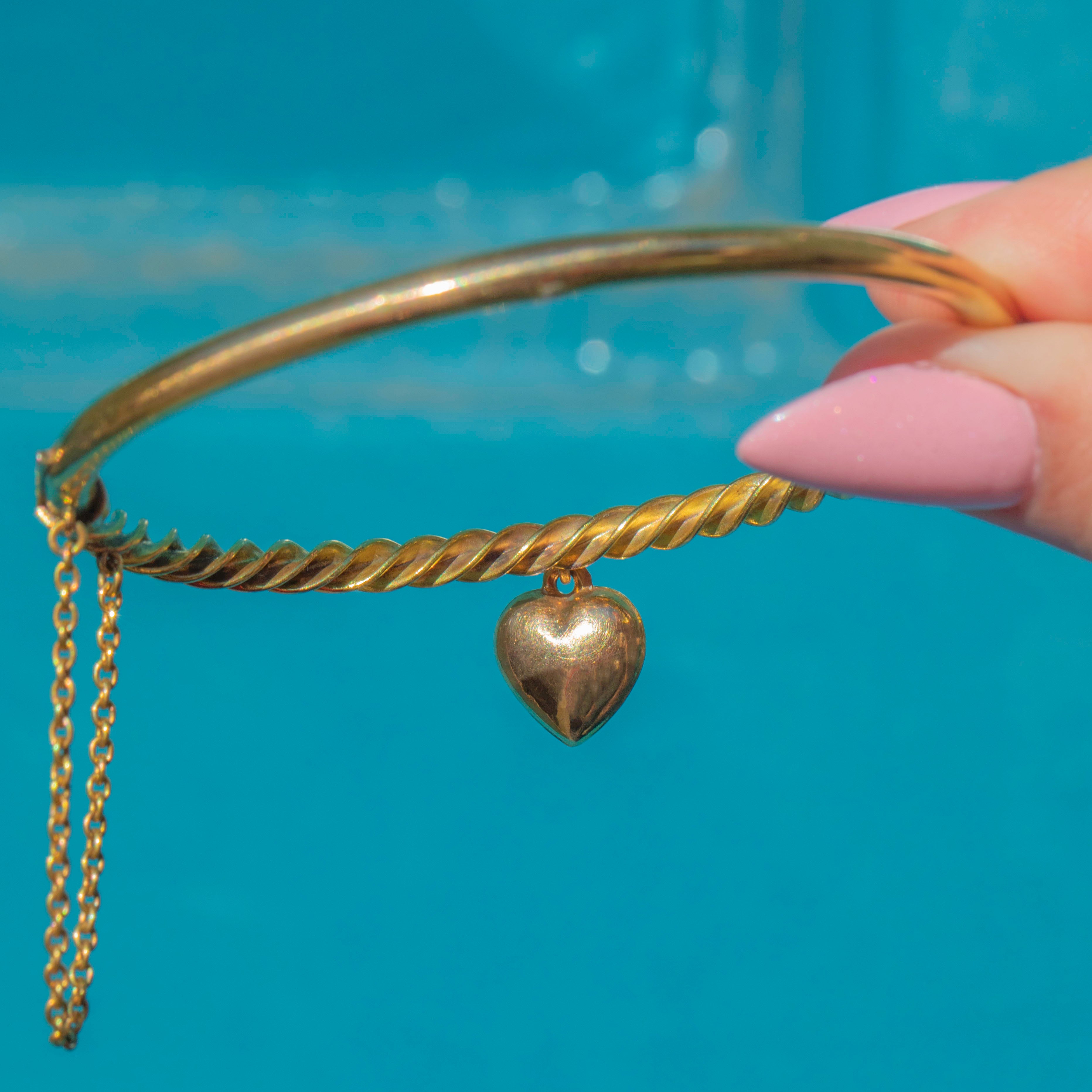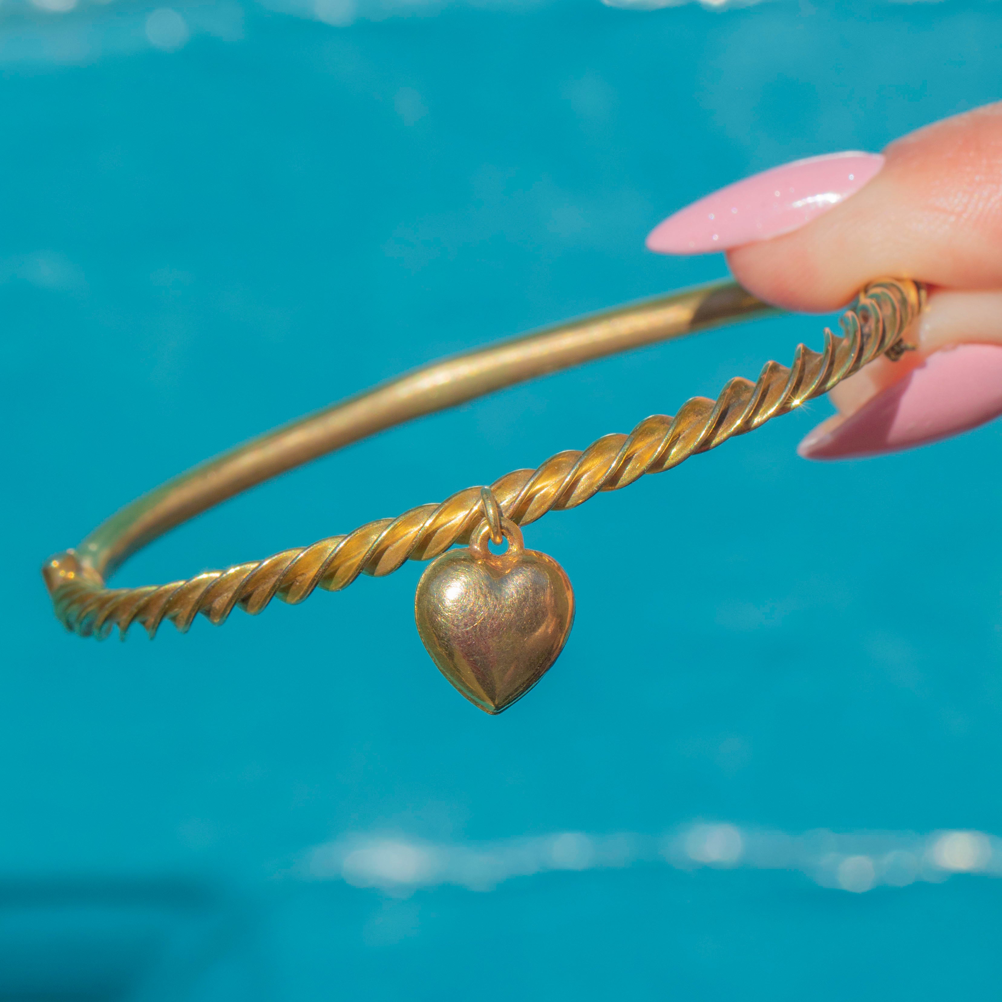 Antique 9ct Gold Twist Bangle with Puffy Heart Charm