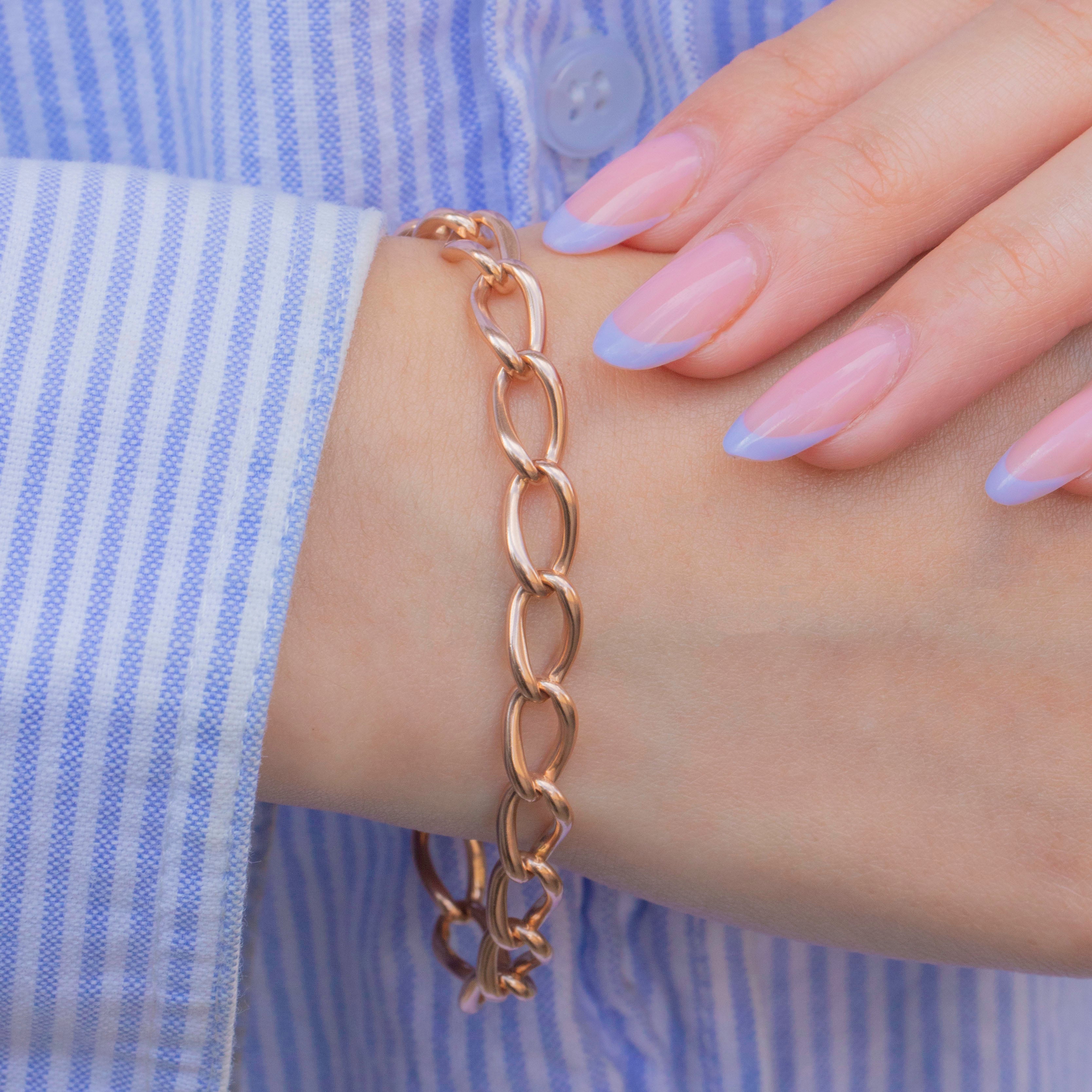 This antique 9ct Rose Gold bracelet will make a timeless addition to your antique jewellery collection! Each chunky curb link is crafted from richly saturated 9ct Gold, with the twisted links caressing your wrist like liquid Gold.