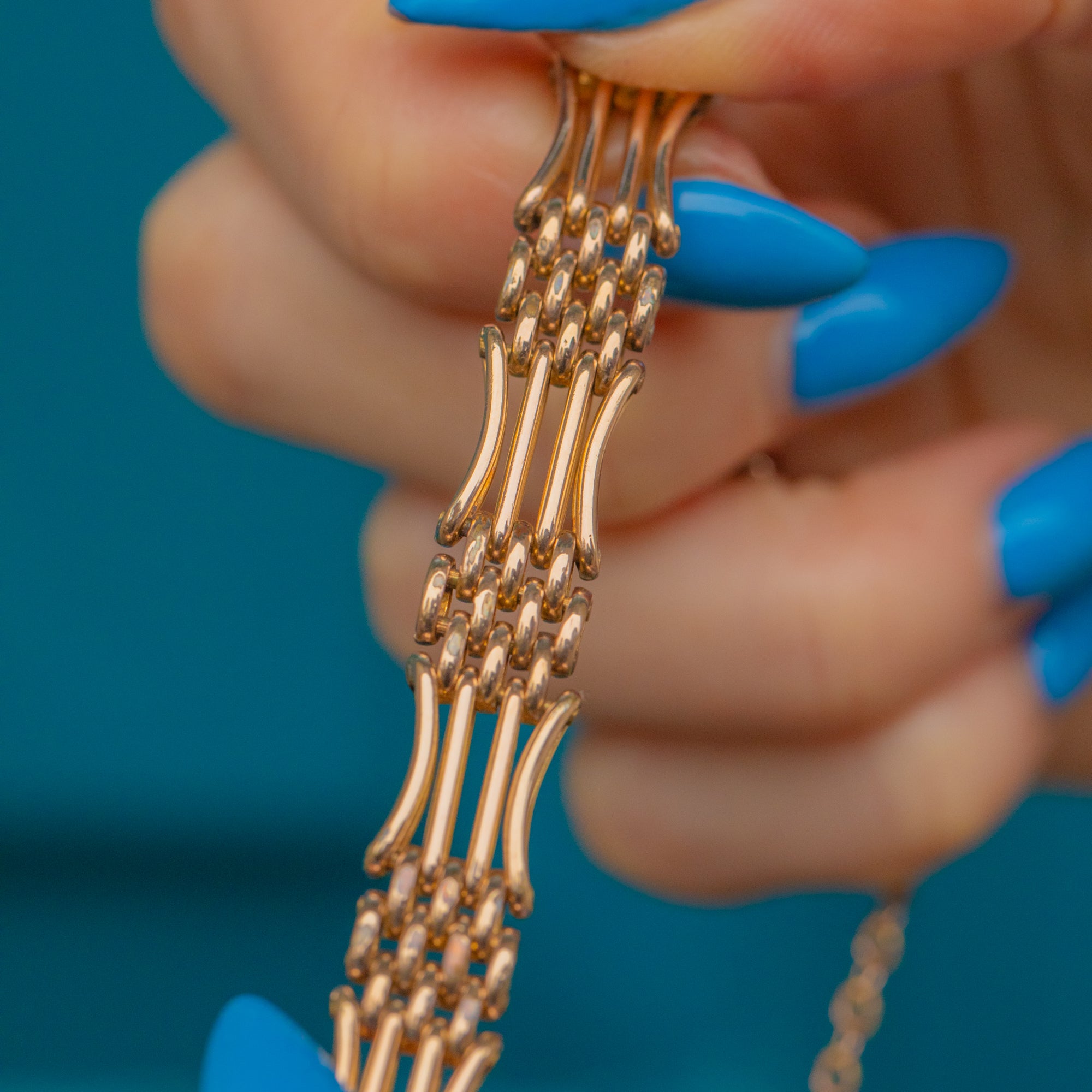 We simply adore this antique 9ct rolled Gold gate bracelet! Crafted entirely from solid 9ct Gold and boasting the most divine buttery hue, she is sophisticated and luxurious.