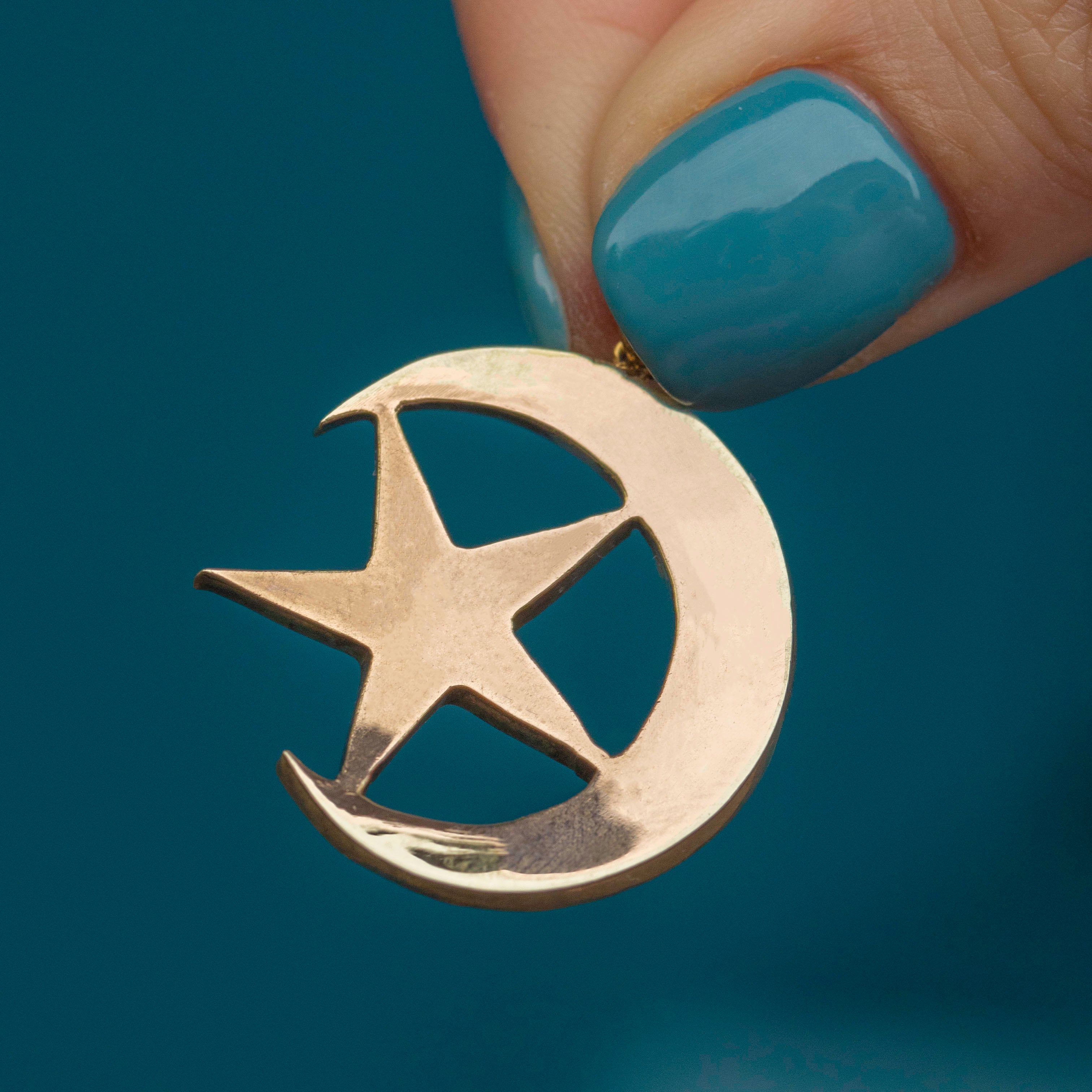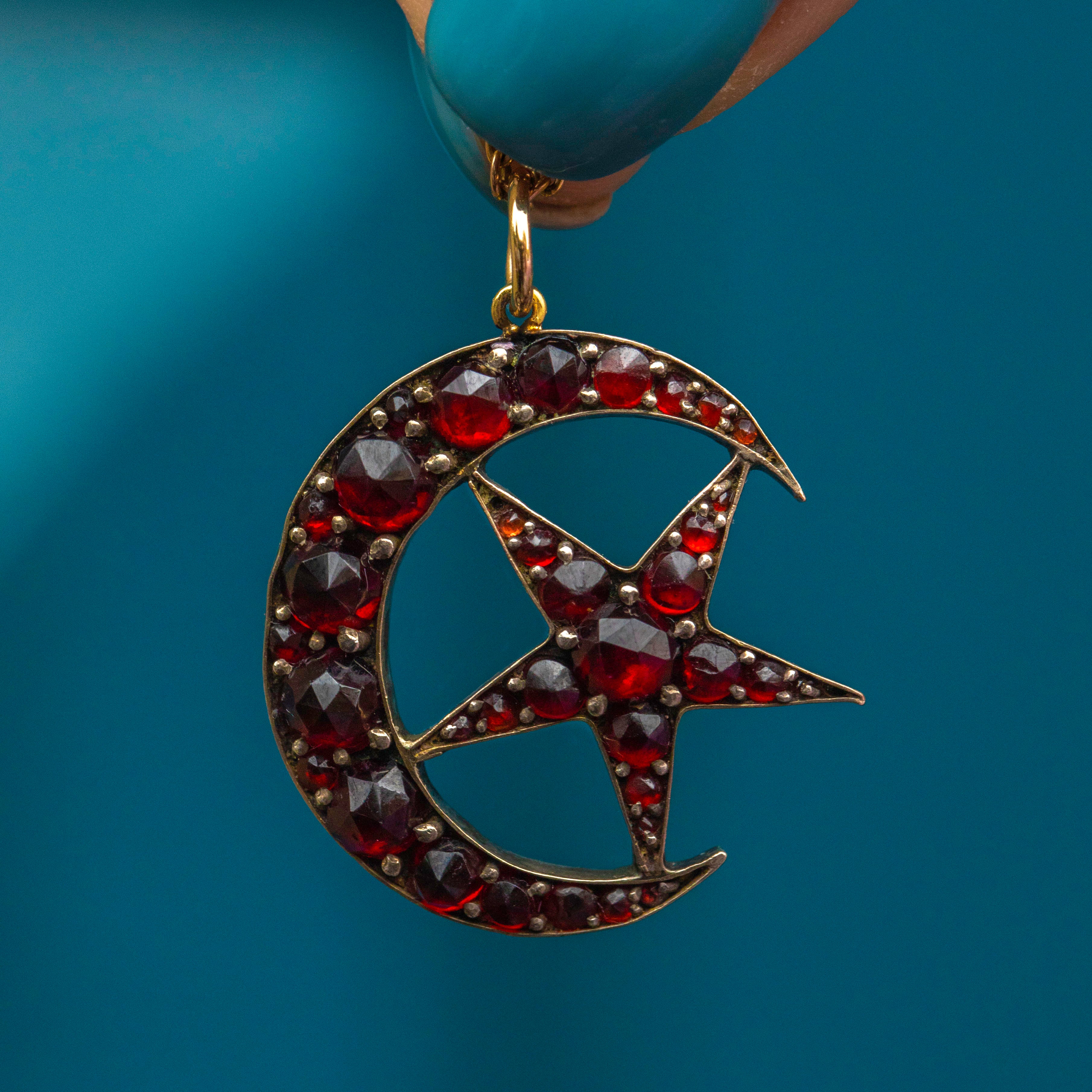 Antique Bohemian Garnet Crescent Moon & Star Pendant