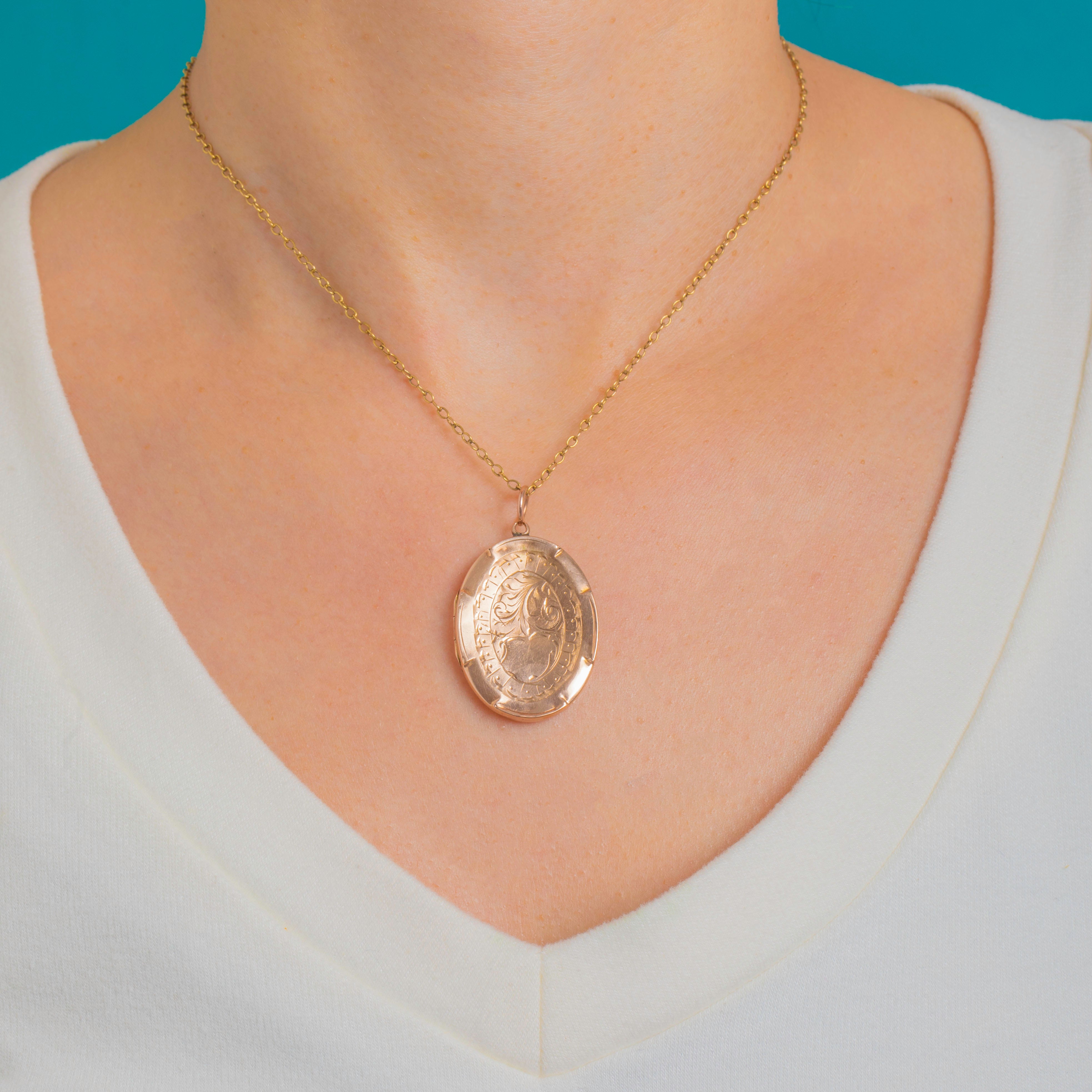 Antikes Edwardian Medaillon aus 9ct roséfarbenem Gold, oval, graviert