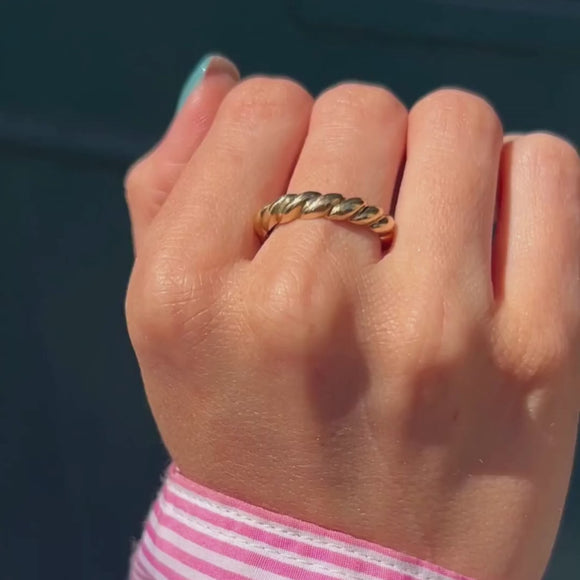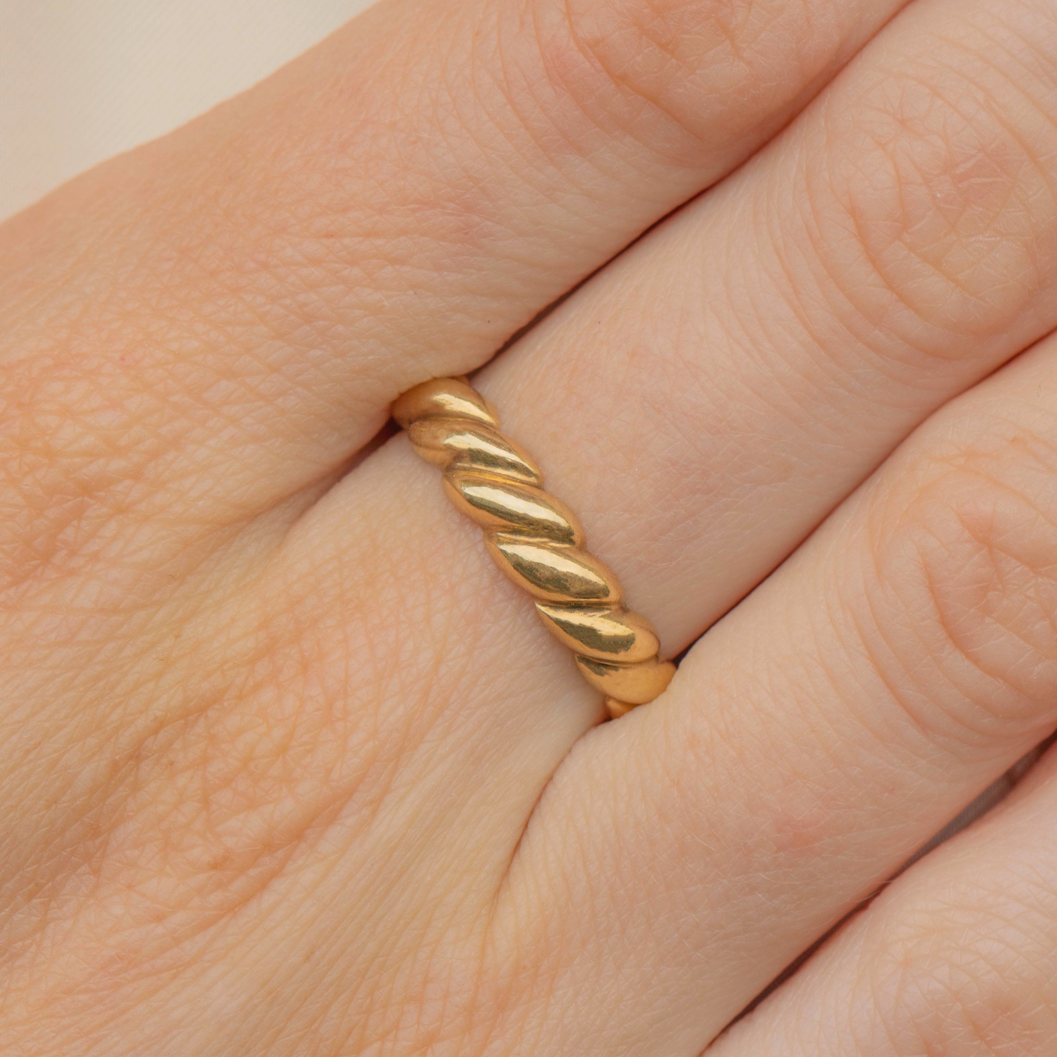 Bring a chunky 4mm statement to your ring stack with this unique antique Gold twist ring! Her entire circumference is formed of a perfectly woven twist design of solid 8ct Gold (a Continental Gold standard!), with the light bouncing off every angle of her curvaceous form.