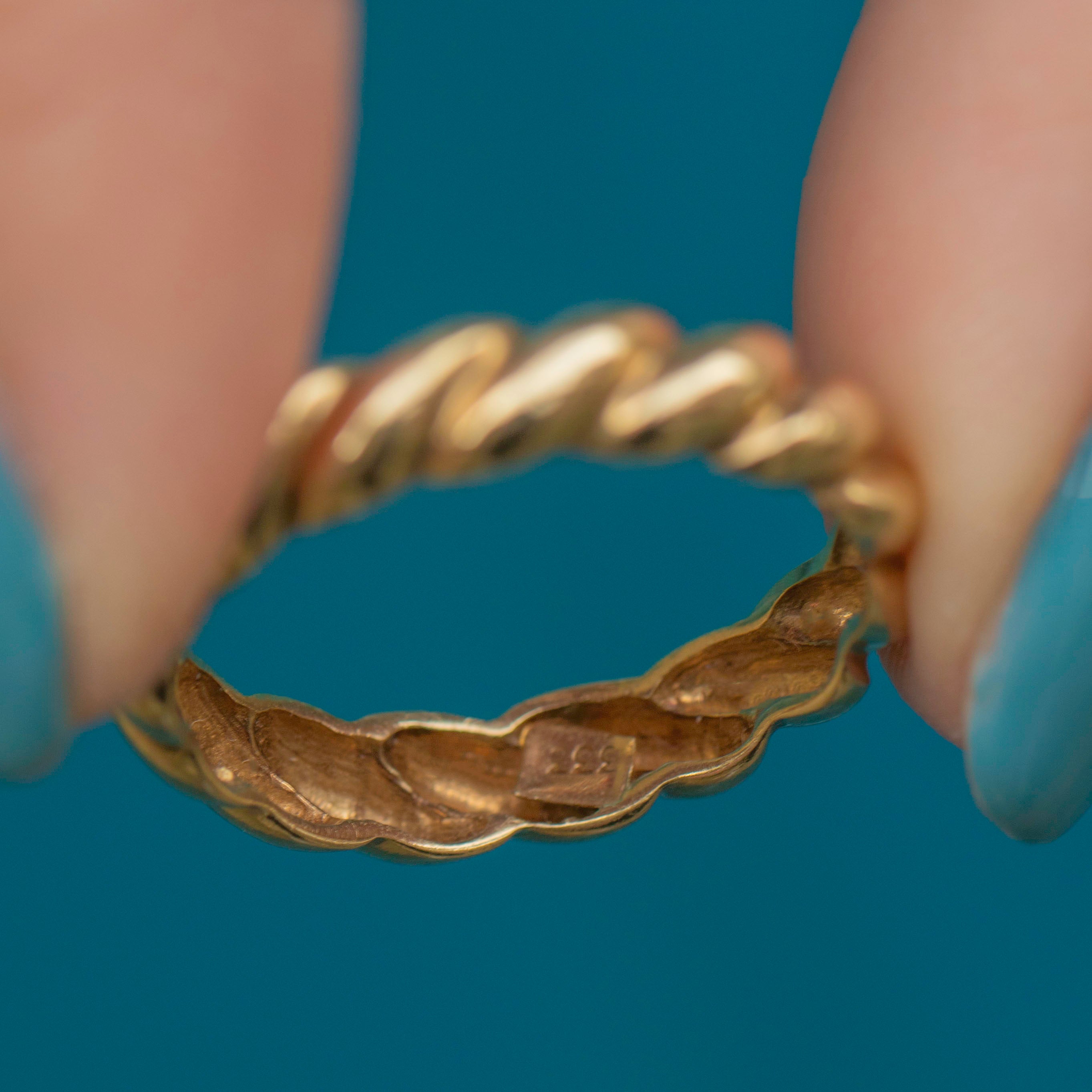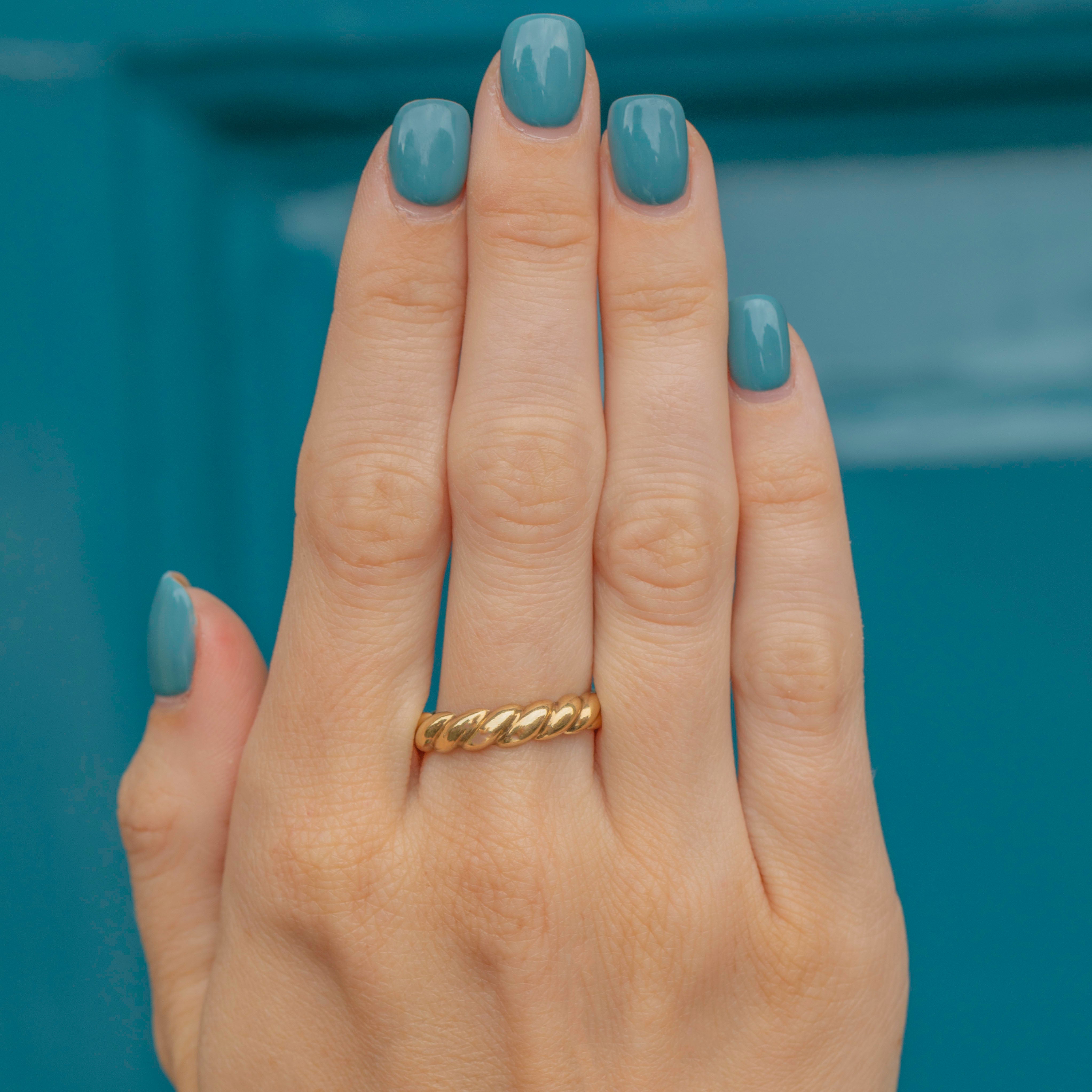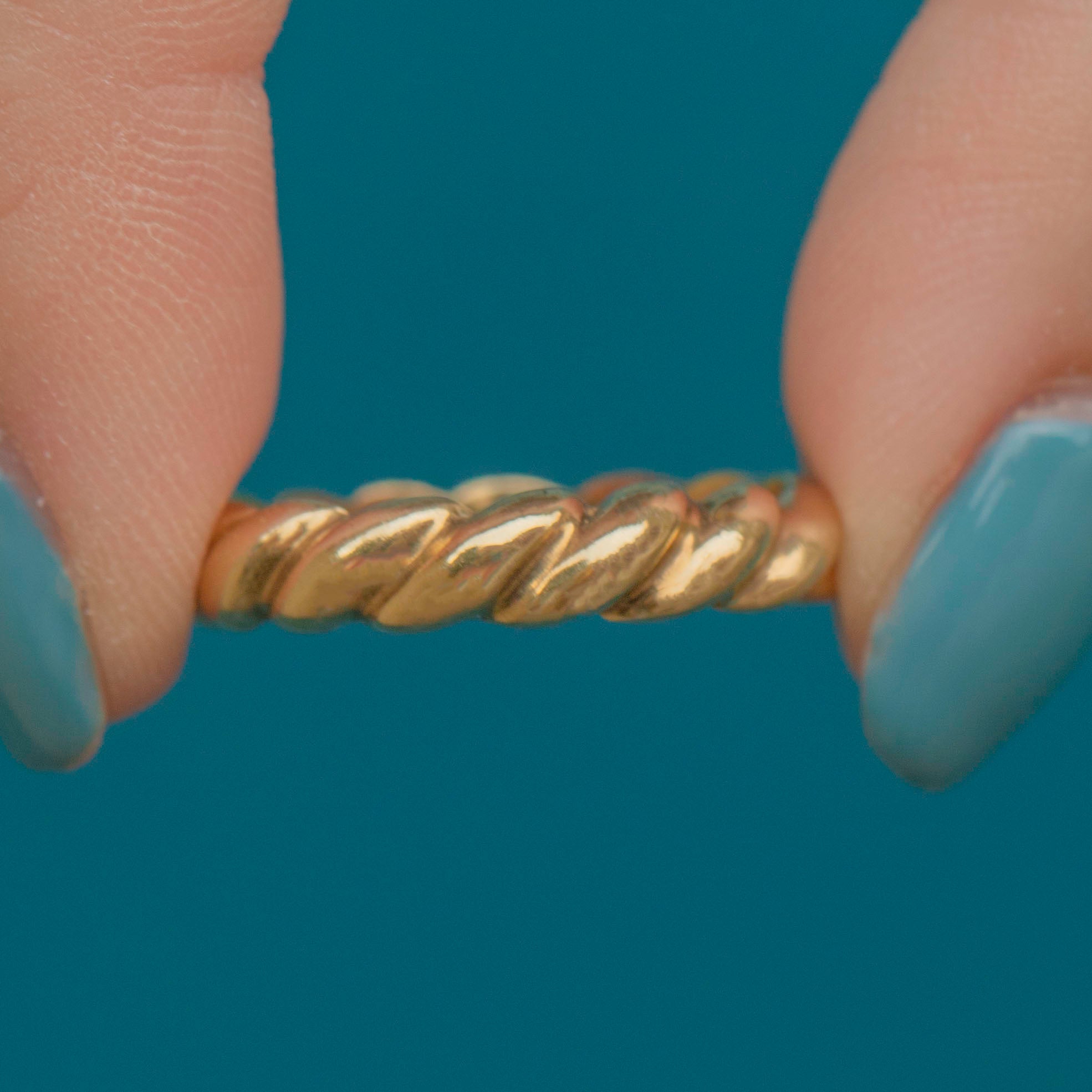 Crafted in the Victorian period, the design of this Gold rope ring remains just as popular today and will marry well against any of your other Gold goodies. We can just imagine how well she would work with a pair of Vintage chunky Gold hoops!