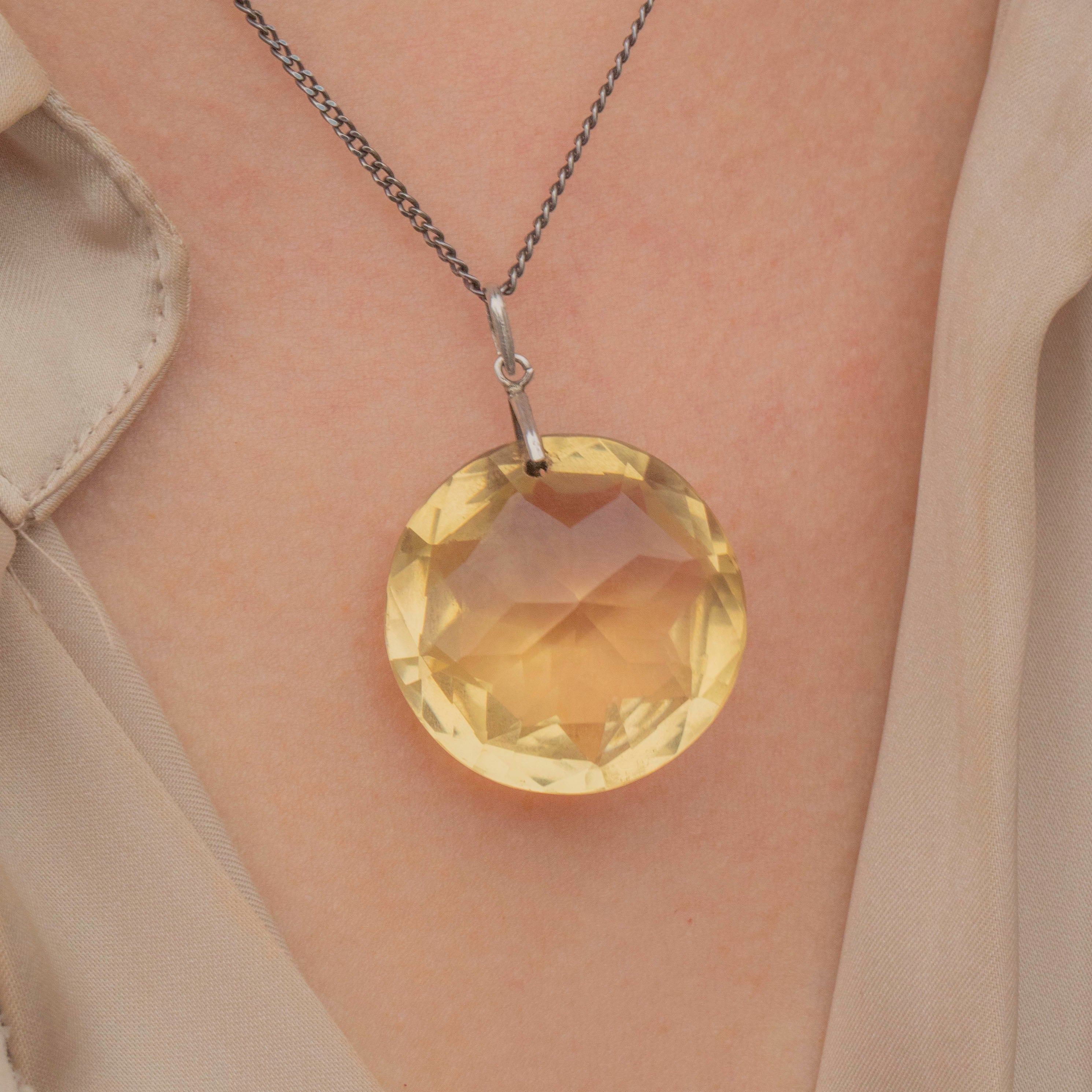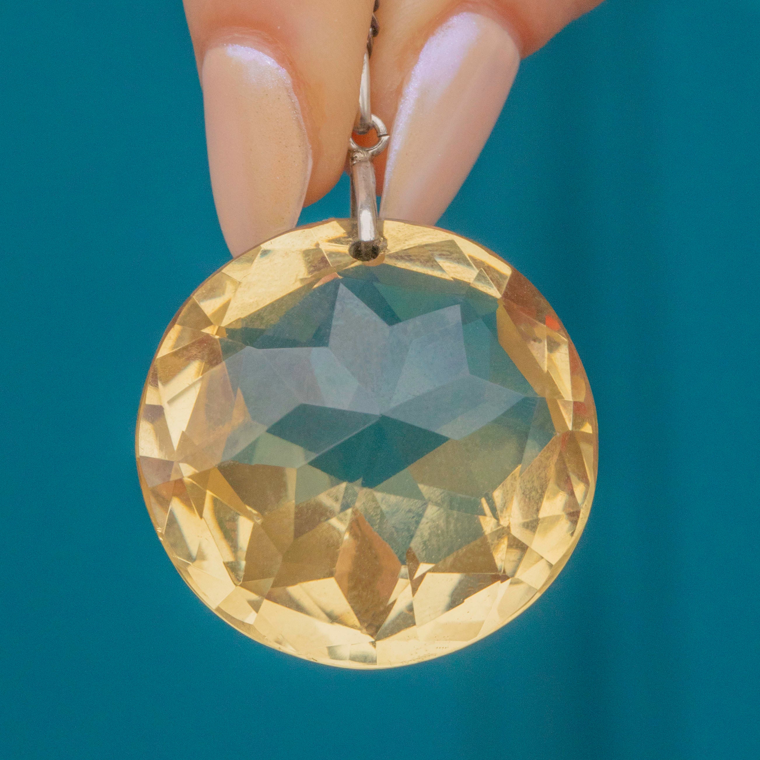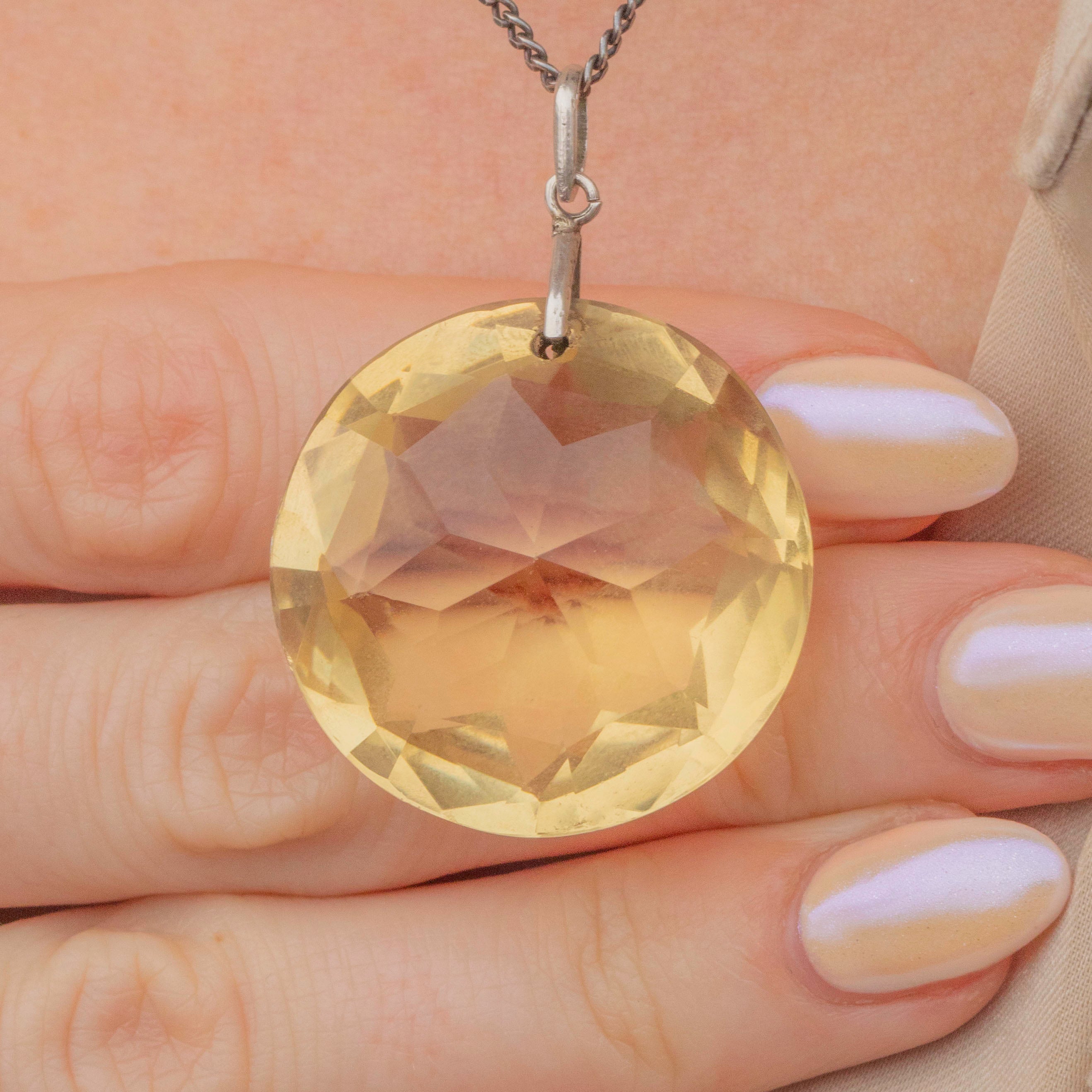 Antique Large Silver Round Citrine Pendant, 56.95ct