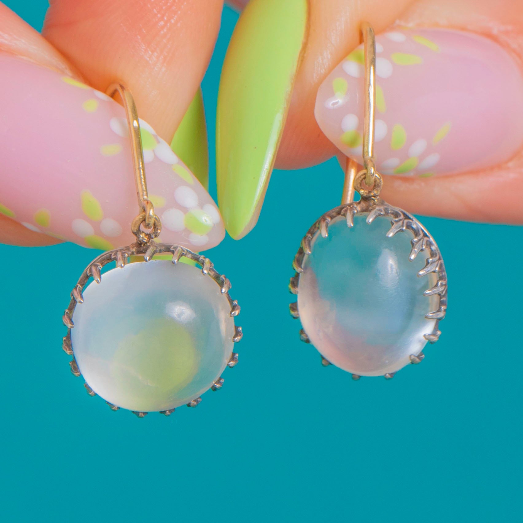 Antike Mondstein-Cabochon-Ohrringe, 9ct Goldhaken
