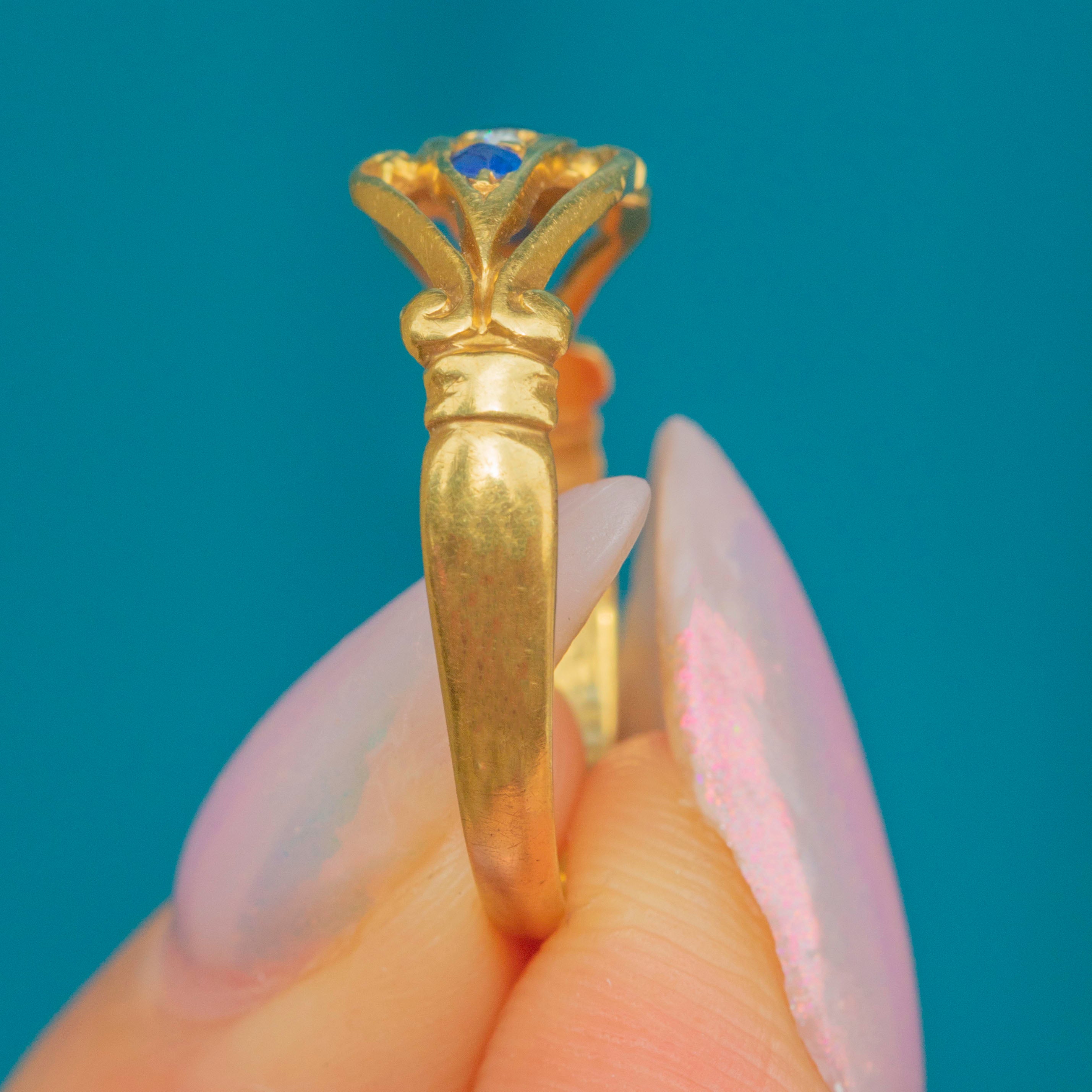 Antique Openwork 18ct Gold Sapphire Diamond Ring