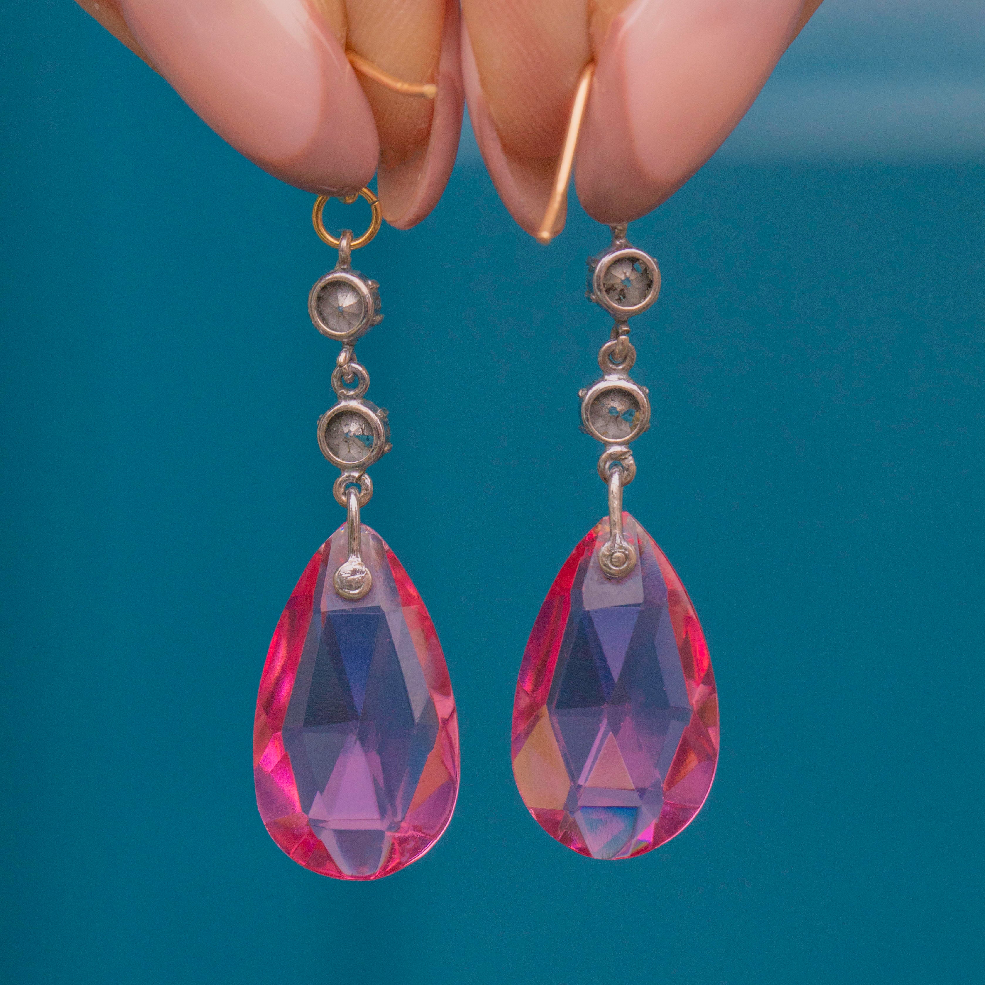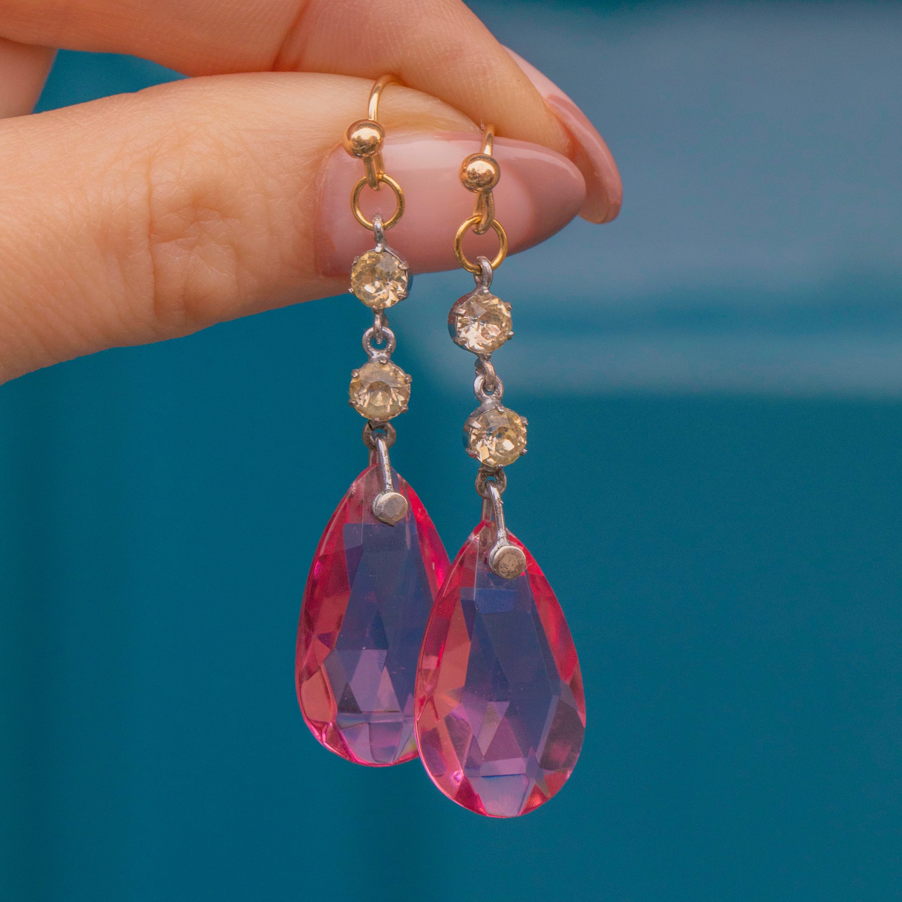 We adore these antique pink Paste drop earrings! Radiating vibrant bubblegum-pink hues, these drops of delight are gorgeously faceted and have a playful swing as they suspend from your lobes.