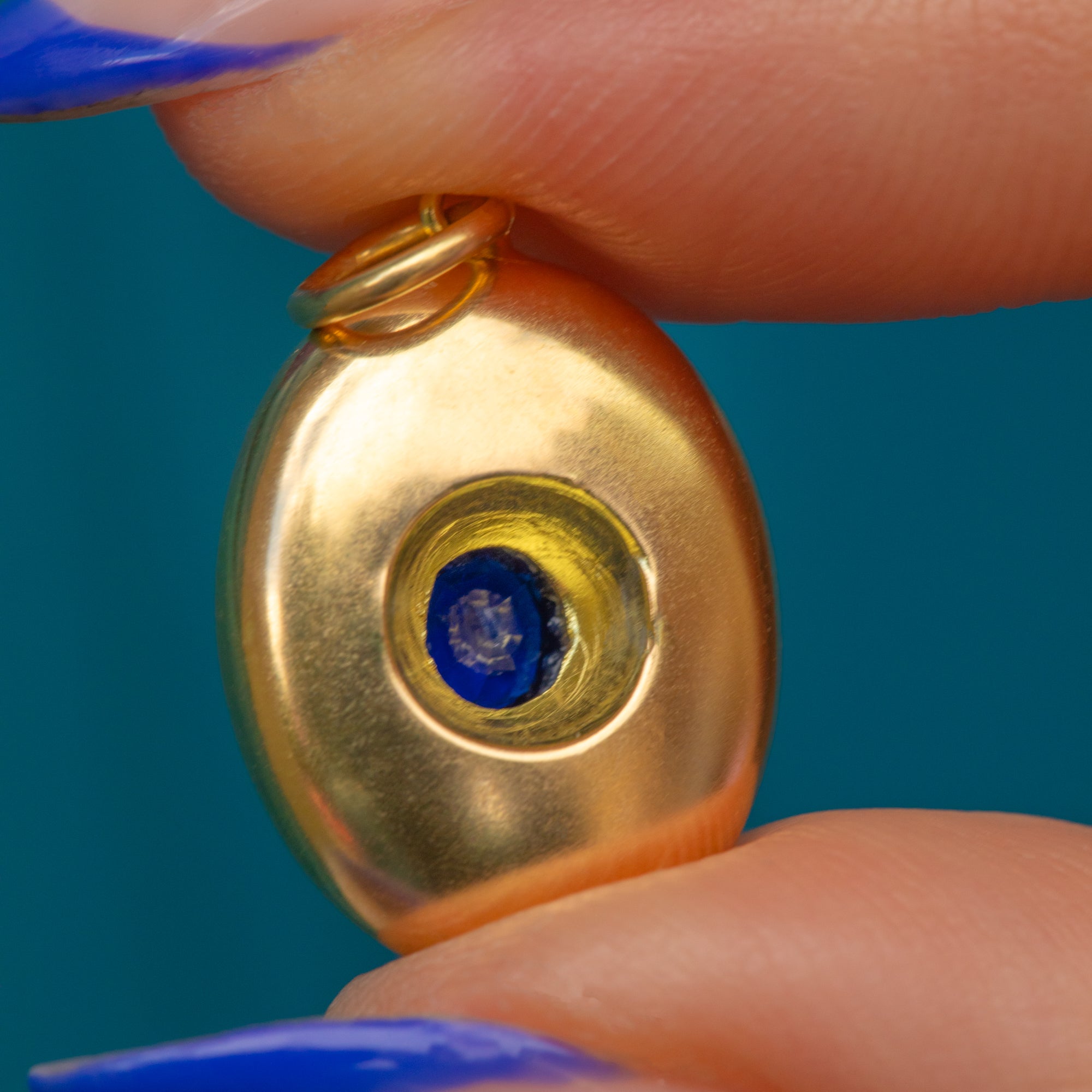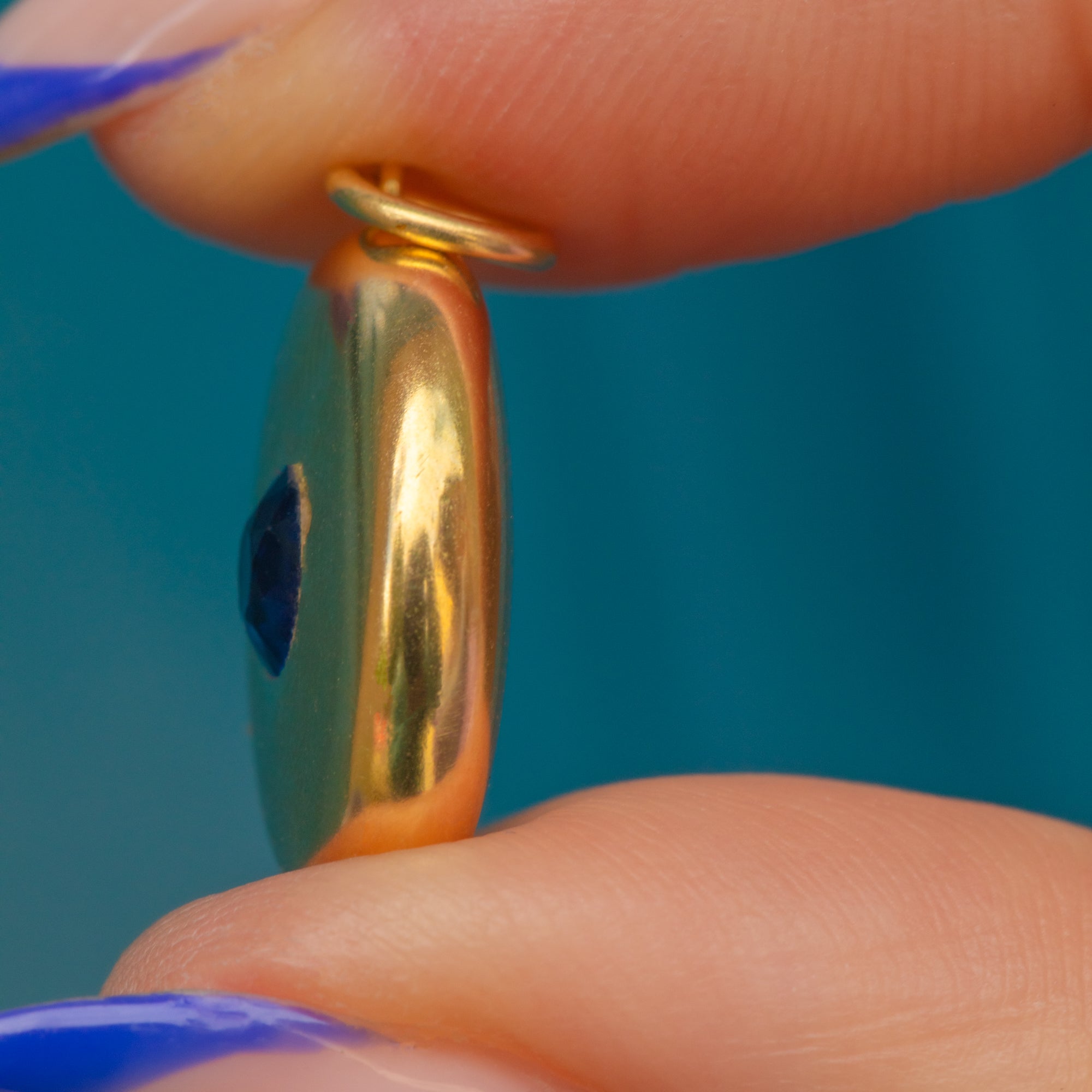 We can't get enough of this antique puffy 18ct Gold Sapphire Charm! Mined in Sri Lanka and formally known as 'Ceylon', their Sapphires are renowned for having exquisitely vibrant colour and clarity, and that's exactly what this 0.45ct Sapphire nestled snuggly at the centre offers.