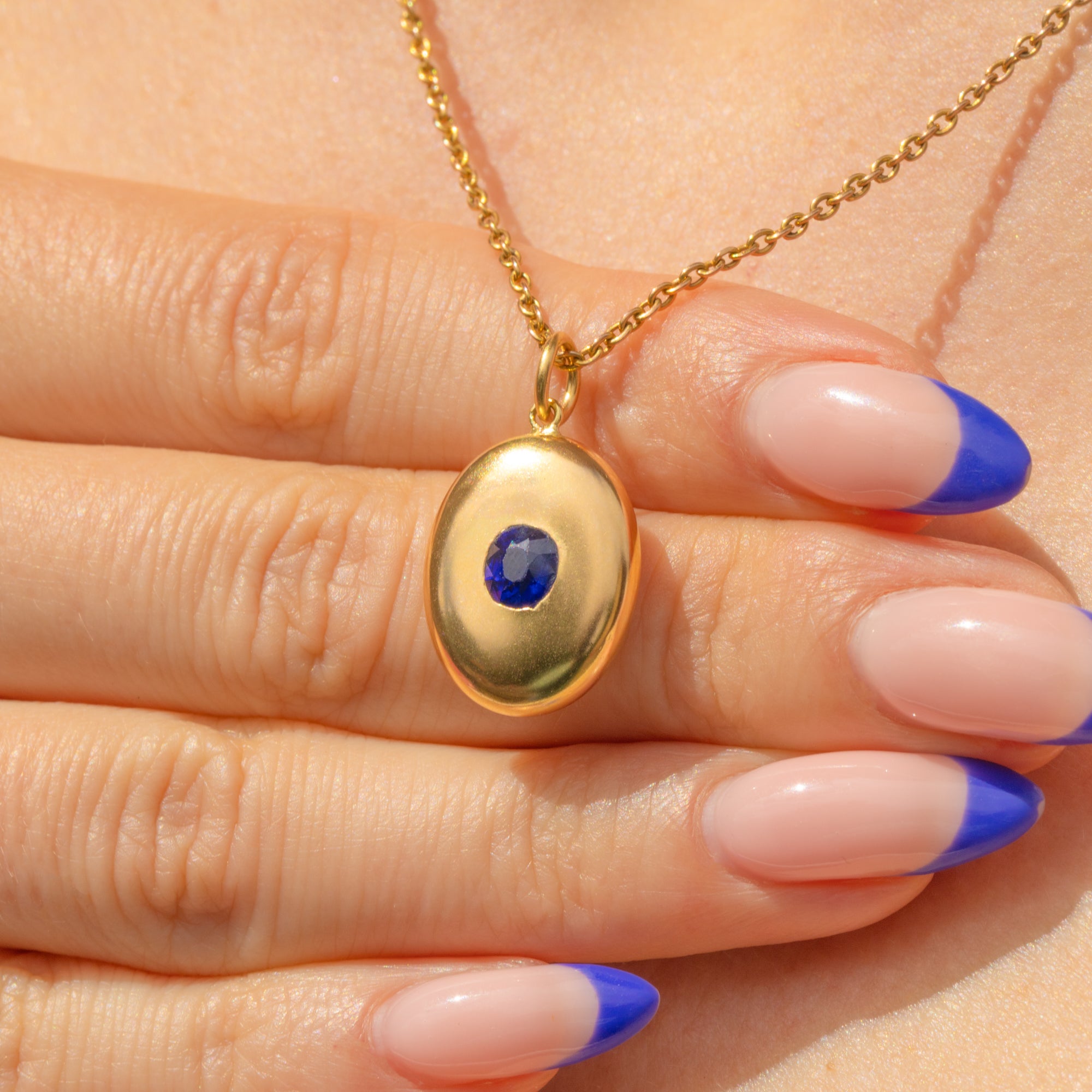 Her glistening Sapphire is encompassed by a halo of buttery 18ct Gold with a curvaceous and puffy form that sits comfortably upon your chest. Born in the 19th century, this Victorian Sapphire pendant possesses a timeless appeal, you are bound to be reaching for her time and time again.