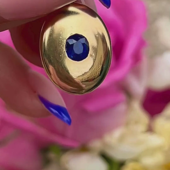 Antique Puffy 18ct Gold Sapphire Charm -Natural 0.45ct Ceylon Sapphire