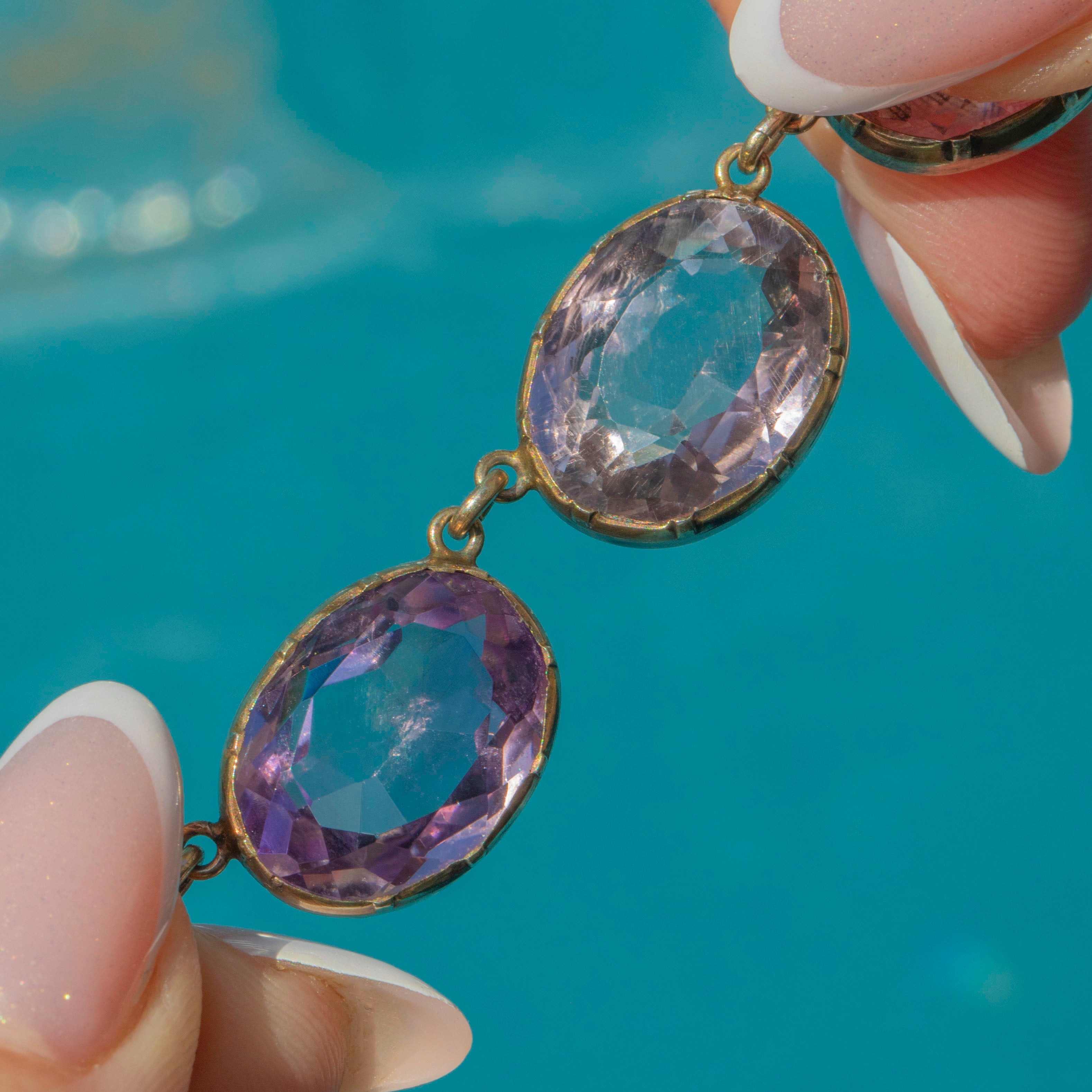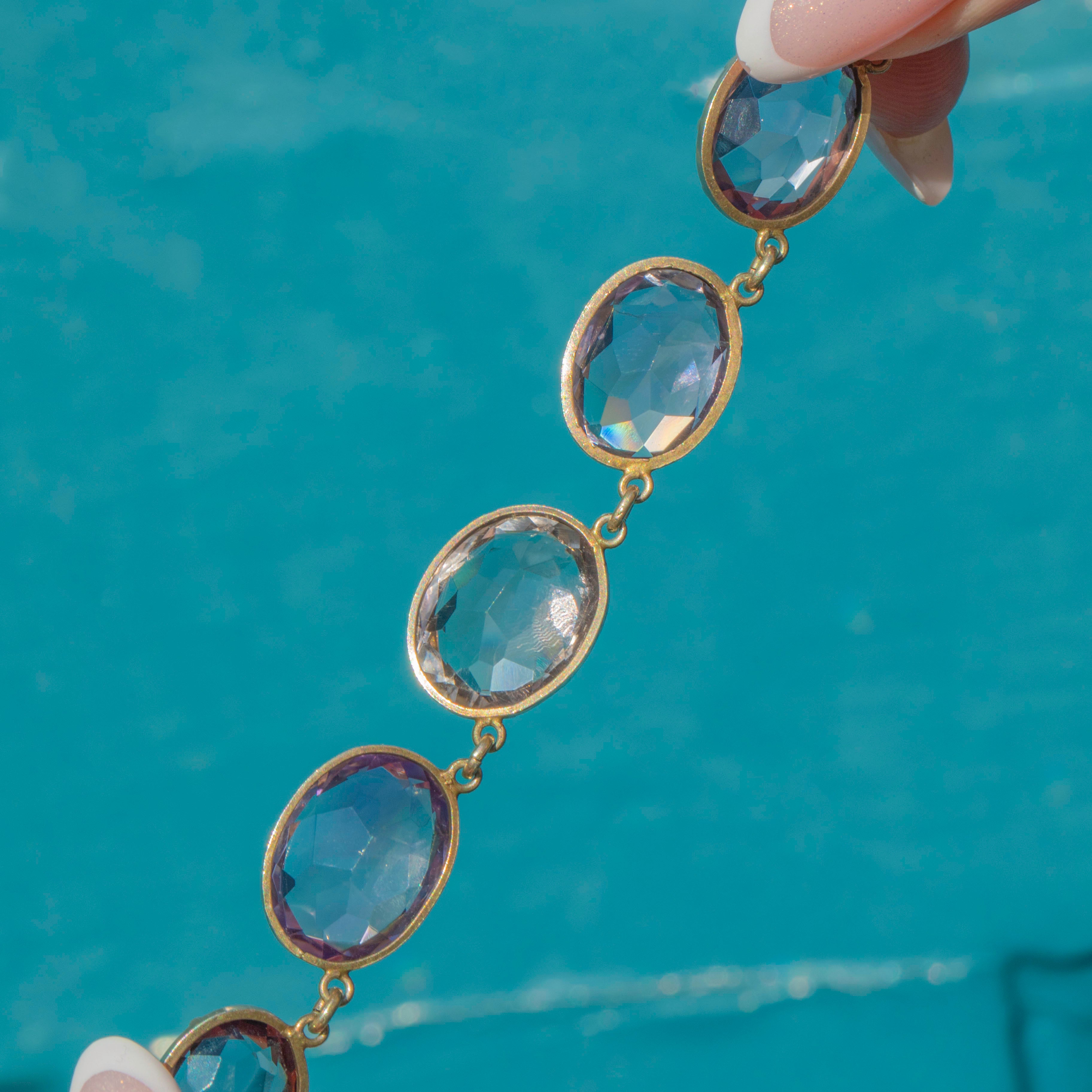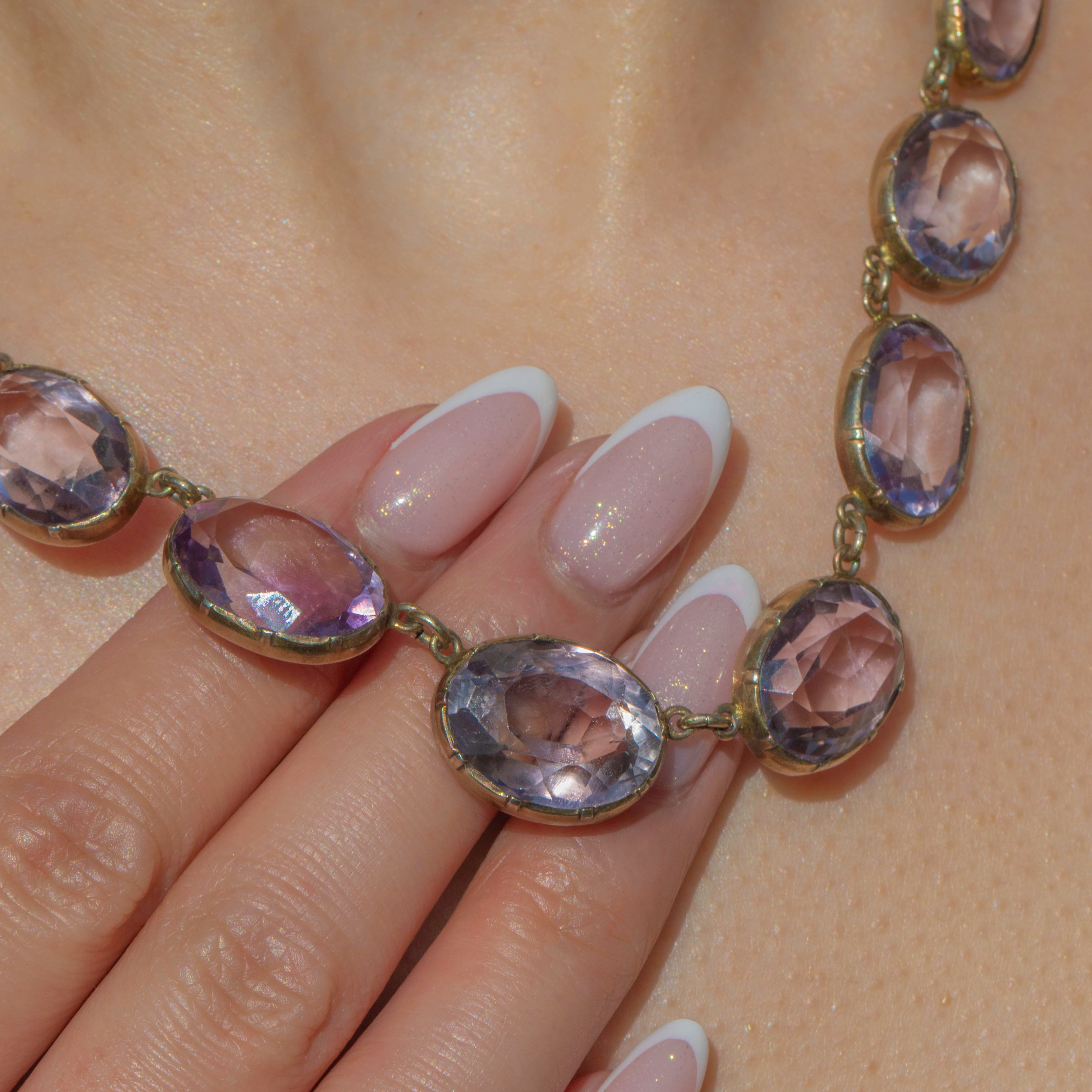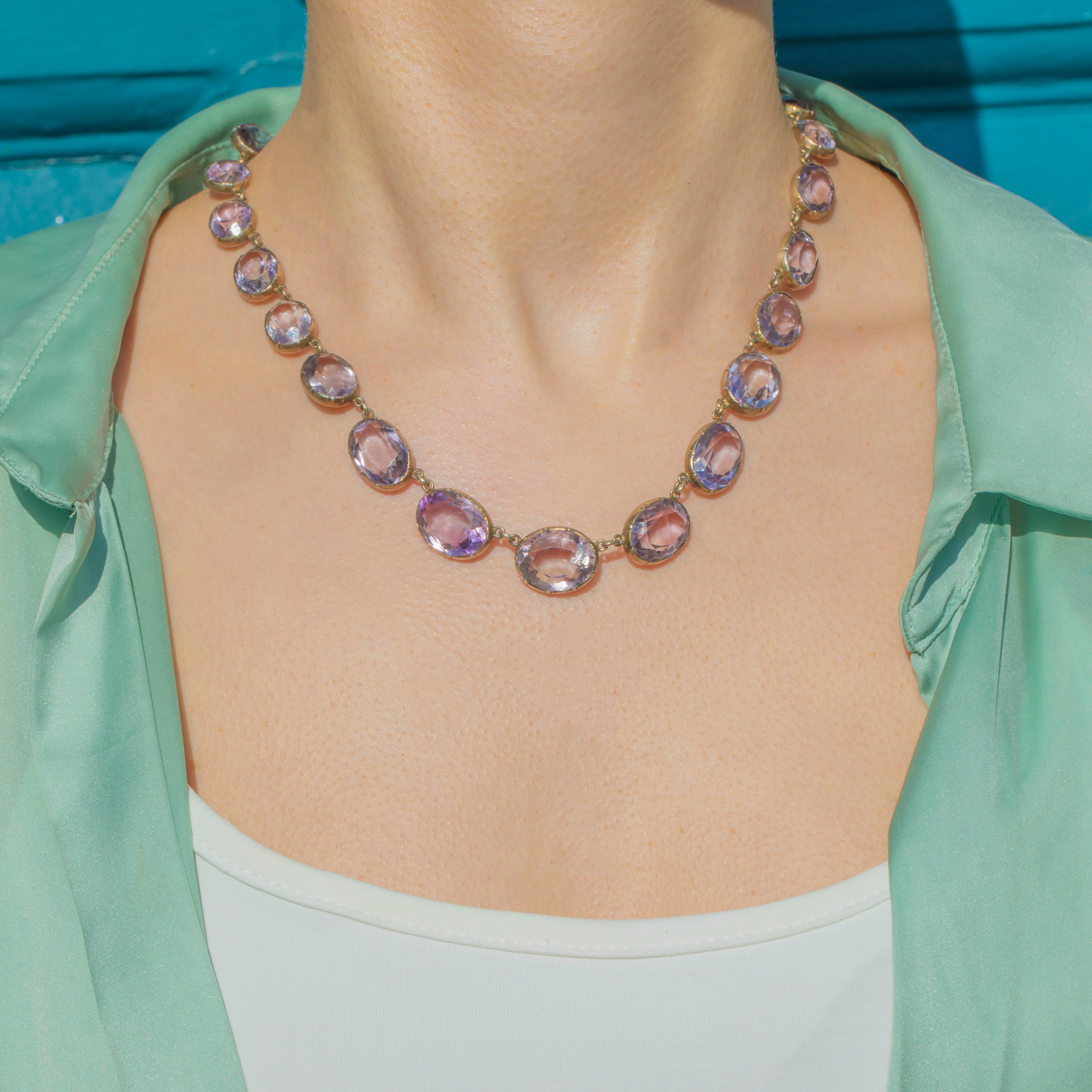 Each of the Amethysts has its own pale lavender hue, but we love how the central Amethyst has a deeper purple tone. With oval-cut Amethysts spanning the entire width of the necklace, the beauty of this piece can be adorned from all angles!