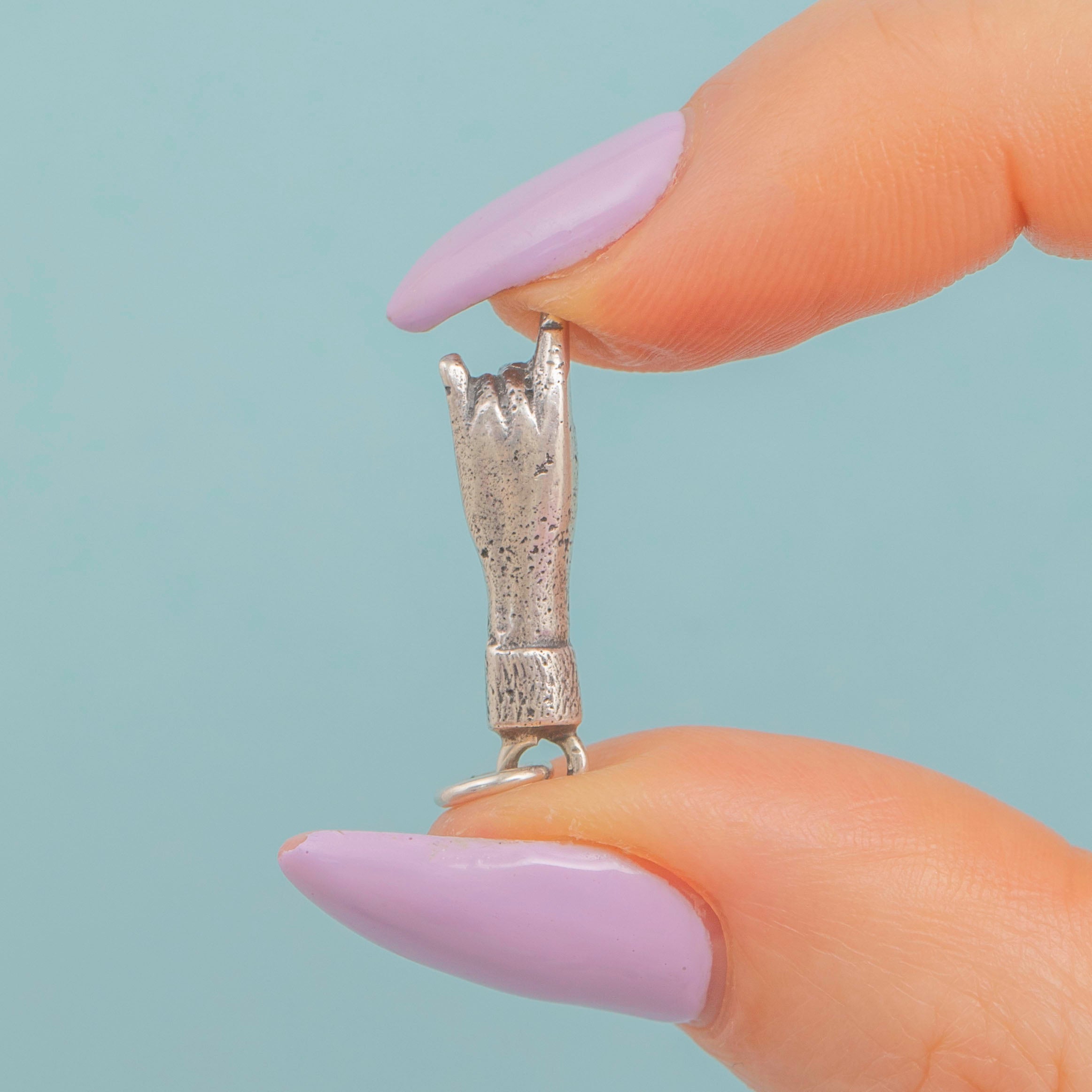 If you enjoy jewellery pieces steeped in unique symbolism, you'll quickly be captivated by this antique Silver Figa hand charm. Crafted in a strong Silver with a distinctive patina, she's a very intriguing one!