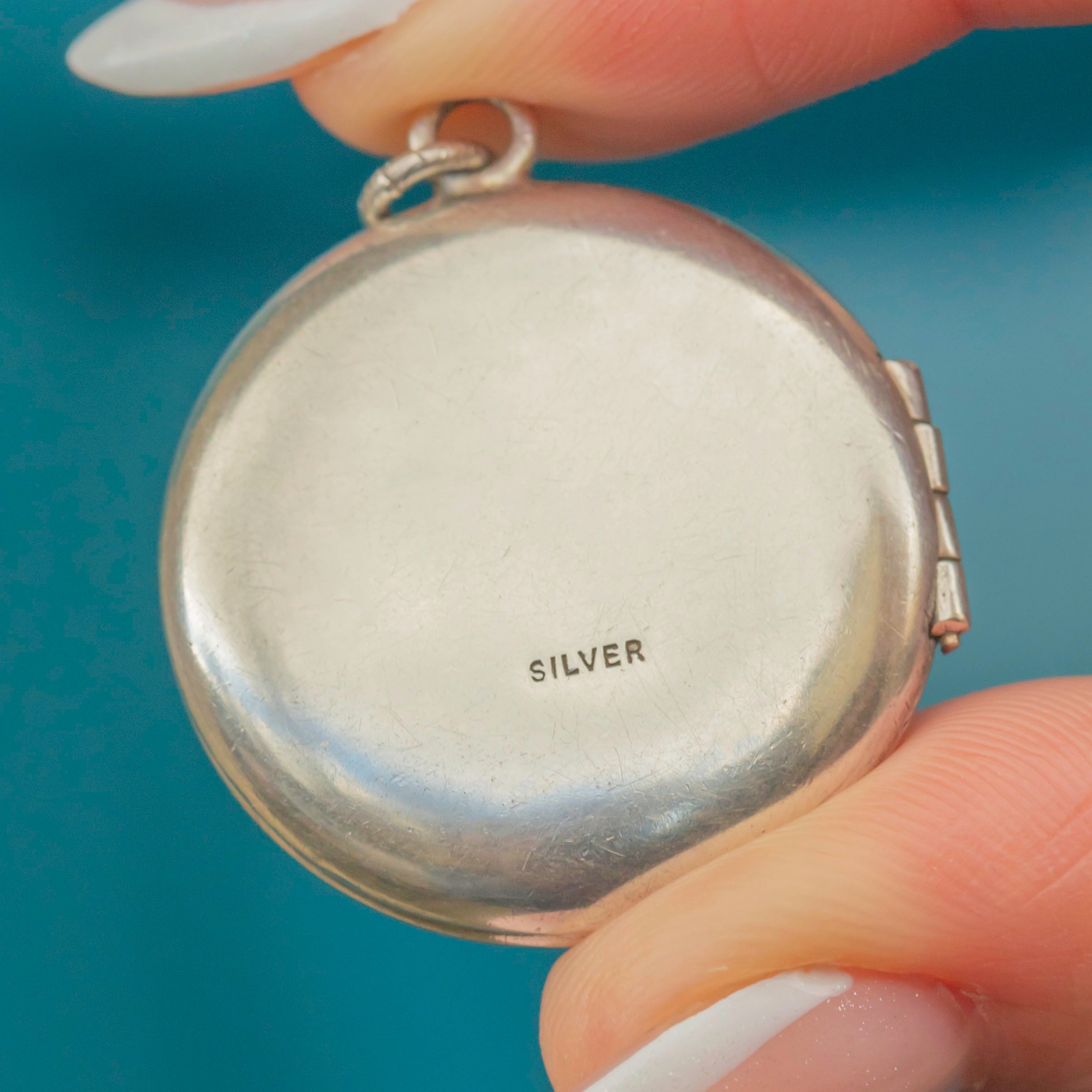 VERY GOOD-EXCELLENT: This Art Deco Silver green guilloché Enamel locket is in great condition. Her Enamel is radiant and detailed, complemented by the Silver doors. There are some general mild signs of wear to the locket, which is expected with age. Closing with a secure 'click', you can wear this Art Deco locket with confidence!