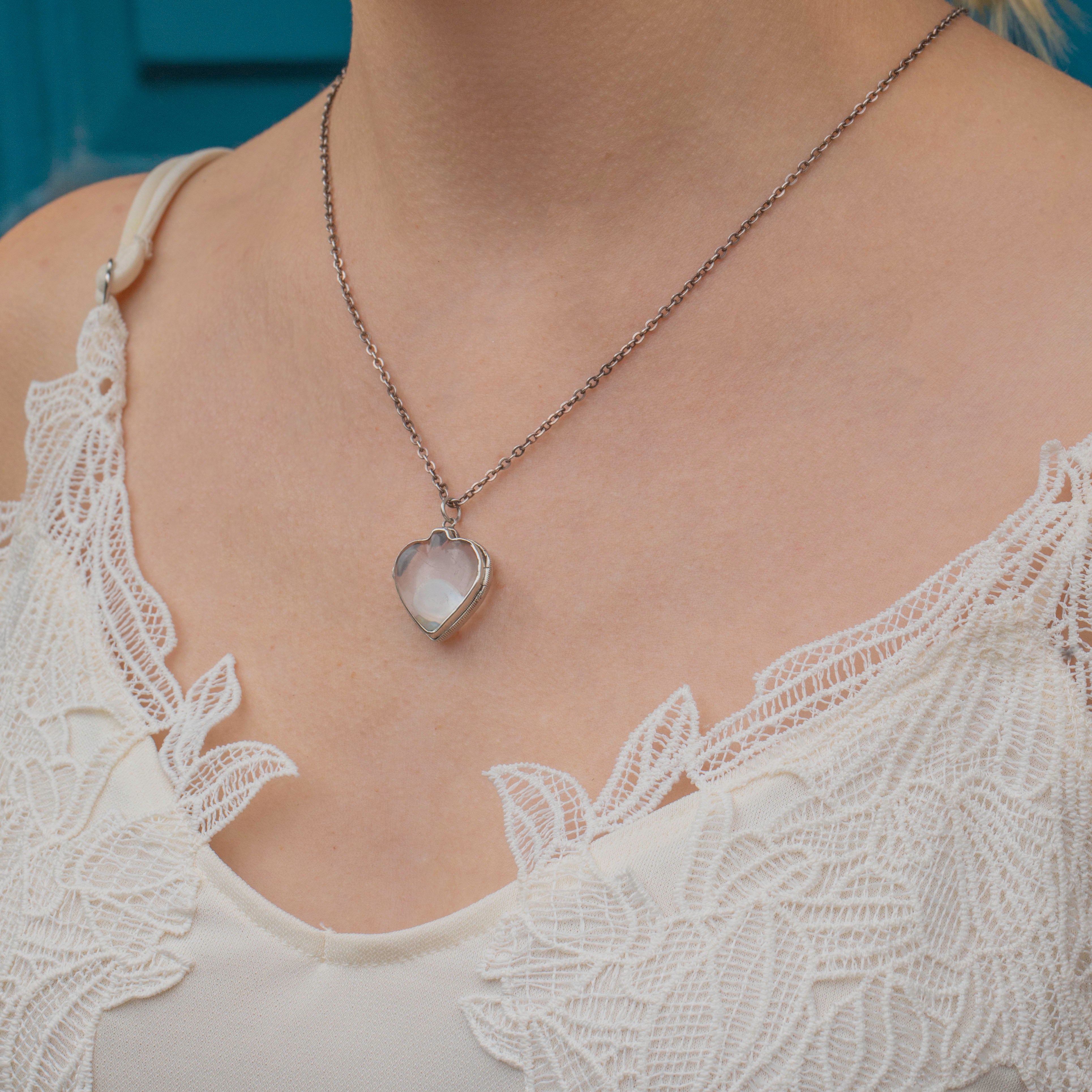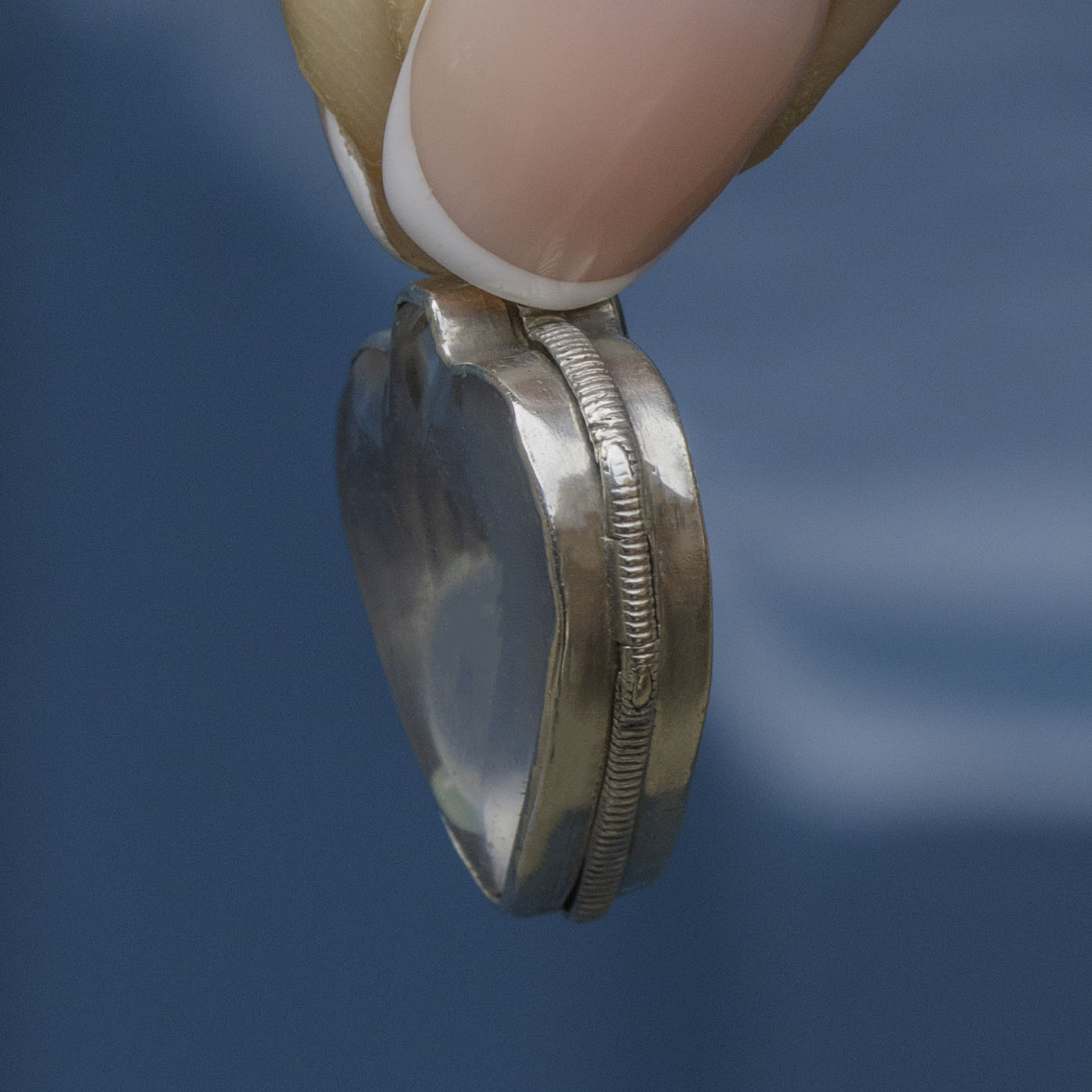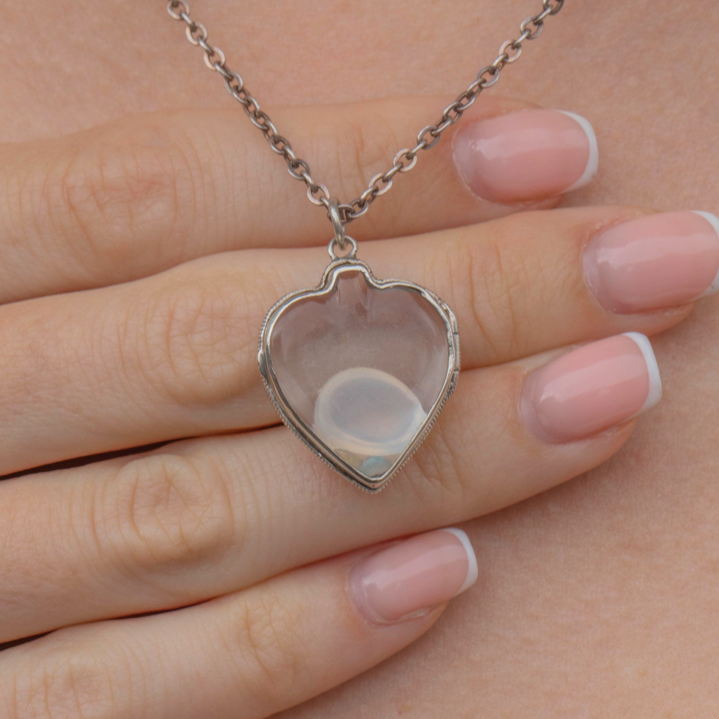 VERY GOOD. This Victorian Silver heart shaker locket is in very good condition. The Silver is lustrous and holds the Glass panels securely in place, with only minimal signs of wear. Although there are a few scratches on the Glass panels, they are original to the piece which is no mean feat when considering this locket was crafted over a century ago! With the locket closing firmly, you can wear this sweet antique shaker with absolute confidence!