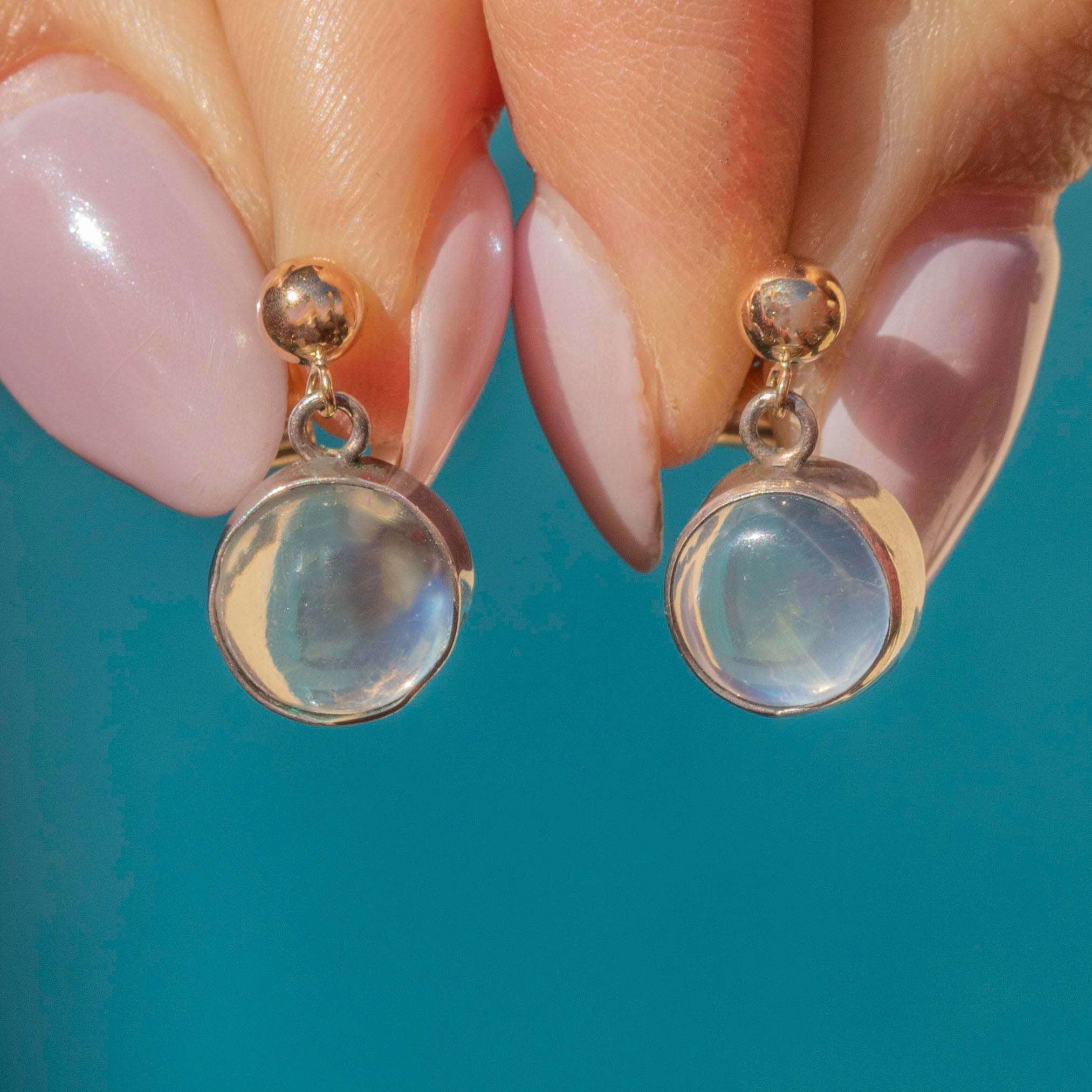Add a touch of ethereal beauty to your jewellery collection with these stunning antique Silver Moonstone earrings! Each earring showcases a high-domed Victorian Moonstone cabochon with an enchanting silvery adularescence displayed within a complimentary Silver bezel.