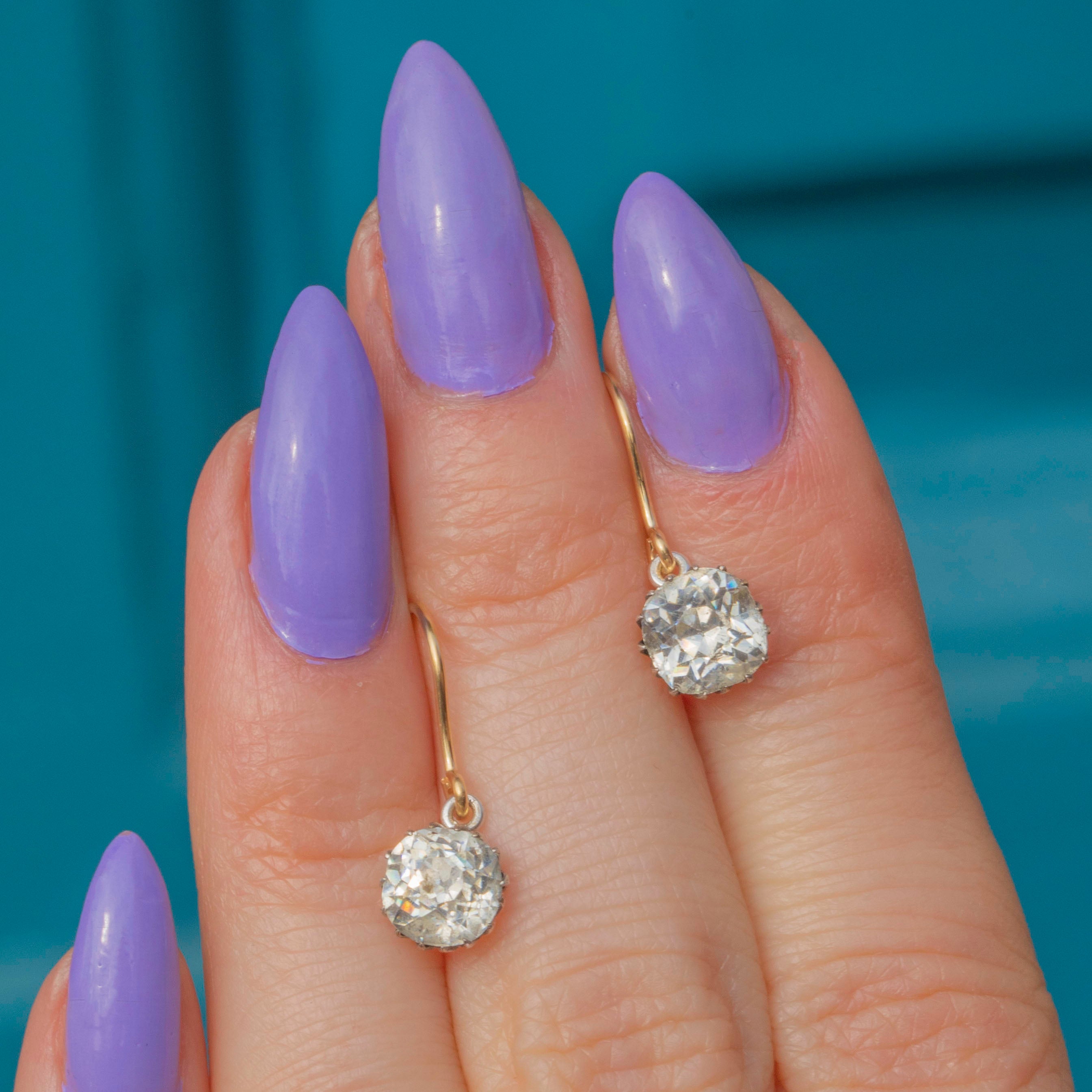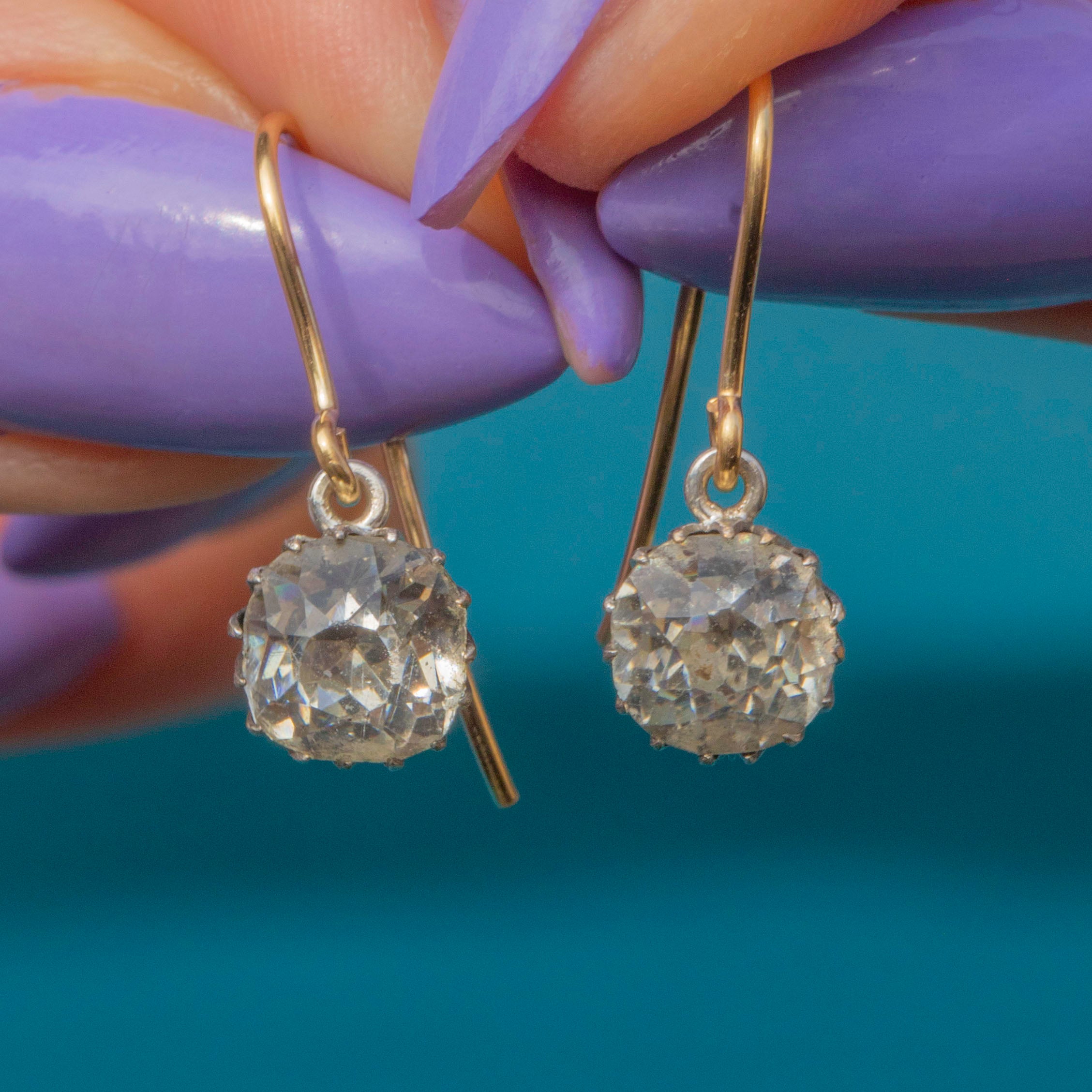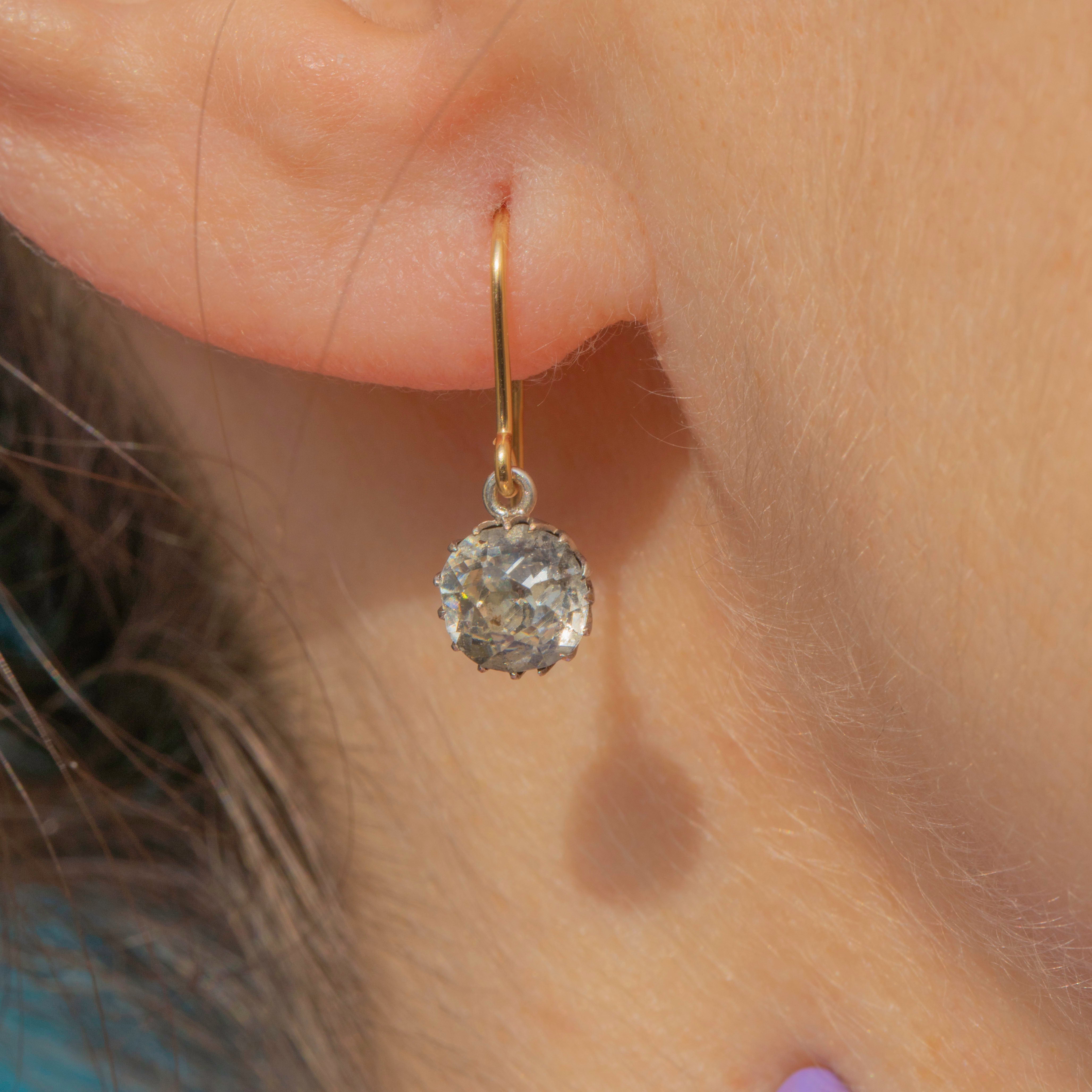 Each Victorian drop earring features a twinkling Paste stone, set within glossy Silver settings, dancing with movement as they suspend from buttery 9ct Gold hooks.