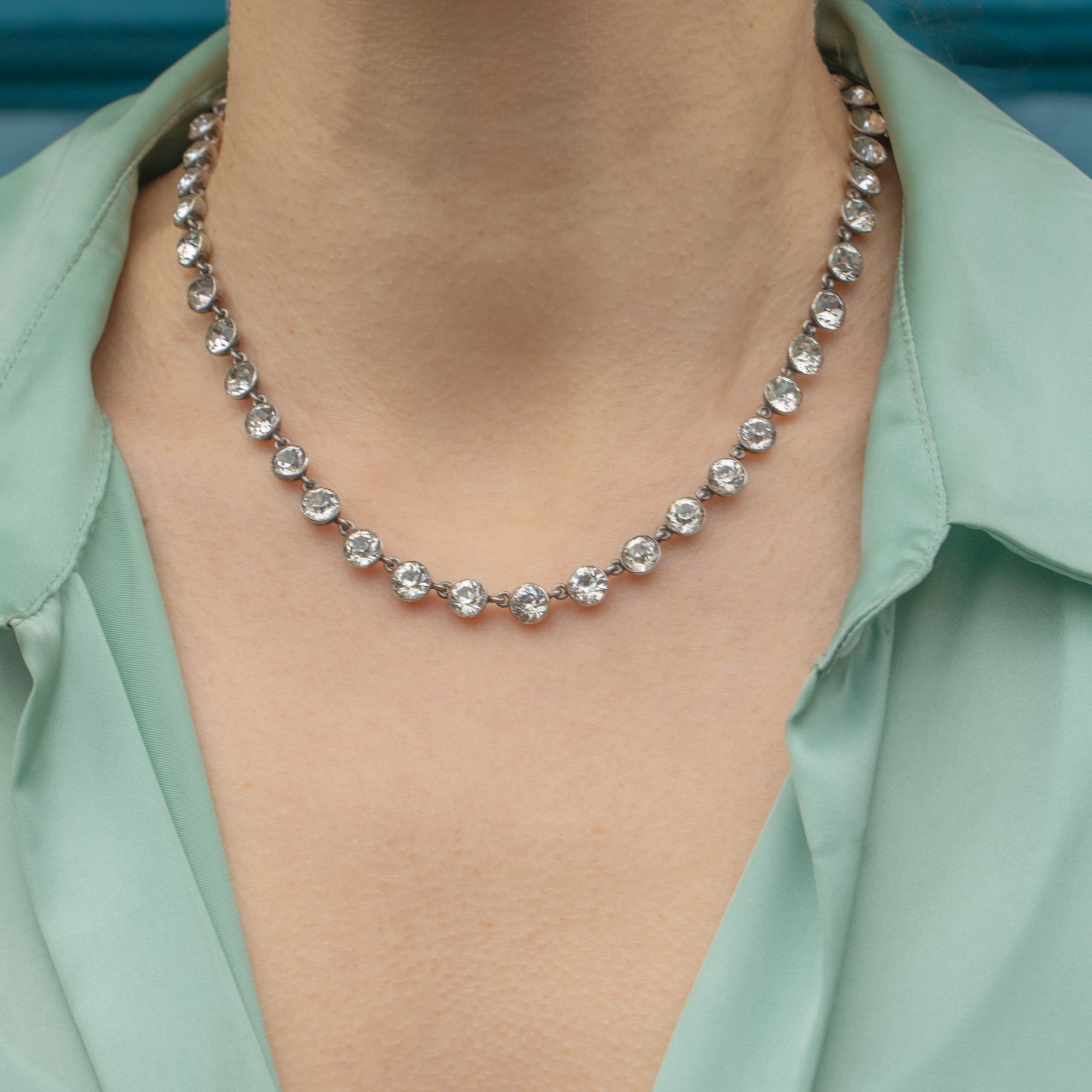Possessing timeless beauty and charm, this antique Silver Paste Riviere necklace is an heirloom-worthy piece! Meticulously hand crafted, this Sterling Silver beauty will effortlessly drape itself across your collarbones!