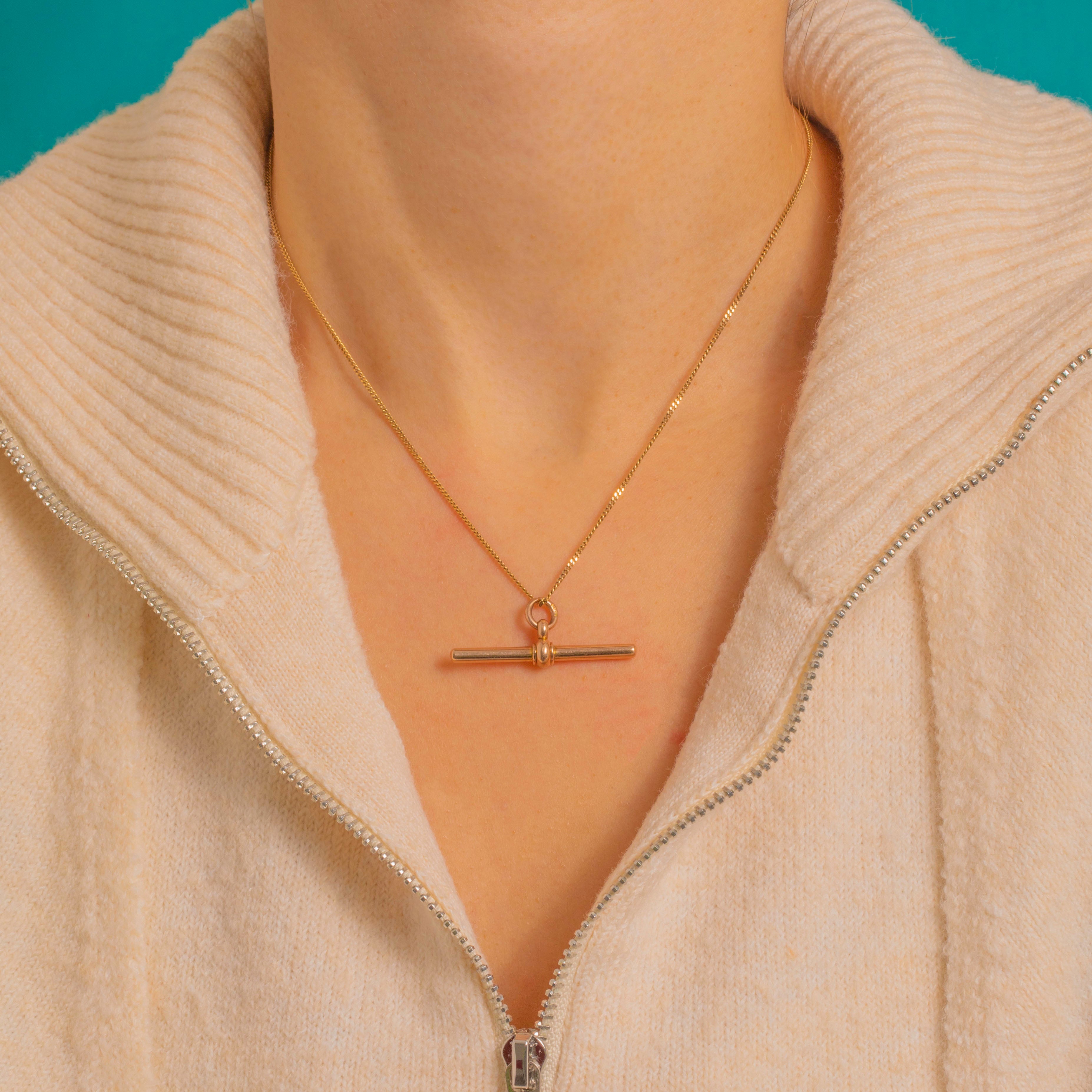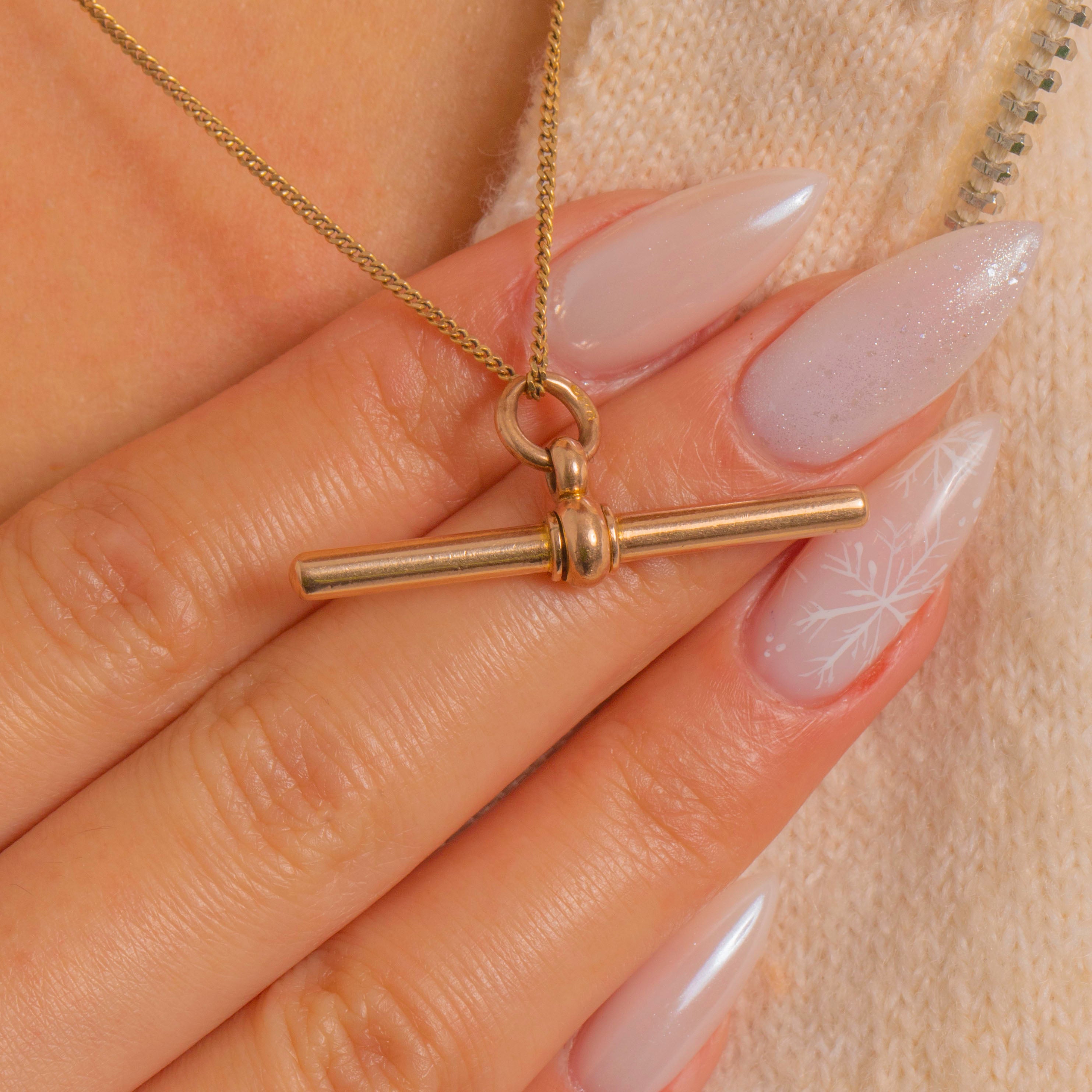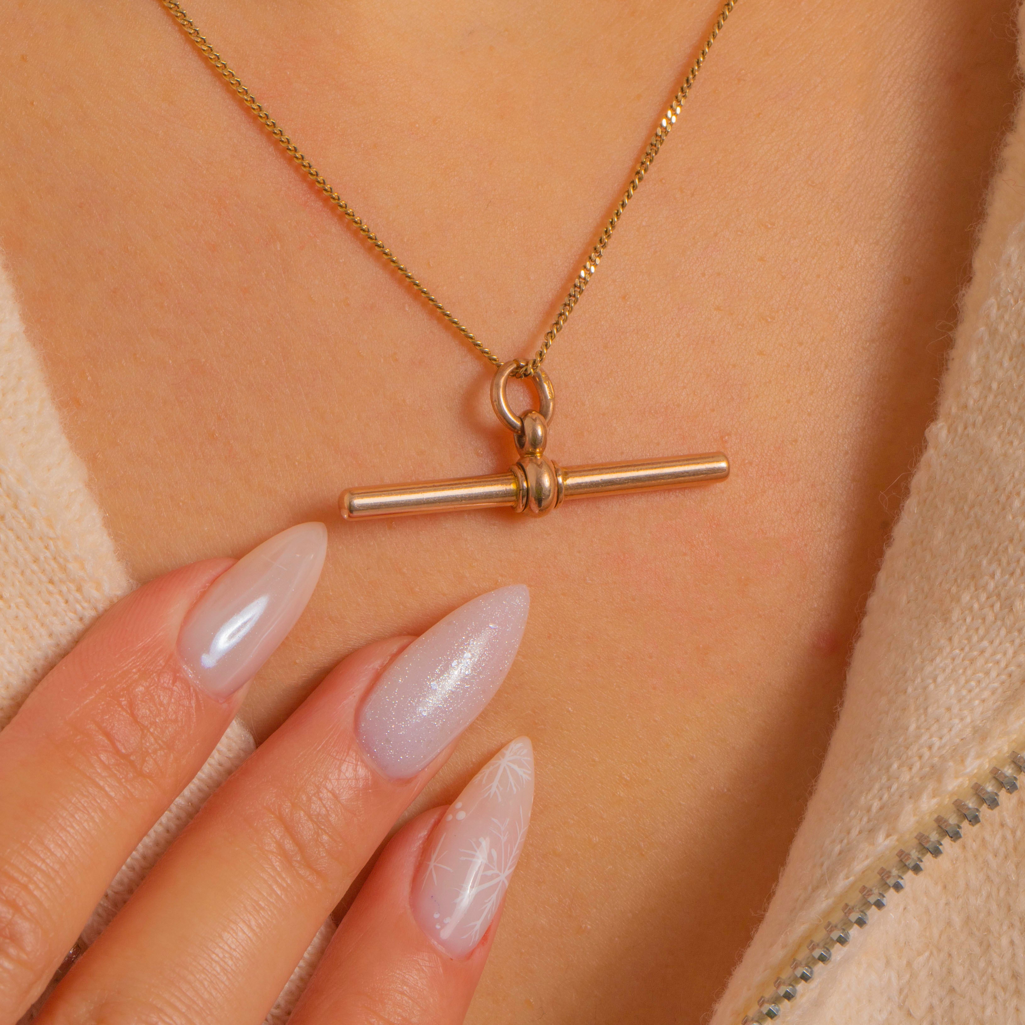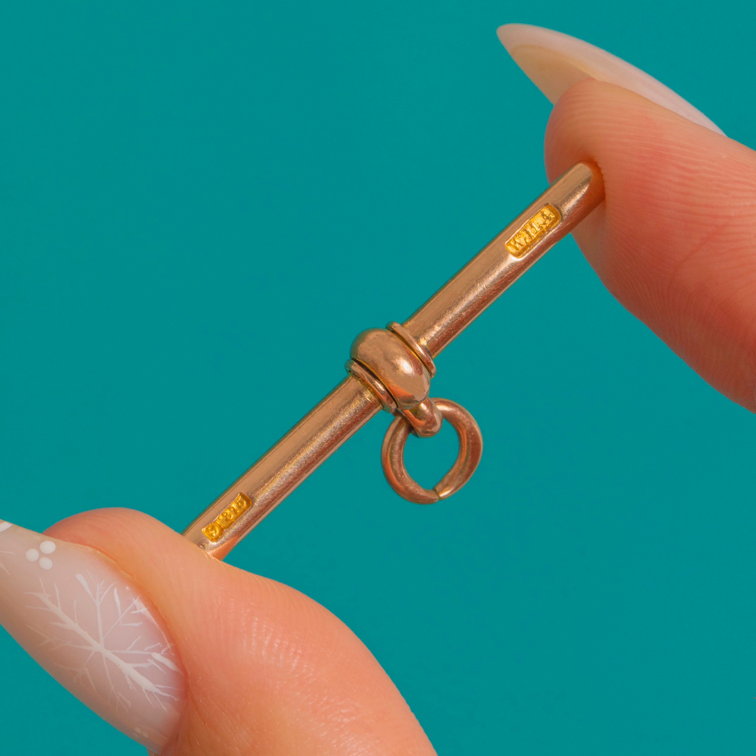 A timeless Victorian solid 9ct Gold T-bar charm, perfect for everyday wear. The cylindrical bar is smooth and polished with rounded terminals and a central collar and perpendicular lug, creating that effortless minimalist silhouette collectors love.