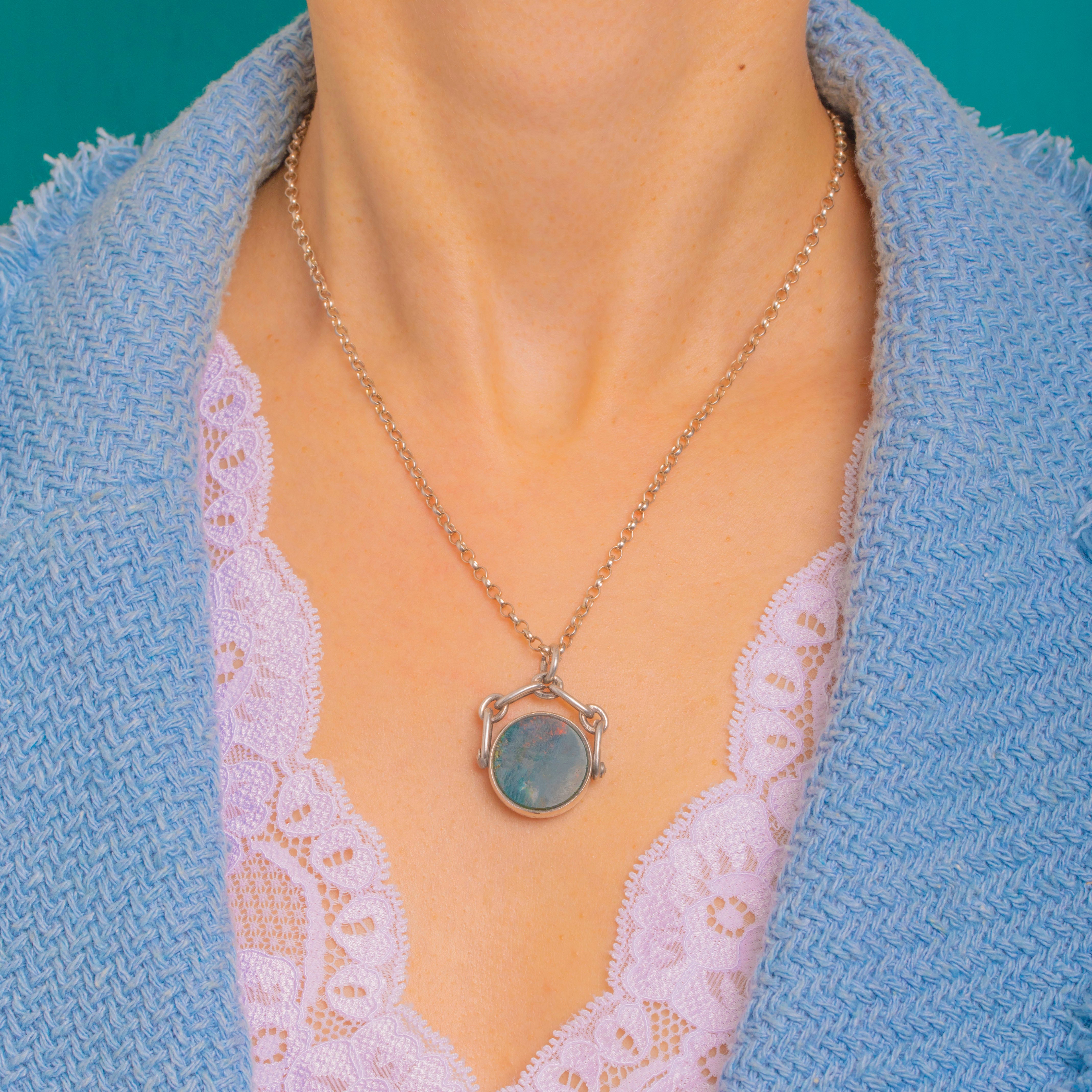 The gem-set disc turns within its architectural swivel mount, a classic watch chain feature that makes this an effortlessly wearable pendant today. Understated yet characterful, it’s a chic touch of 19th-century elegance with a distinctly modern sensibility. Fully hallmarked for Birmingham 1876, it’s a wonderful slice of British jewellery history.