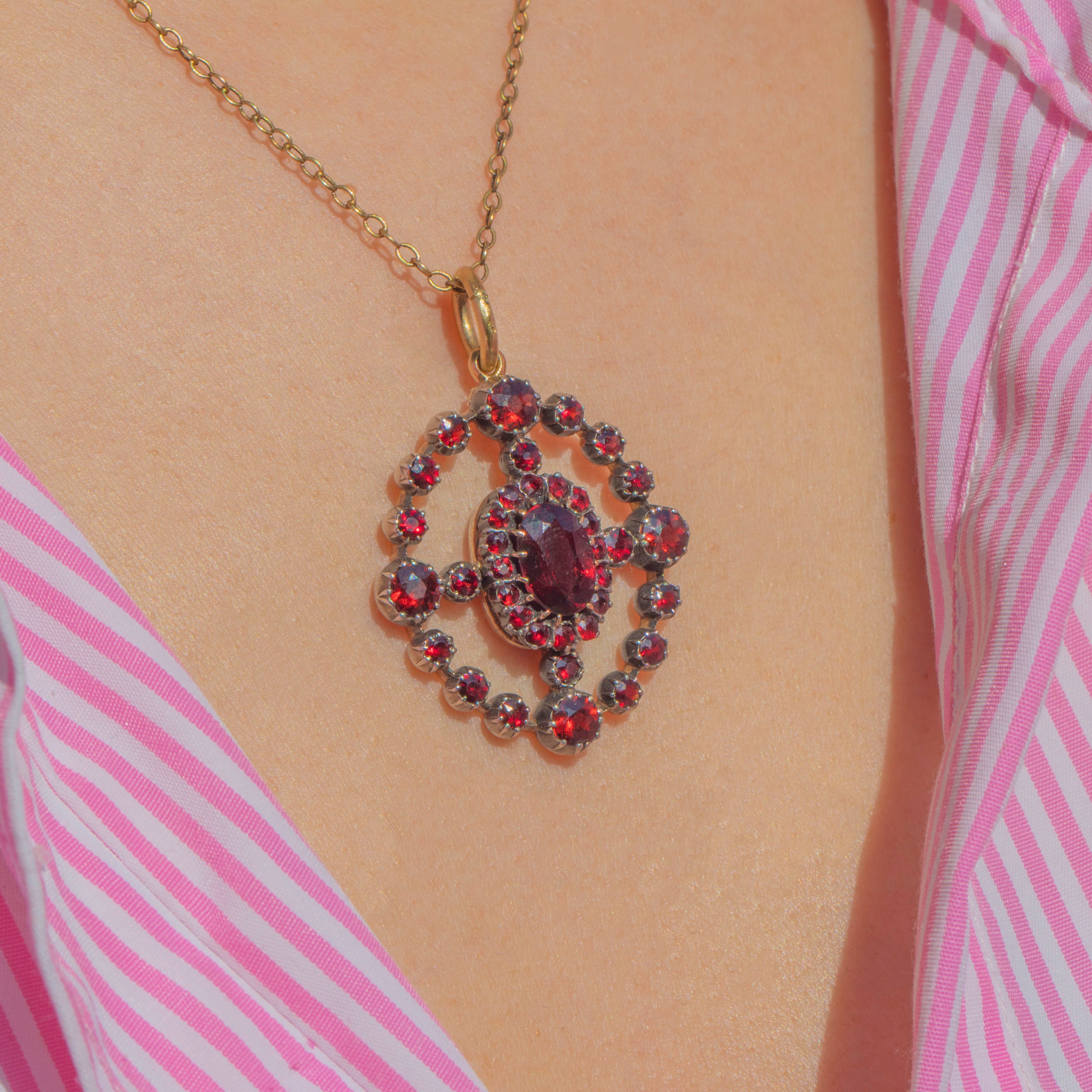 Antique Victorian Garnet Cluster Pendant 8.45ct