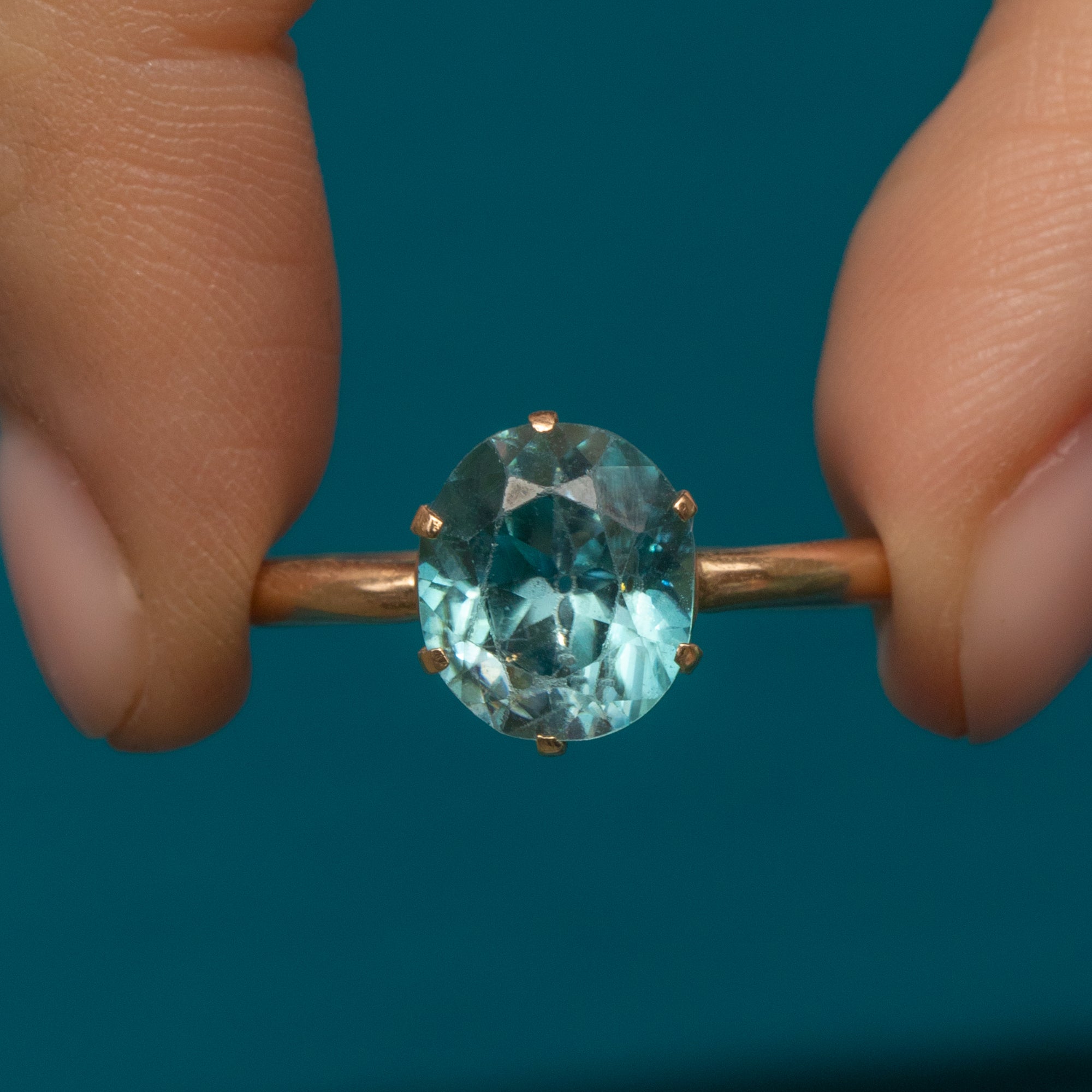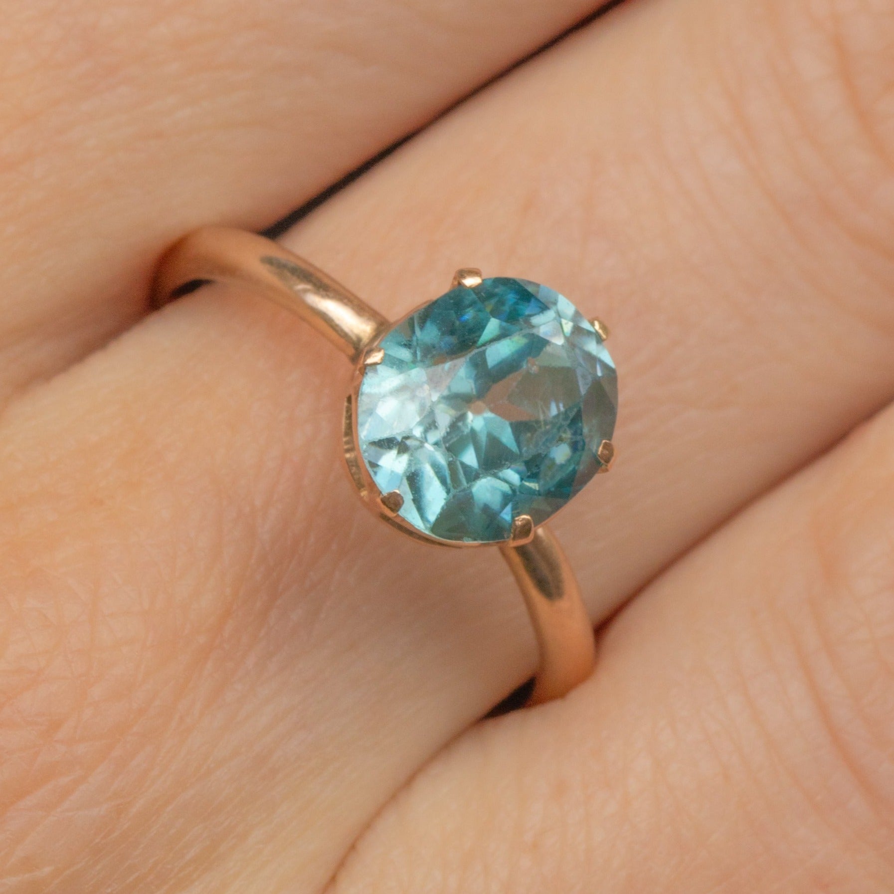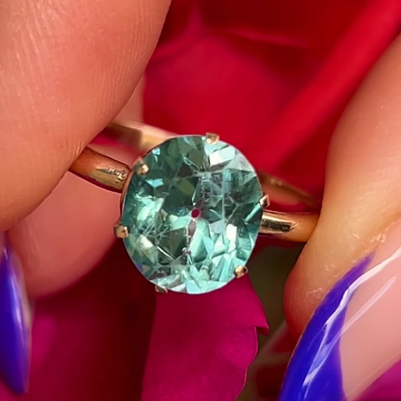Art Deco 14ct Gold Blue Zircon Ring, 2.25ct