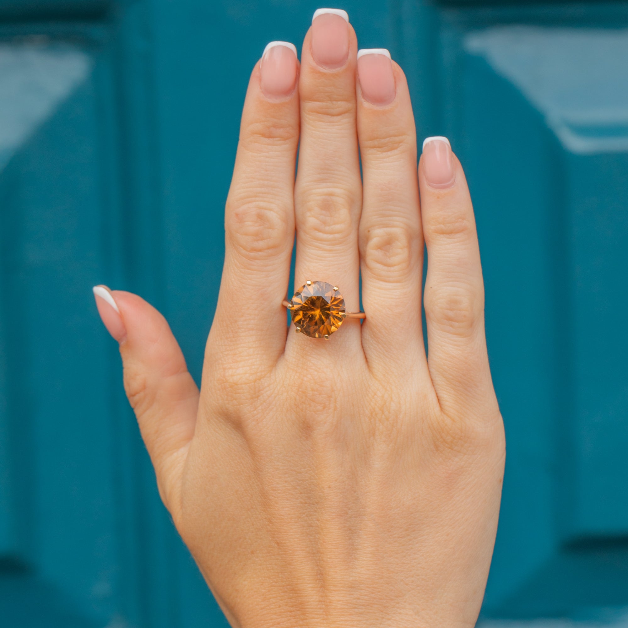 MATERIALS: Tests as 14ct Gold shank with 9ct Gold basket for strength and durability, Brown Zircon (11.00ct).