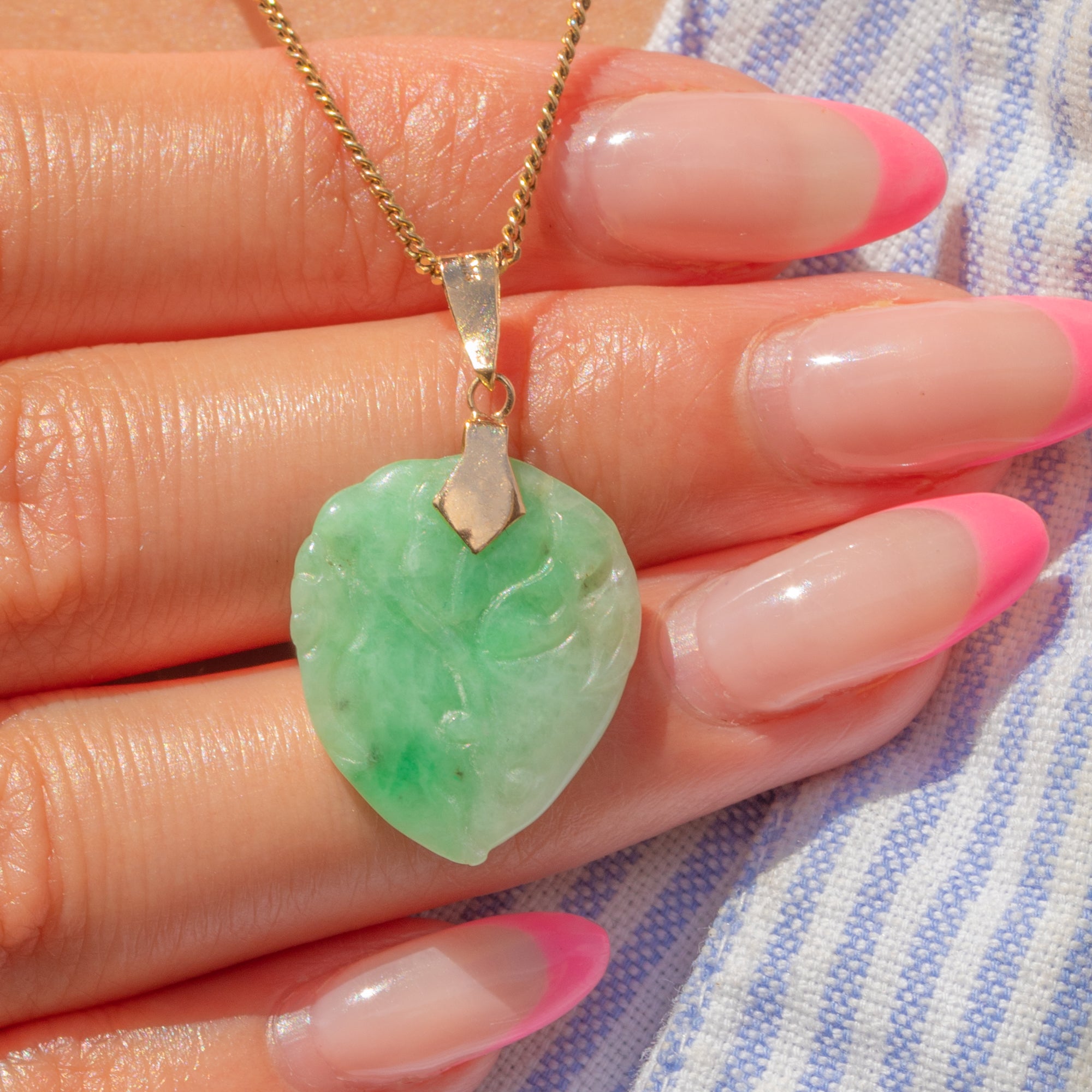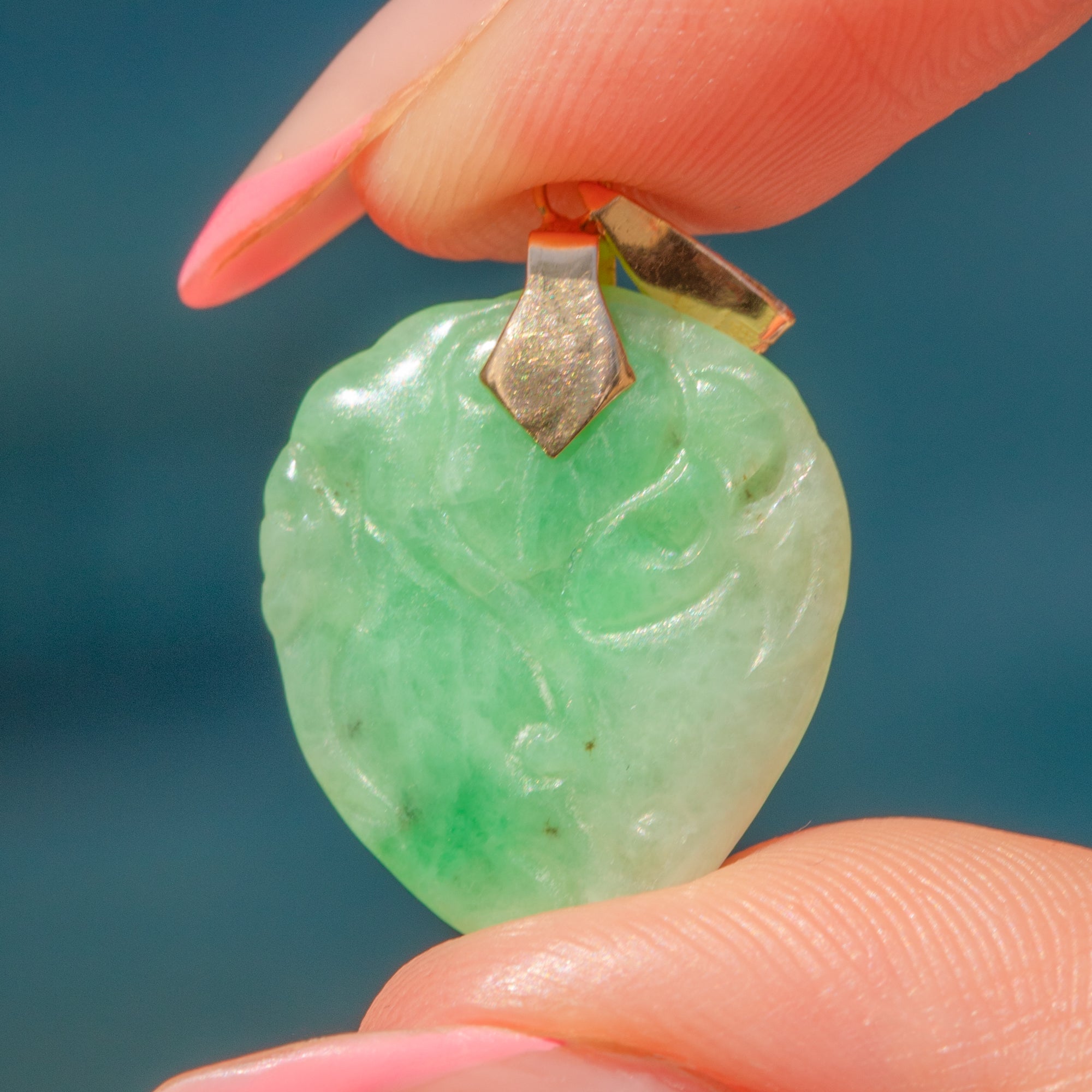 Art Deco 14ct Gold Carved Jade Heart Pendant