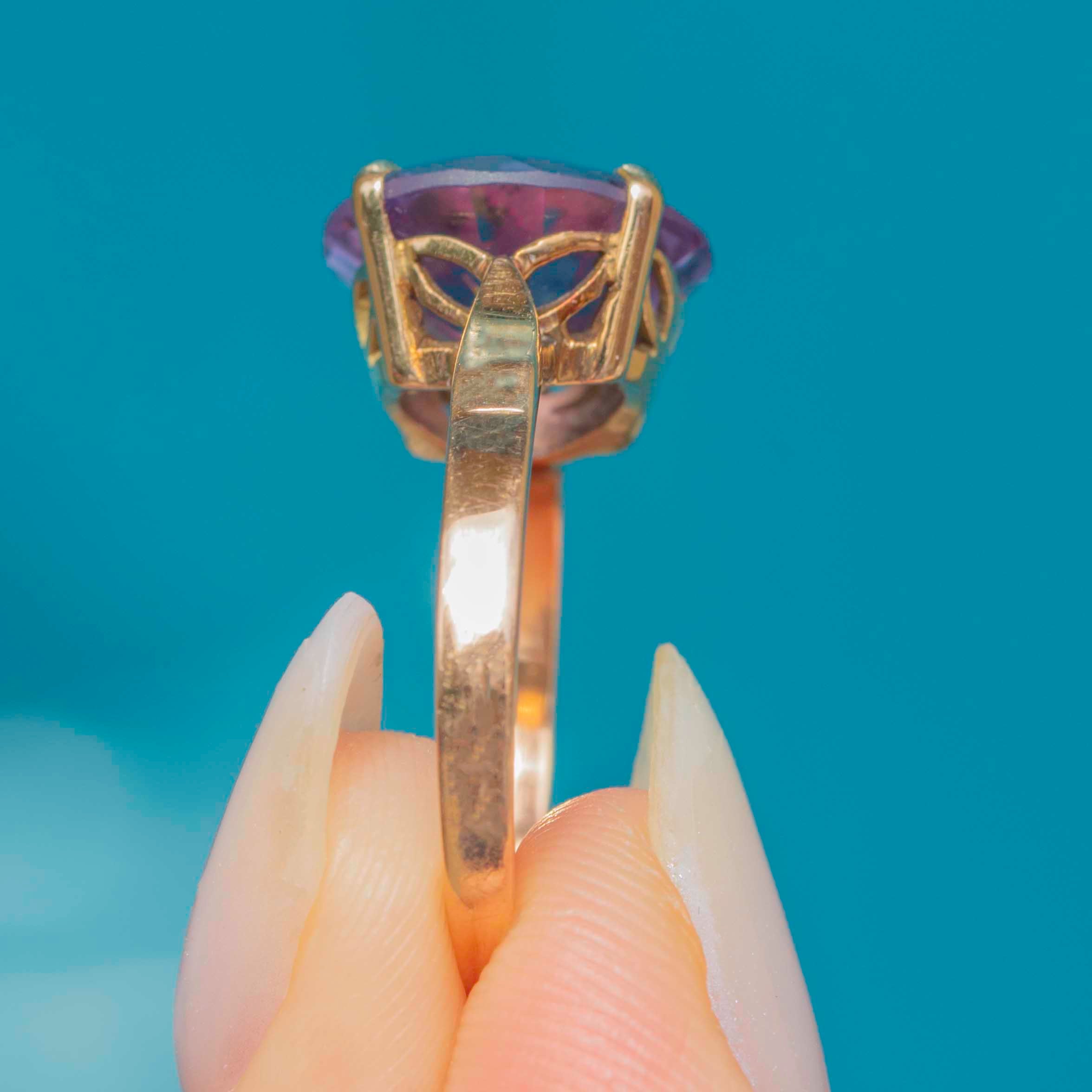 Art Deco 14ct Gold Synethetic Colour Change Sapphire Ring 3.40ct