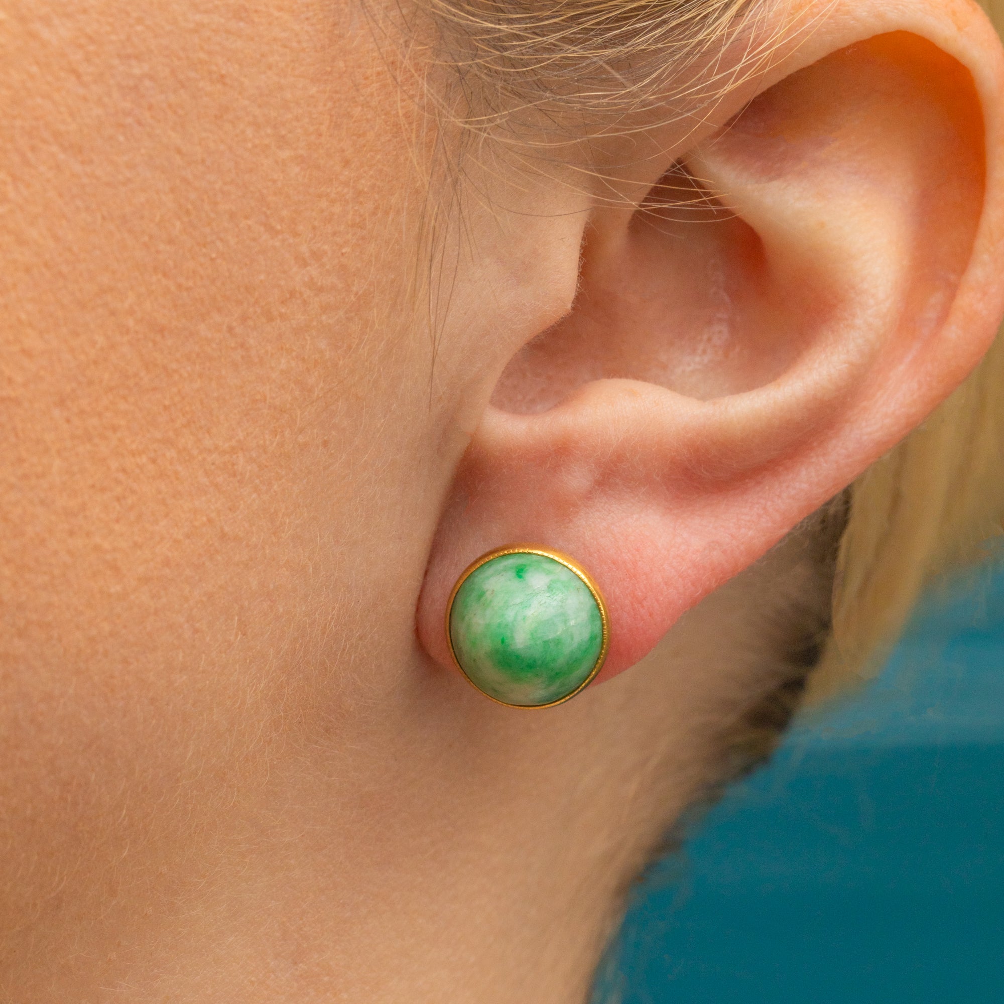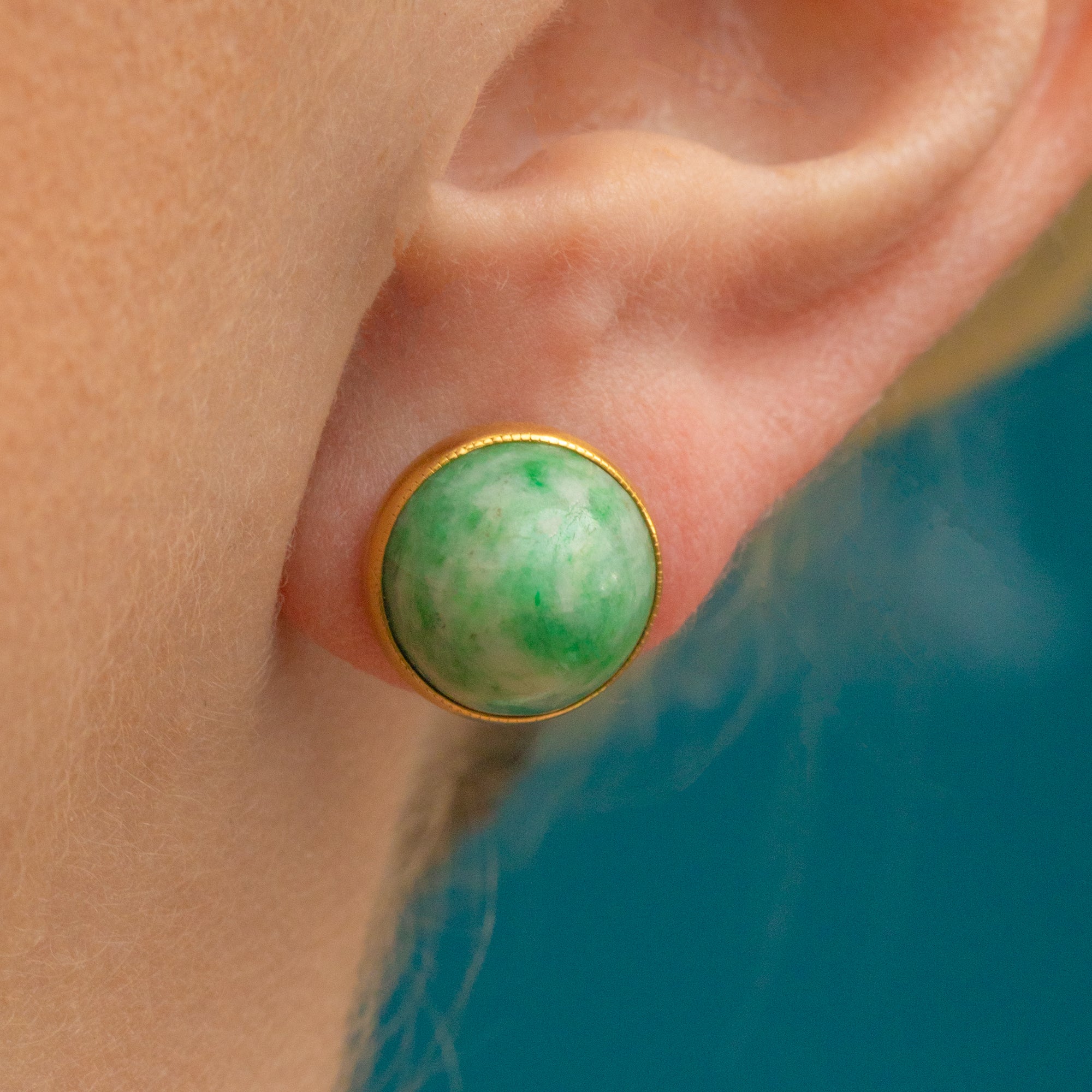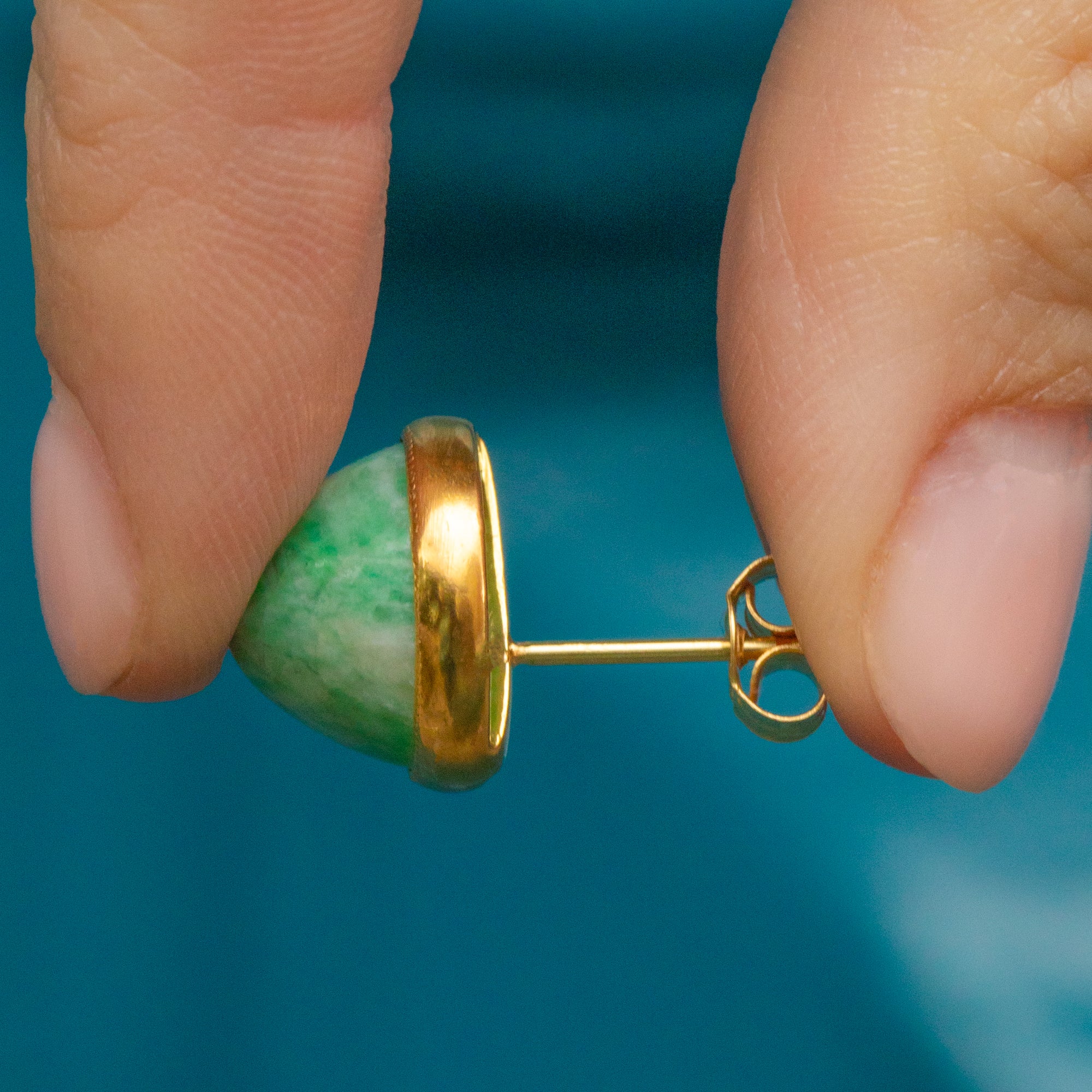 These Art Deco 18ct Gold Amazonite stud earrings will turn your friends green with envy!