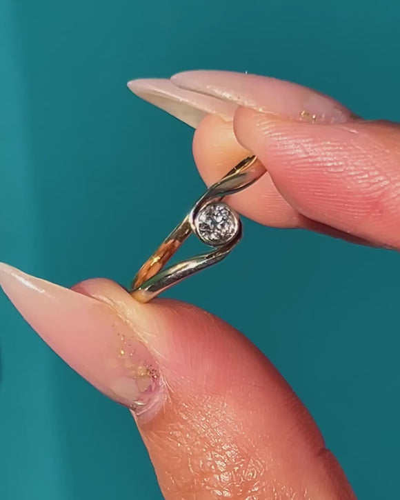 Art Deco 18ct Gold Diamond Solitaire Twist Ring 0.25ct