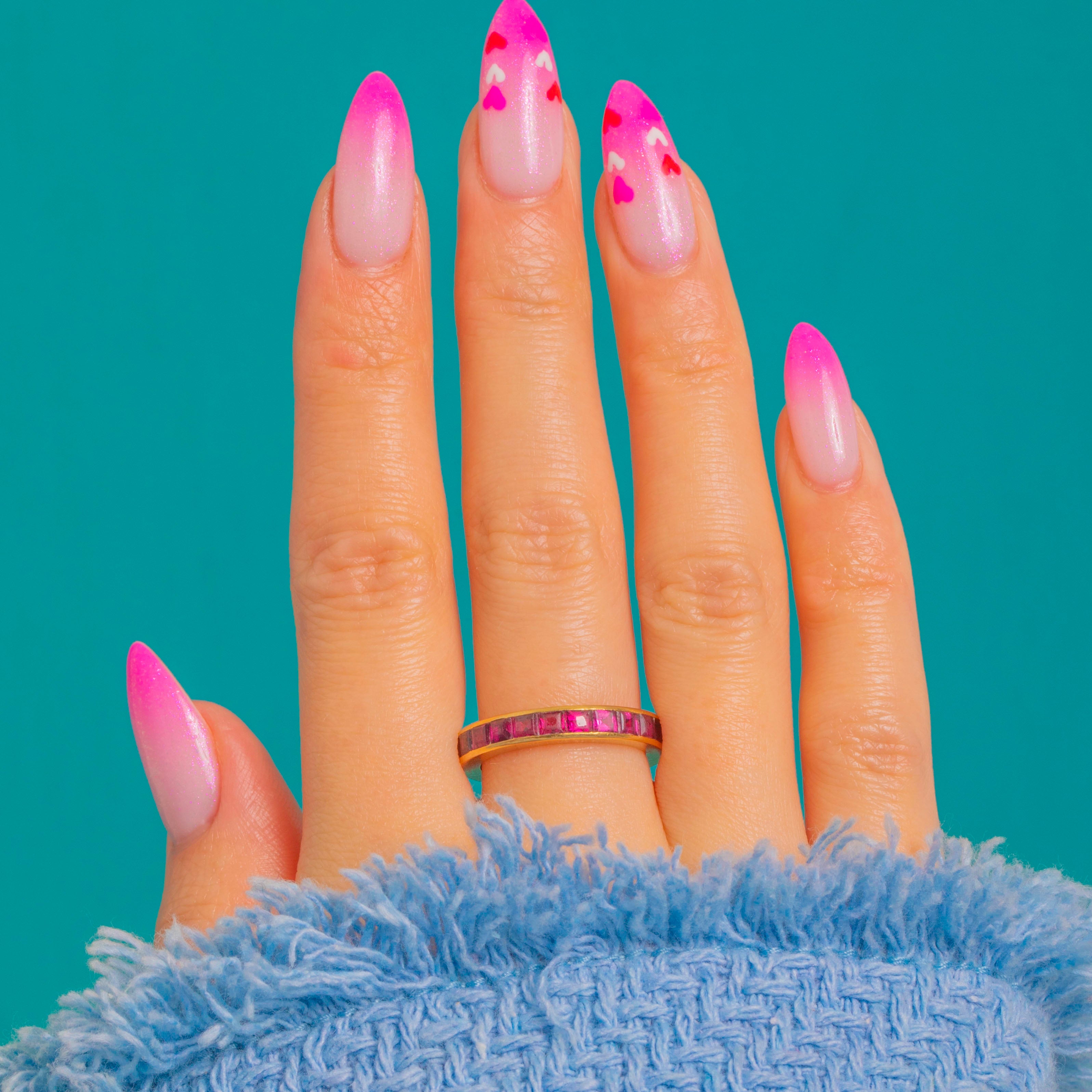 Minimal, linear and effortlessly elegant, it’s a beautiful pop of colour for stacking or a striking standalone band. The refined architecture and continuous stones make it a timeless choice for everyday luxury and special moments alike.