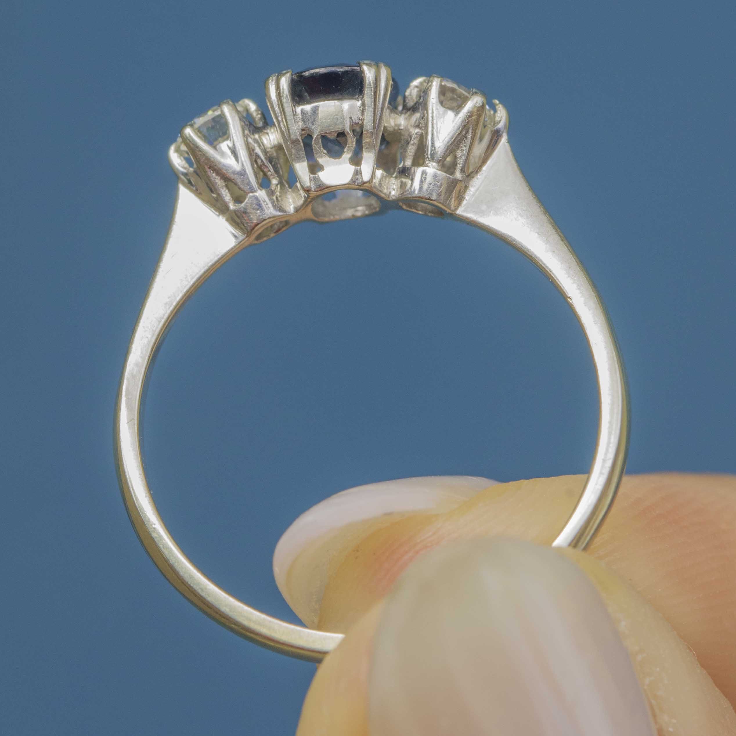 VERY GOOD: The gemstones are wonderfully preserved and are securely set. The 18ct Gold has a gorgeous lustrous sheen, and is free from dings or dents, with only minor scratches on the inside of the band. One of the prongs of the claw setting on the Sapphire has ever so slightly worn but it still holds the Natural Sapphire secure. This does not affect the overall impact of the piece.
