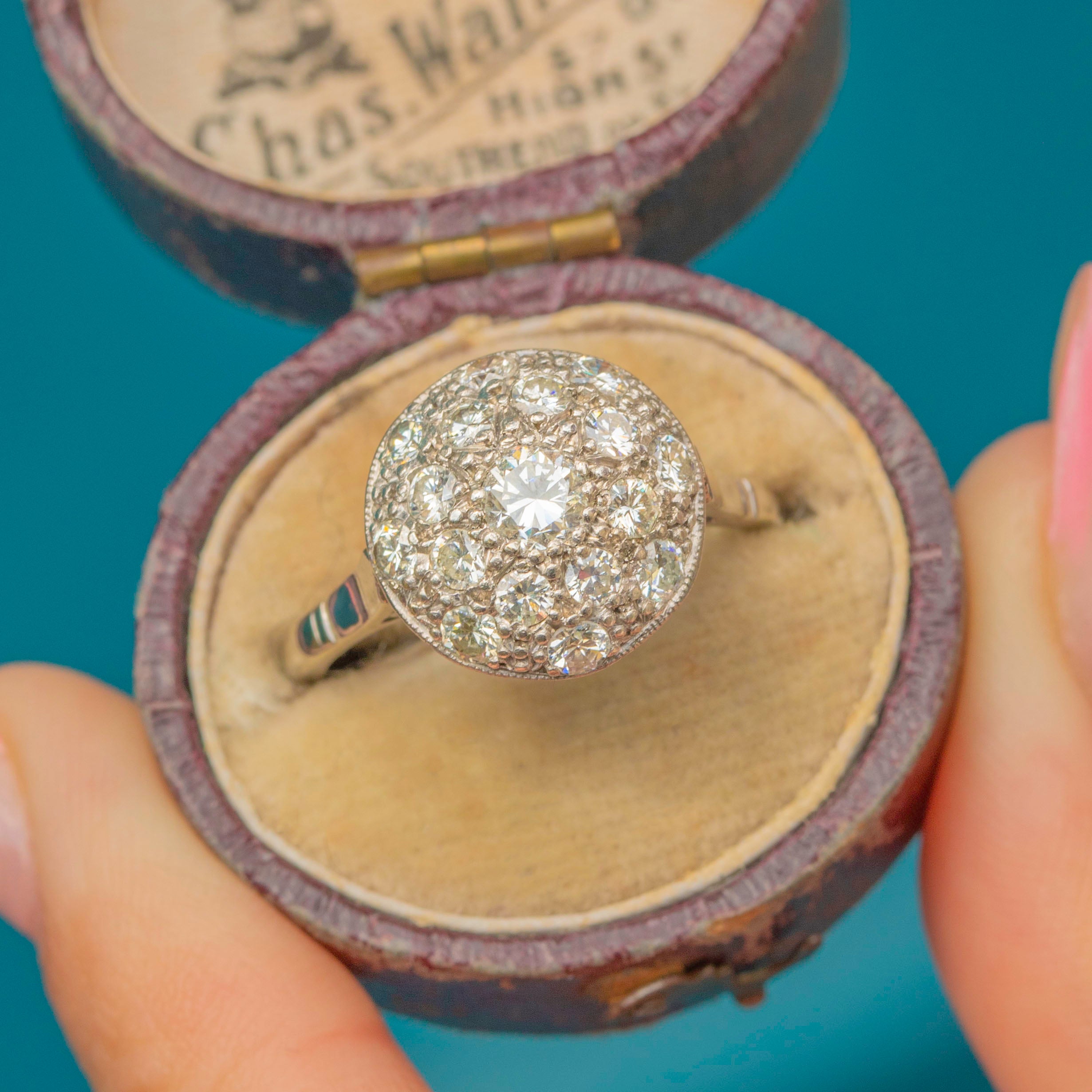 Art Deco 18ct Gold & Platinum Diamond Bombe Cluster Ring, 1.16ct Item added