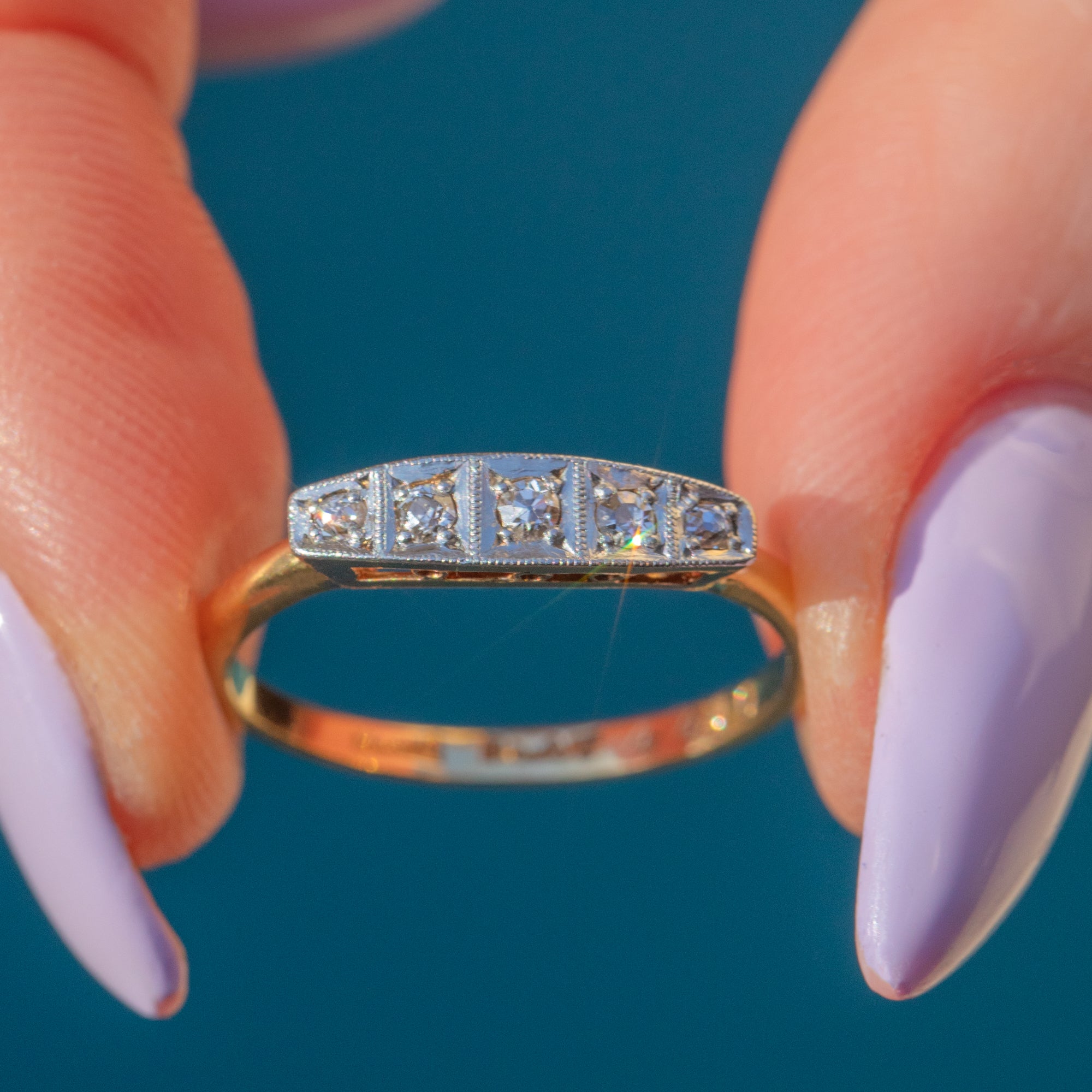 Art Deco 18ct Gold & Platinum Diamond Five Stone Ring