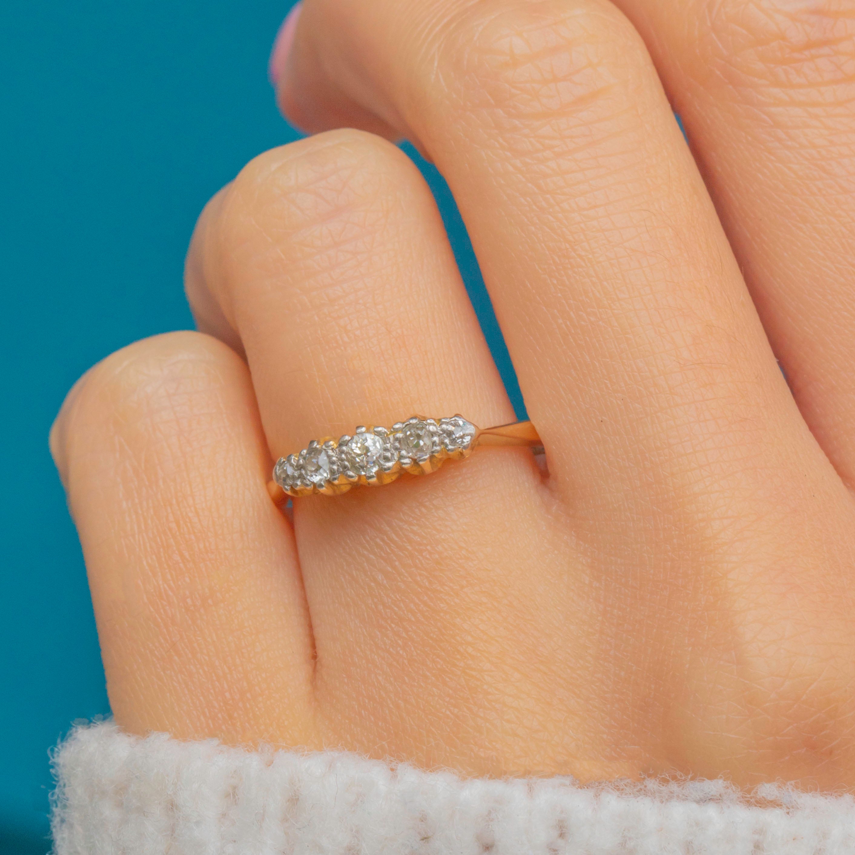 Art Deco 18ct Gold & Platinum Diamond Five-Stone Ring