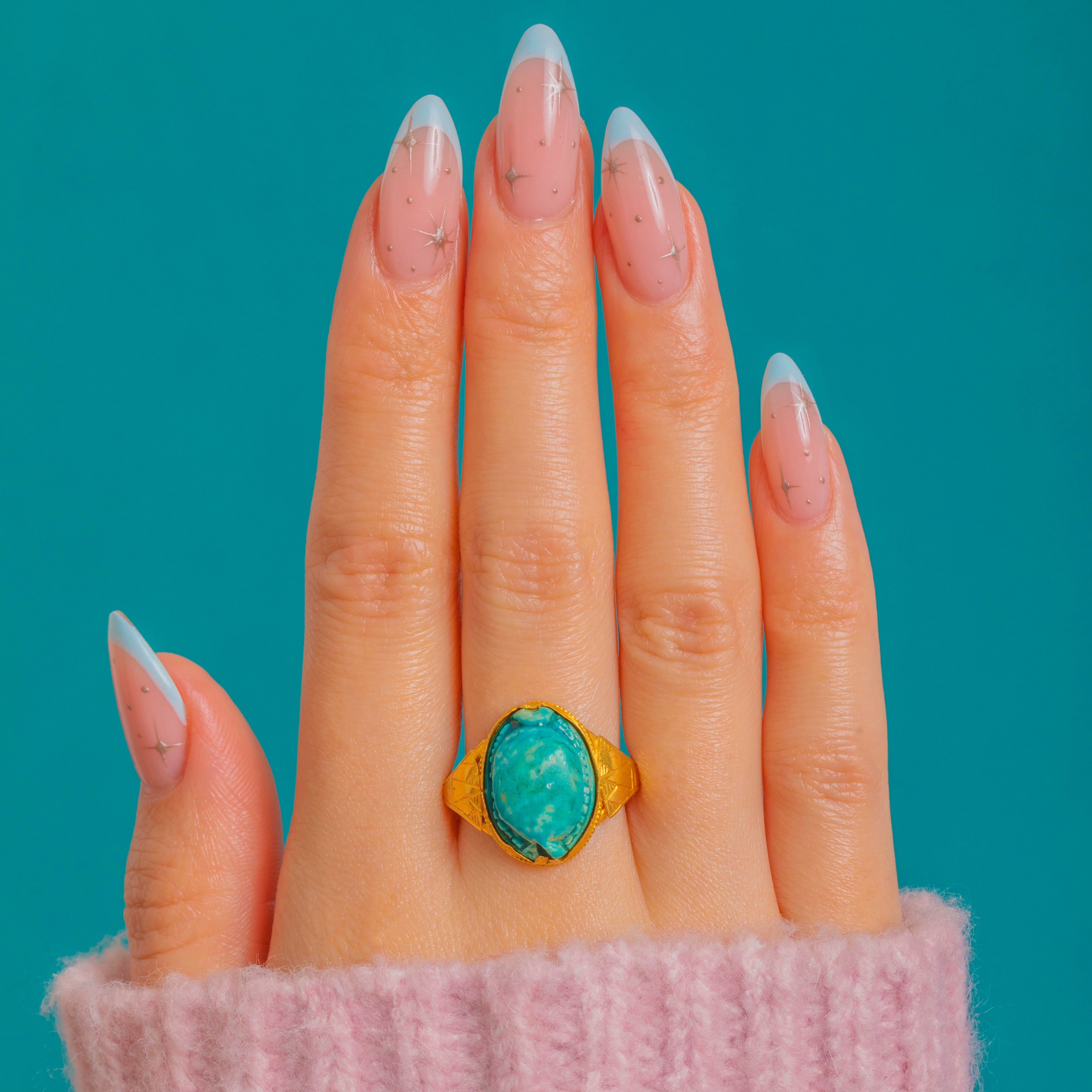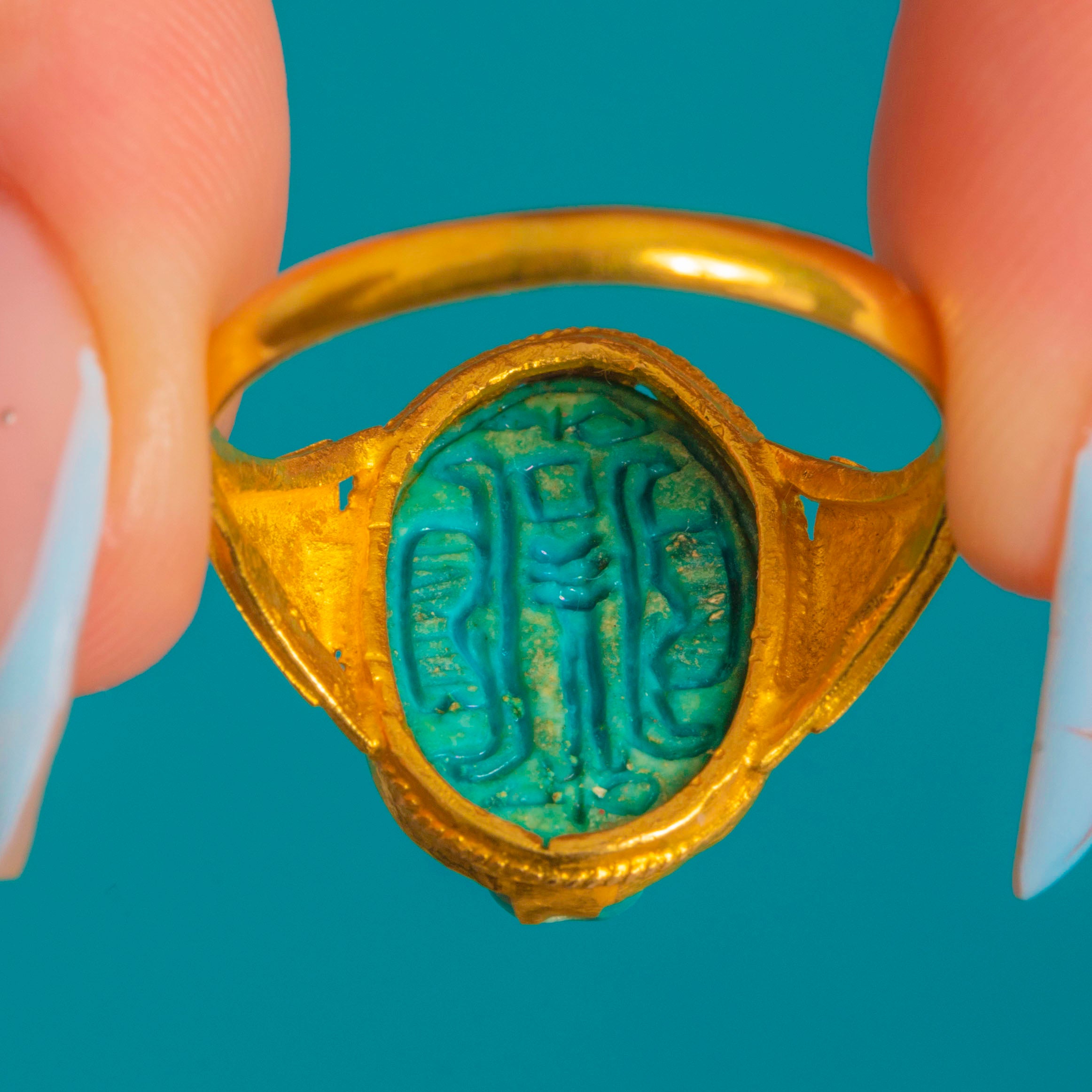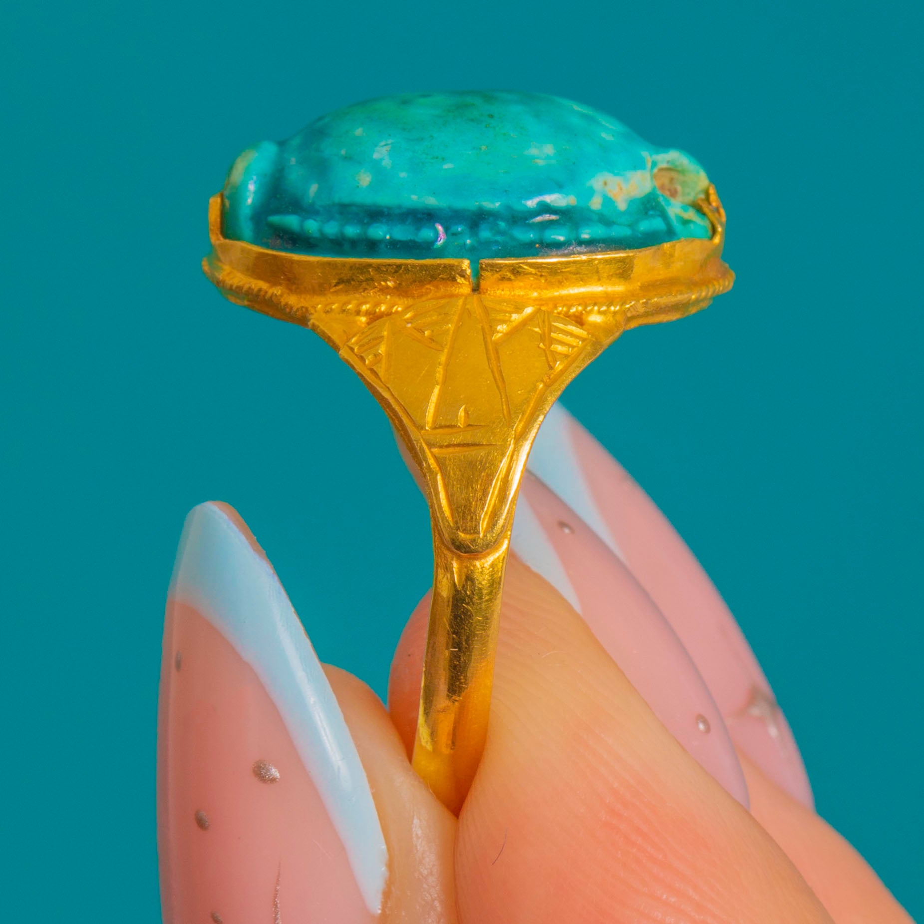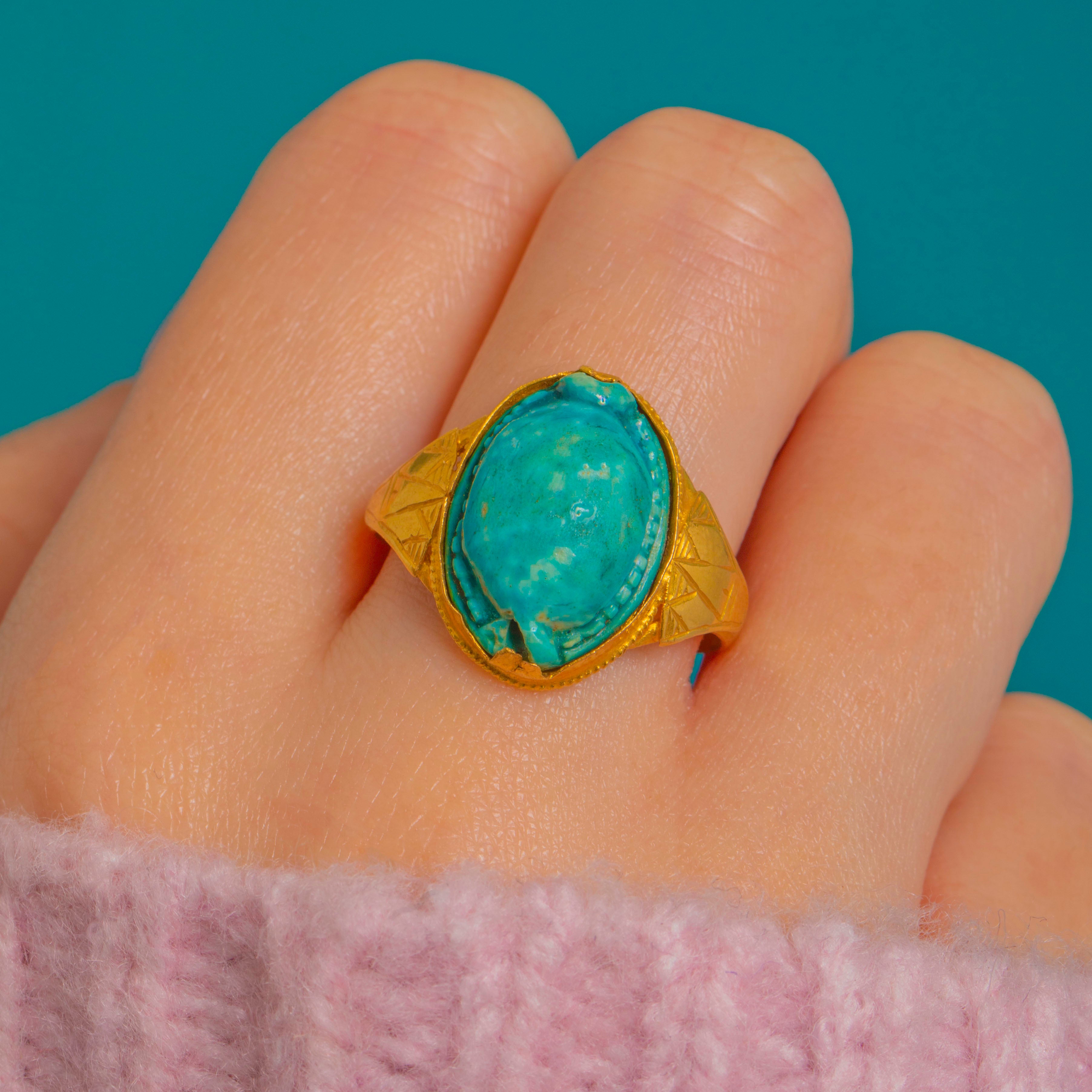 Art Deco 22ct Gold Archäologisches Revival Fayence Skarabäus-Ring