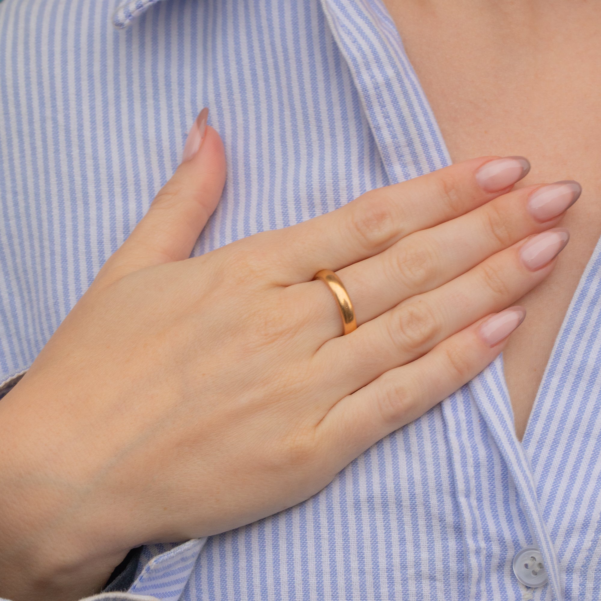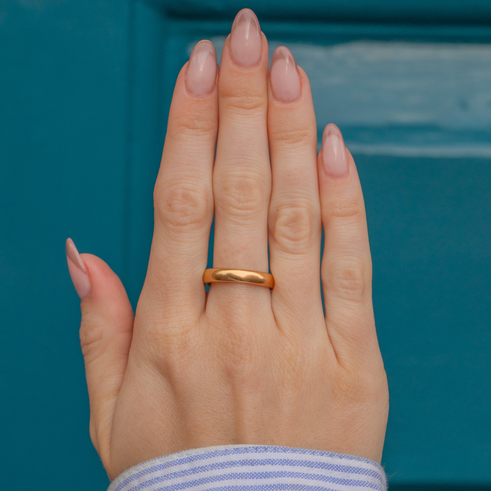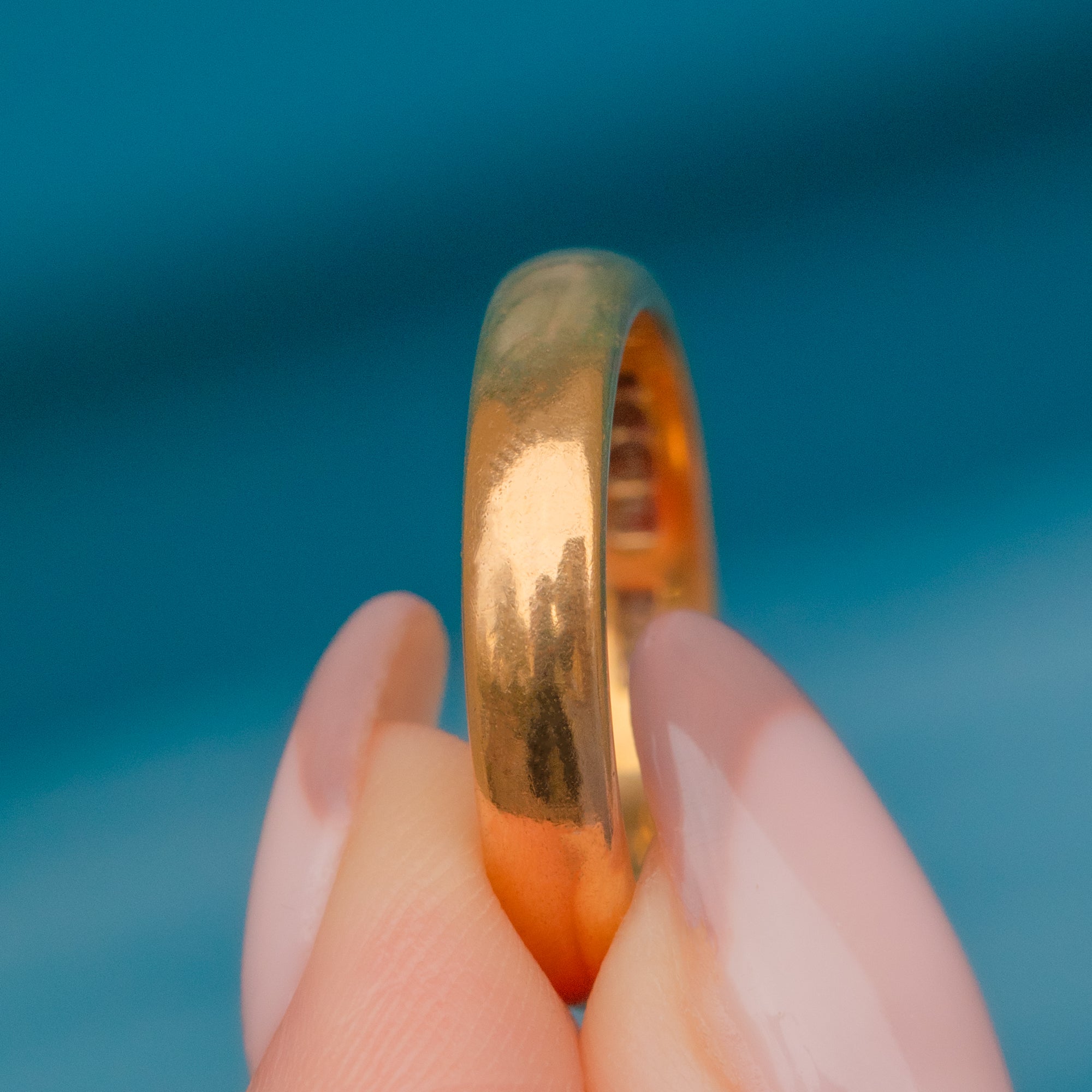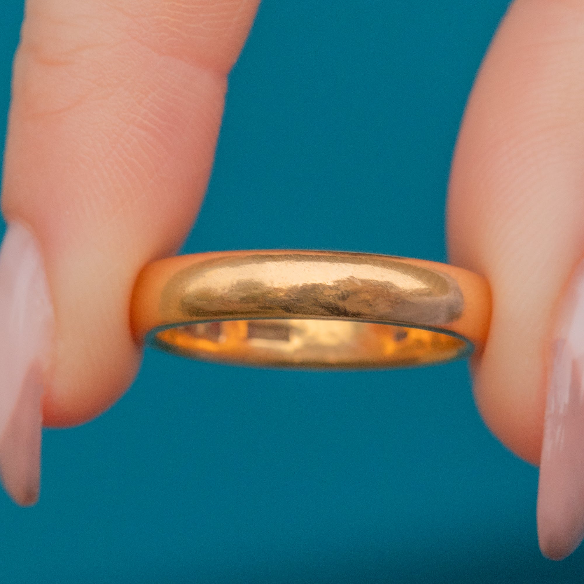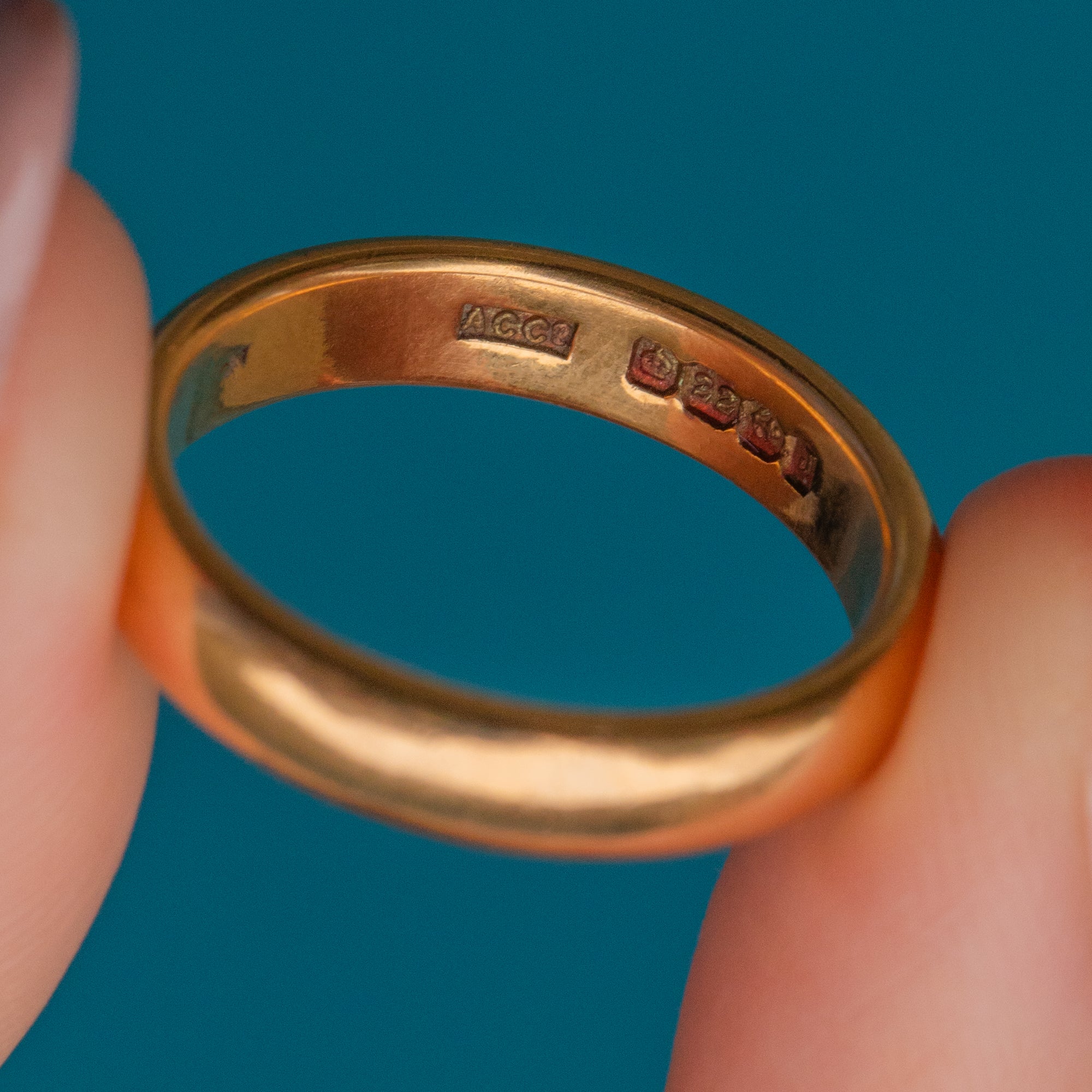 A solid 22ct Gold band like this is perfect for everyday wear and will stand the test of time as a wedding band.