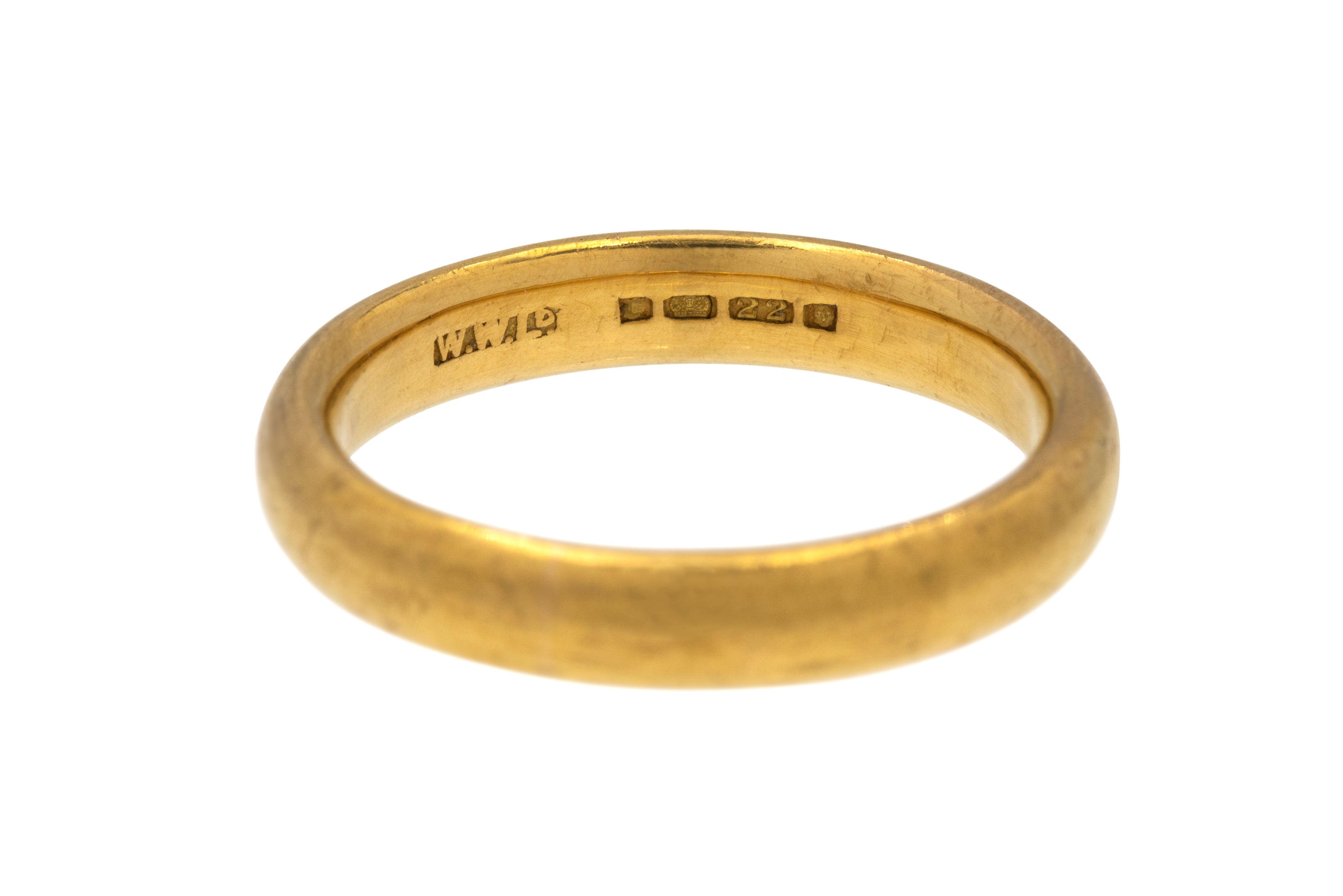 EXCELLENT: This Art Deco 22ct Gold wedding band is in superb condition throughout. The Gold is bright and the hallmarks are visible dating her back to 1932! Overall, she's remained gorgeously intact. A wonderful heirloom piece, she's the perfect piece for your upcoming nuptials.