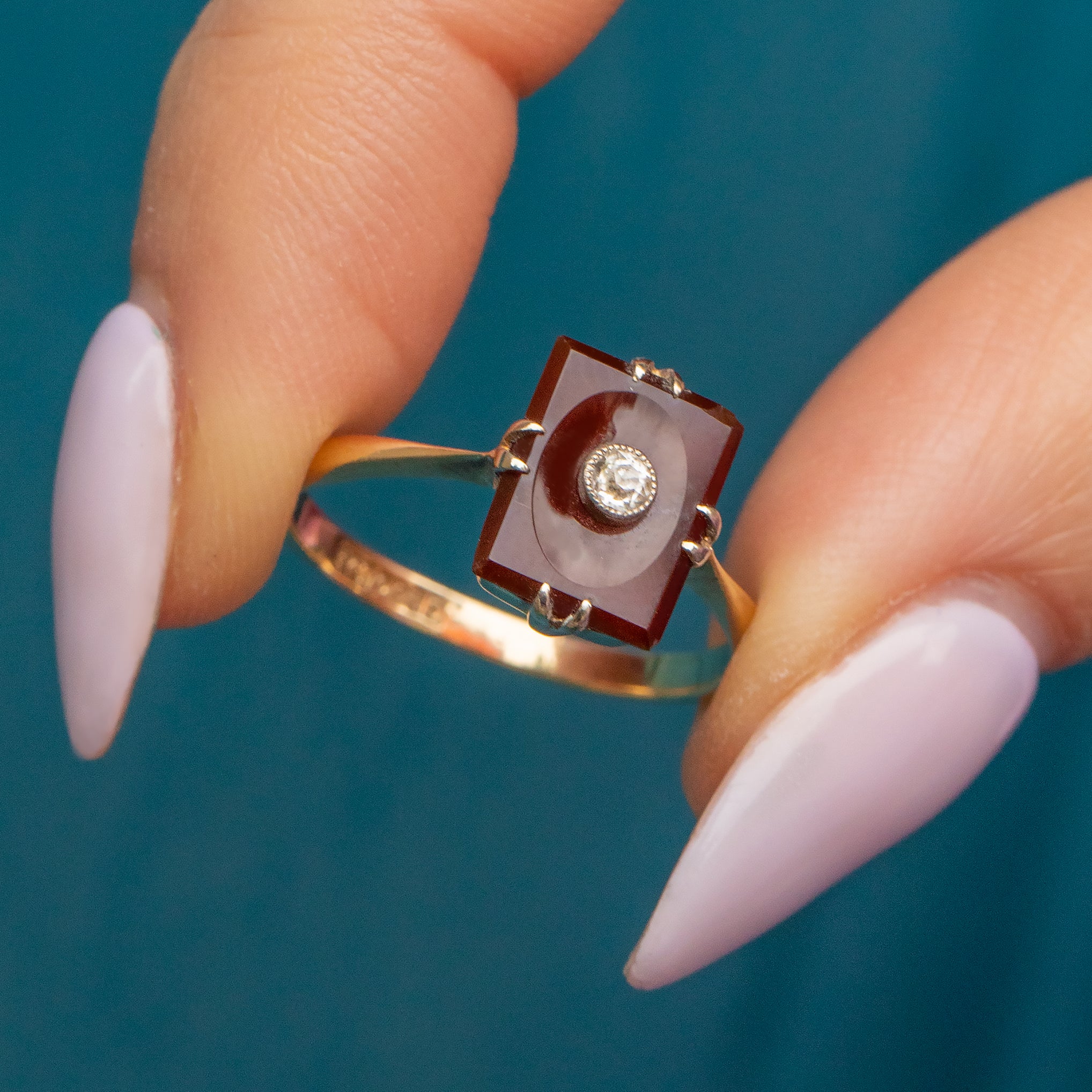 Art Deco 9ct Gold Agate Panel Ring, c.1920