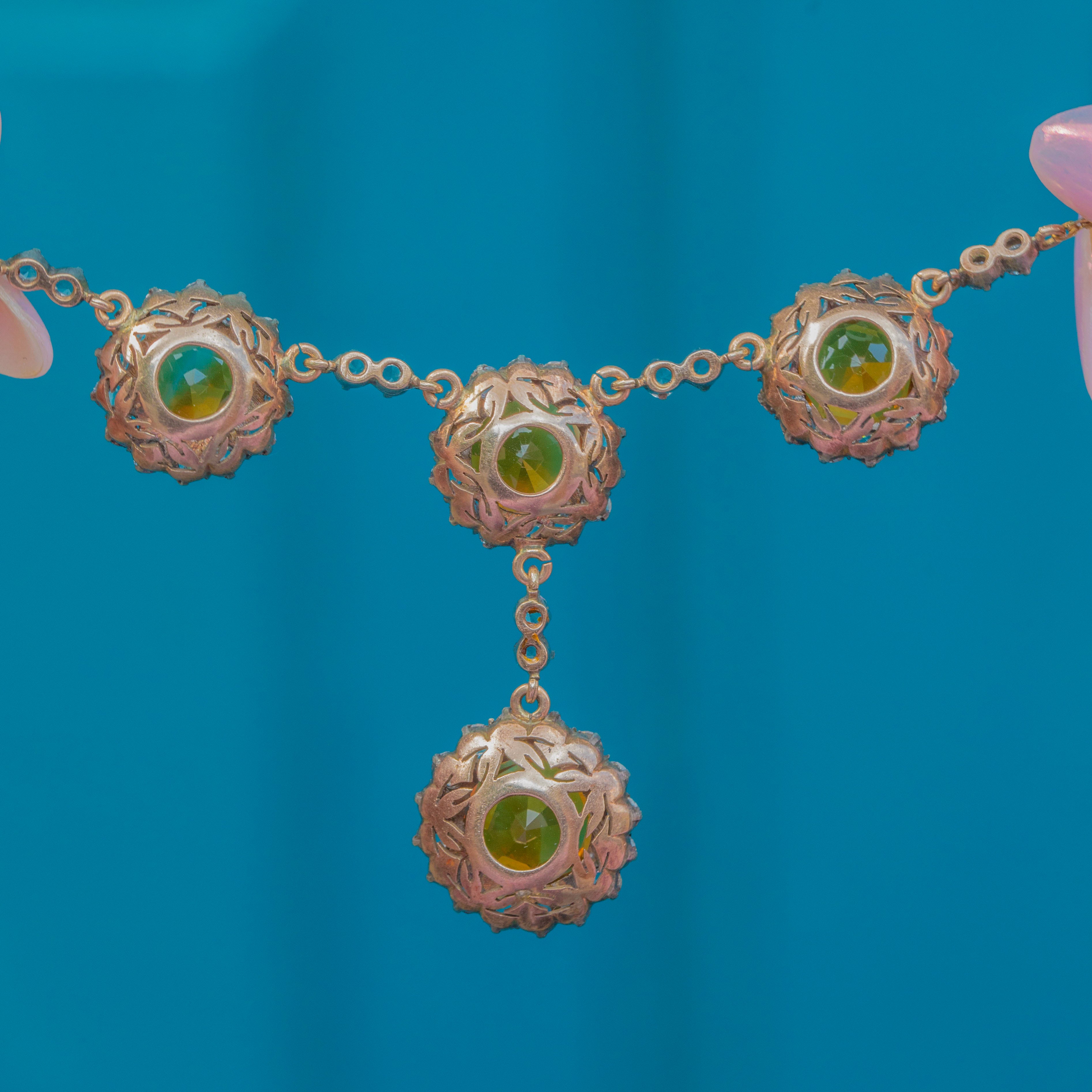 EXCELLENT: Each gemstone has been faceted beautifully, is free from any scuffs or scratches, and is secure in its settings. The 9ct Gold back is glossy and bright, and with a secure chain and bolt ring, this antique Art Deco fringe necklace can be worn with confidence!