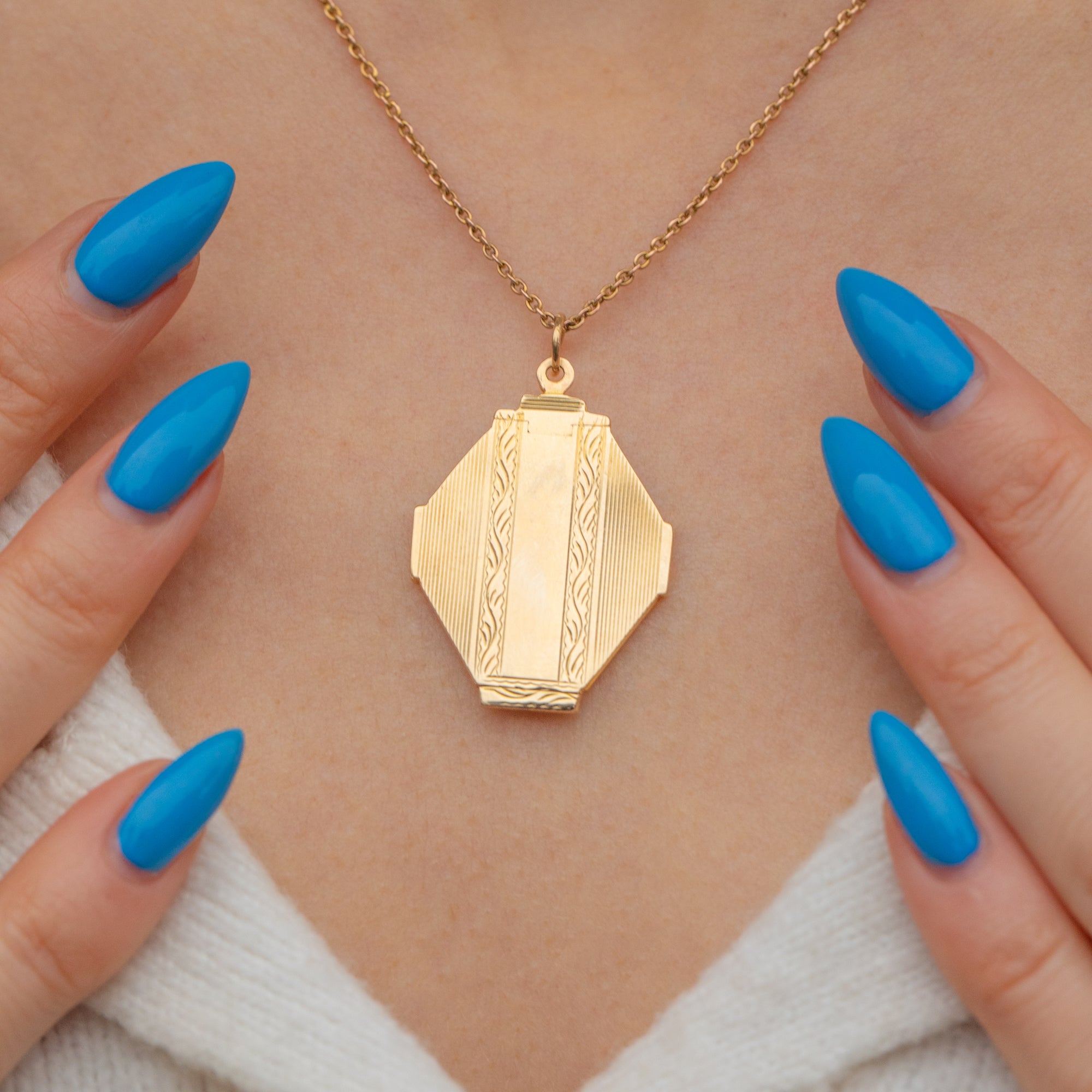 Upon opening this Art Deco locket, you will discover space for you to place your most cherished photograph inside! Whether you're an Art Deco jewellery enthusiast or looking for a unique and sentimental gift, this elegant vintage Gold locket would make a fine choice.