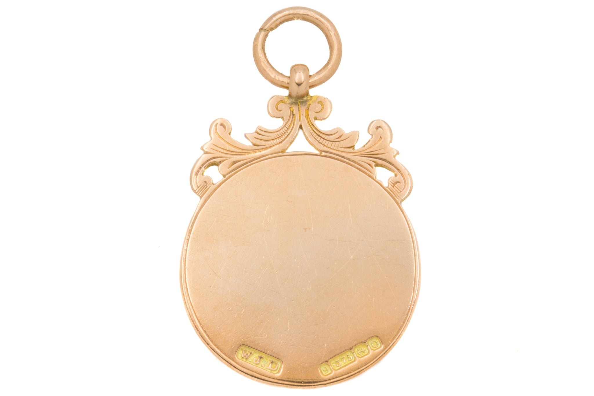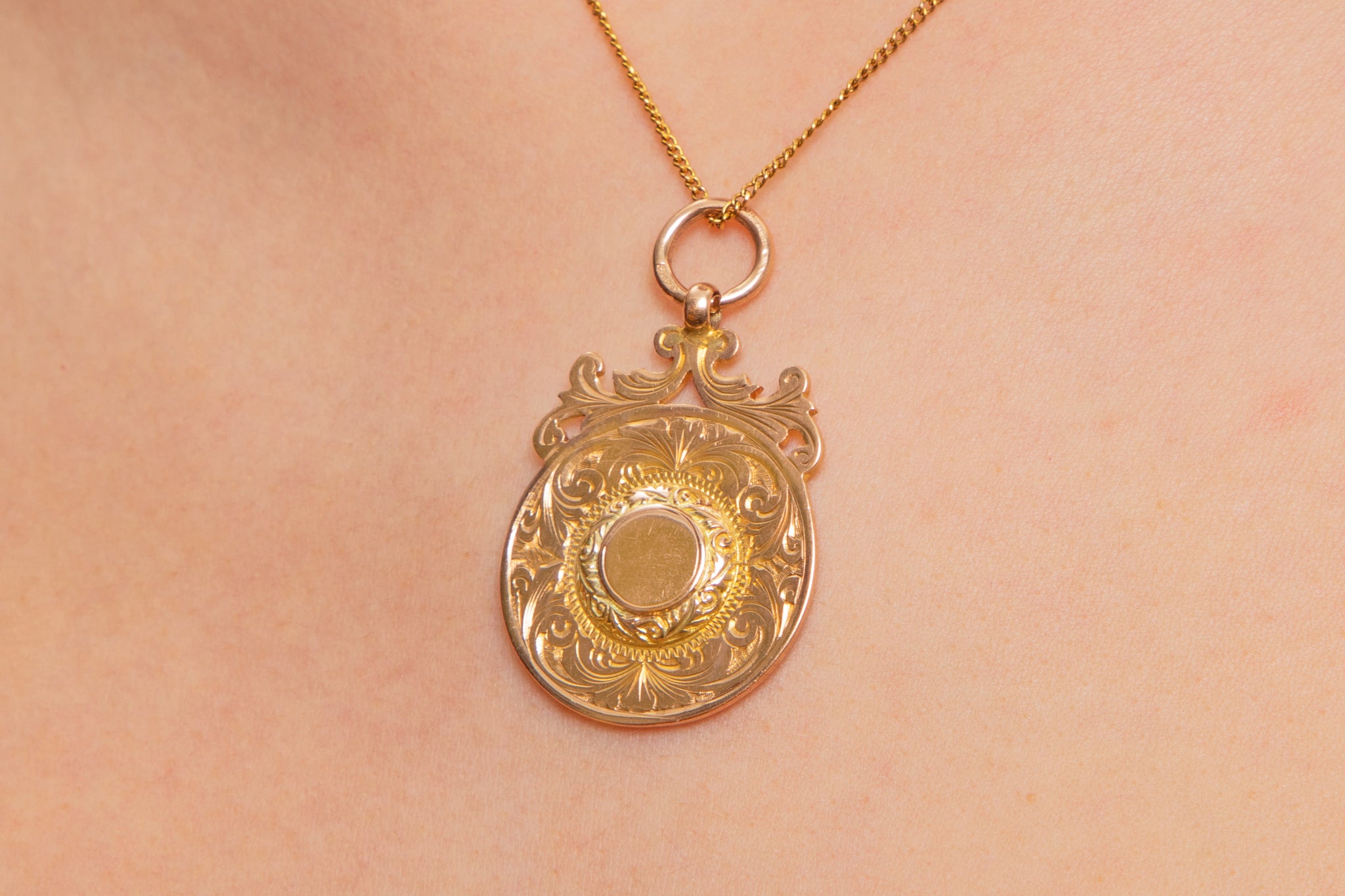 EXCELLENT. This Art Deco 9ct Gold engraved medal pendant is in excellent condition. The Gold is bright and lustrous, free from any dings or dents to note. The sturdy jump ring will allow you to wear her confidently. The pendant has a full set of hallmarks and inscriptions on its back which allows us to accurately date her!