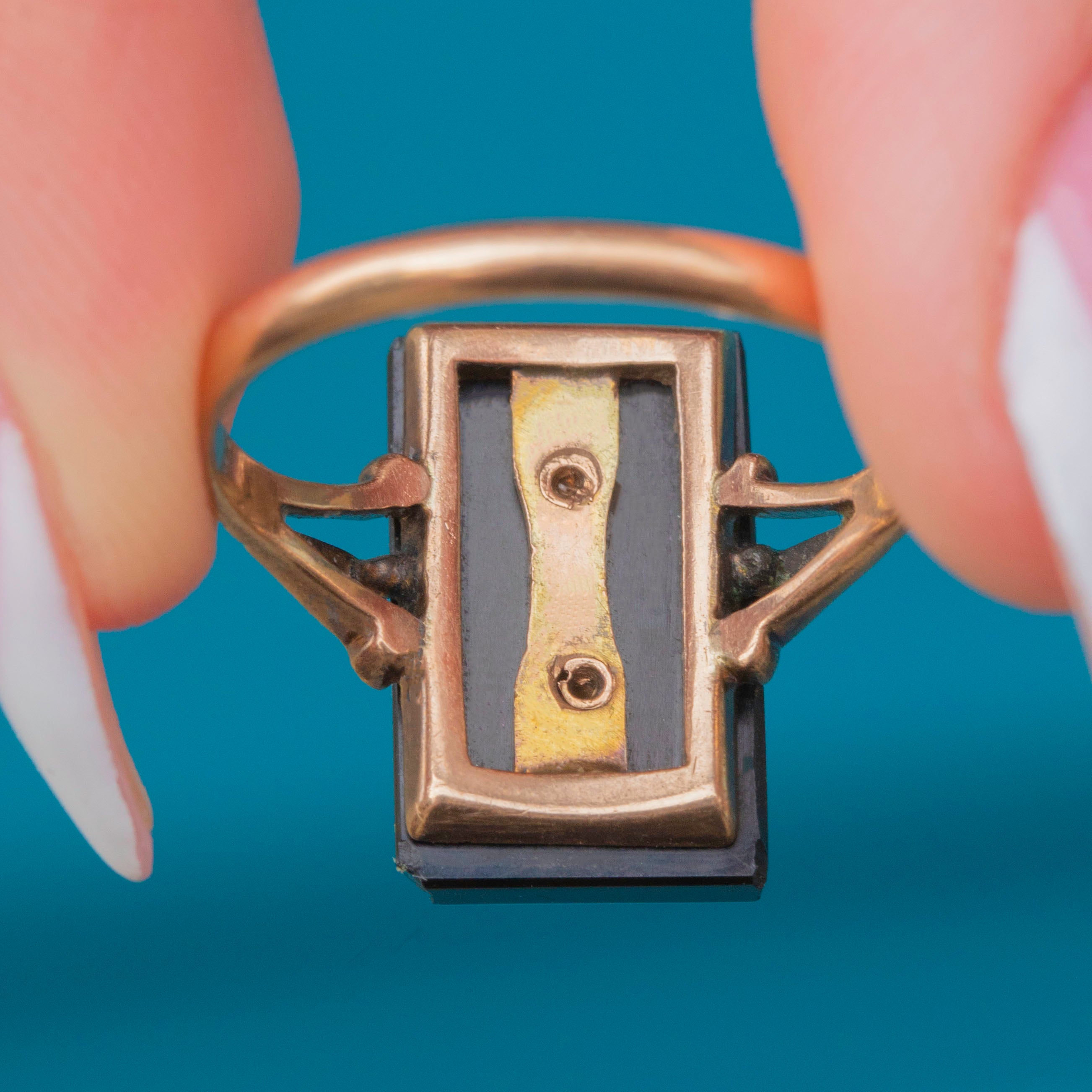 EXCELLENT: This ring shows little signs of wear, and the Onyx is securely set. With the smooth glossy band sitting comfortably on your finger and with little else to note, this Art Deco piece can be worn with utmost confidence.