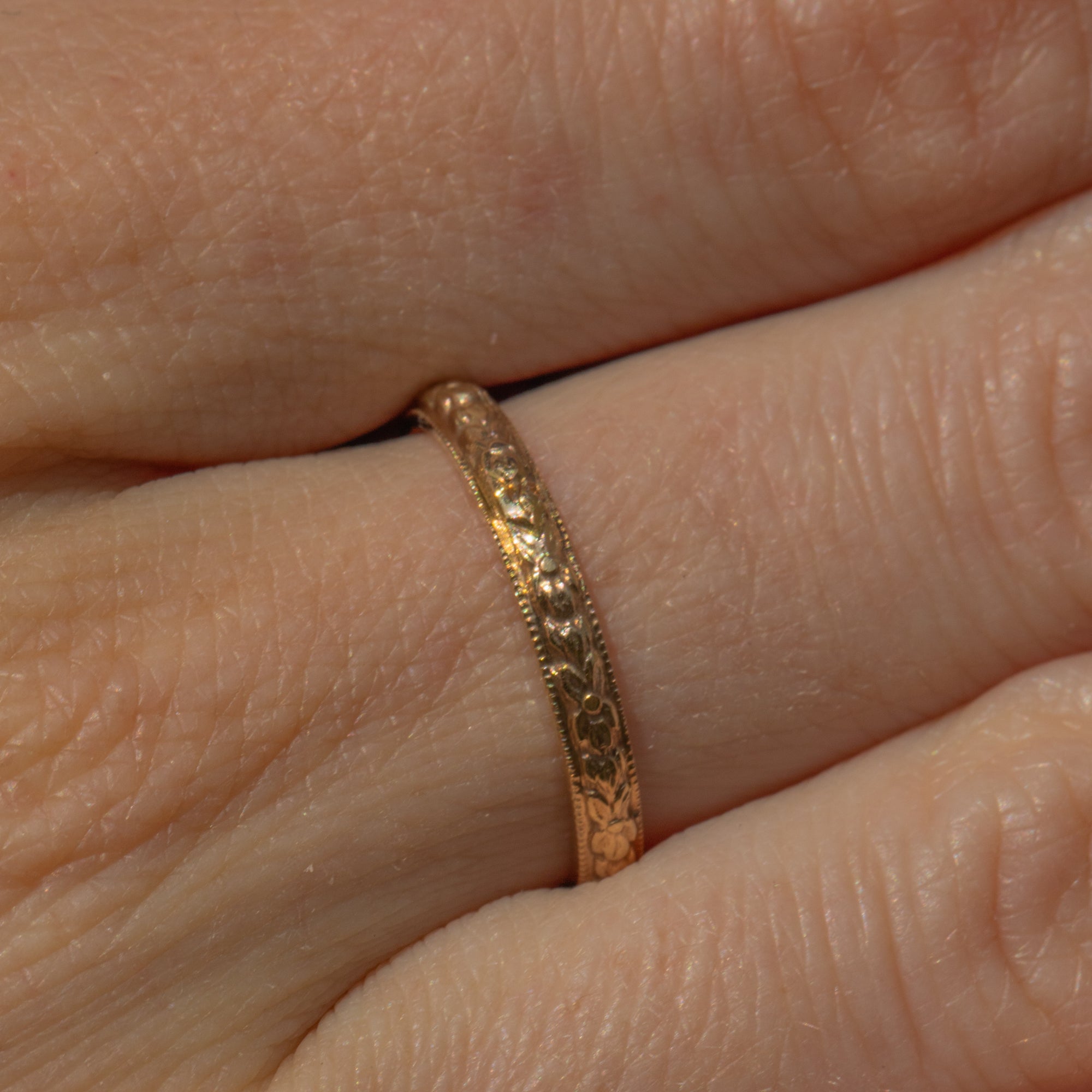 Art Deco 9ct Gold Orange Blossom Engraved Wedding Band