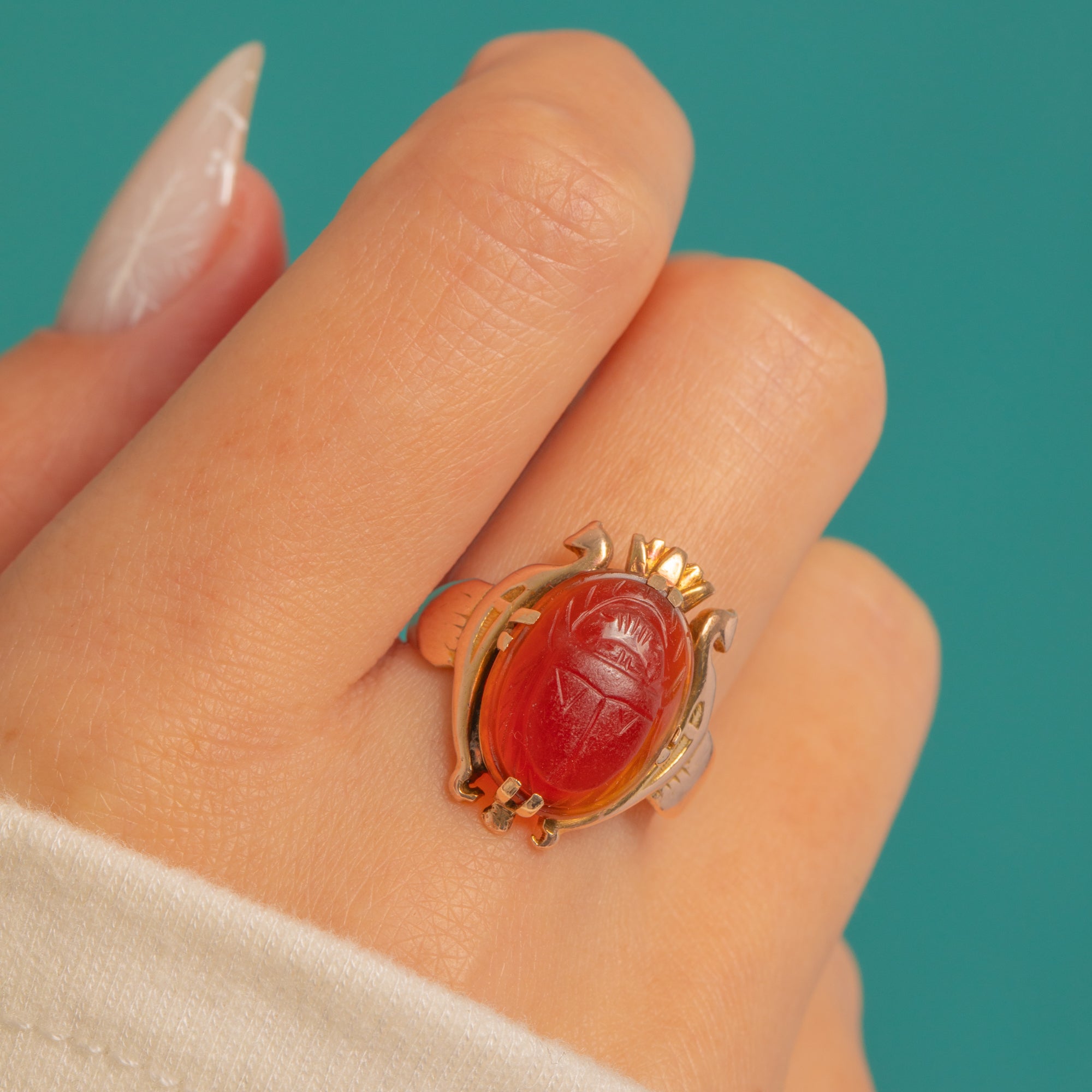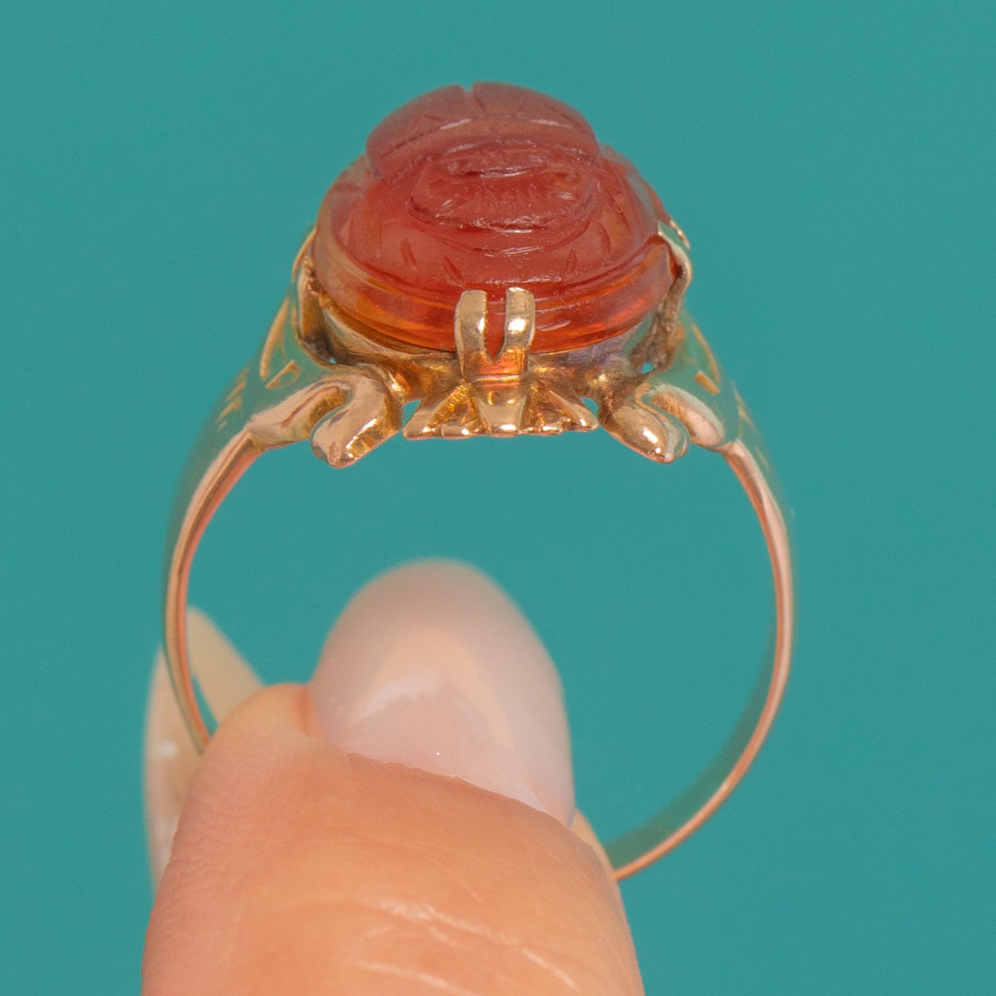Art Deco Egyptian Revival 9ct Gold Carved Carnelian Scarab Ring