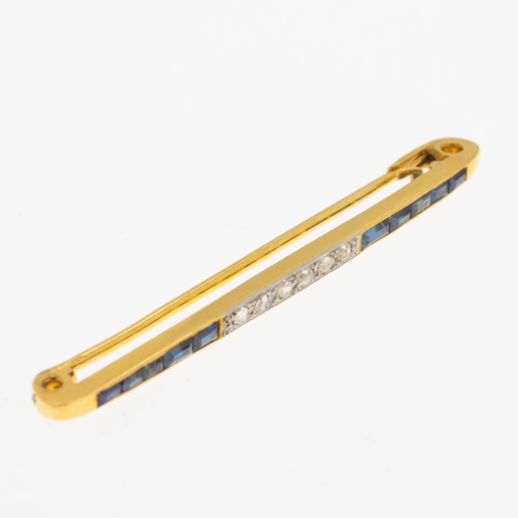 Art Deco French 18ct Gold Sapphire Diamond Bar Brooch